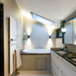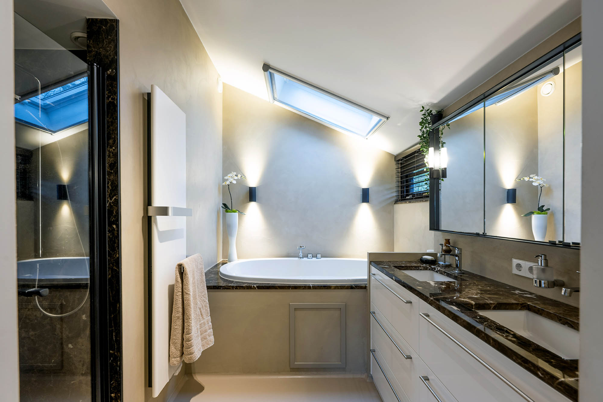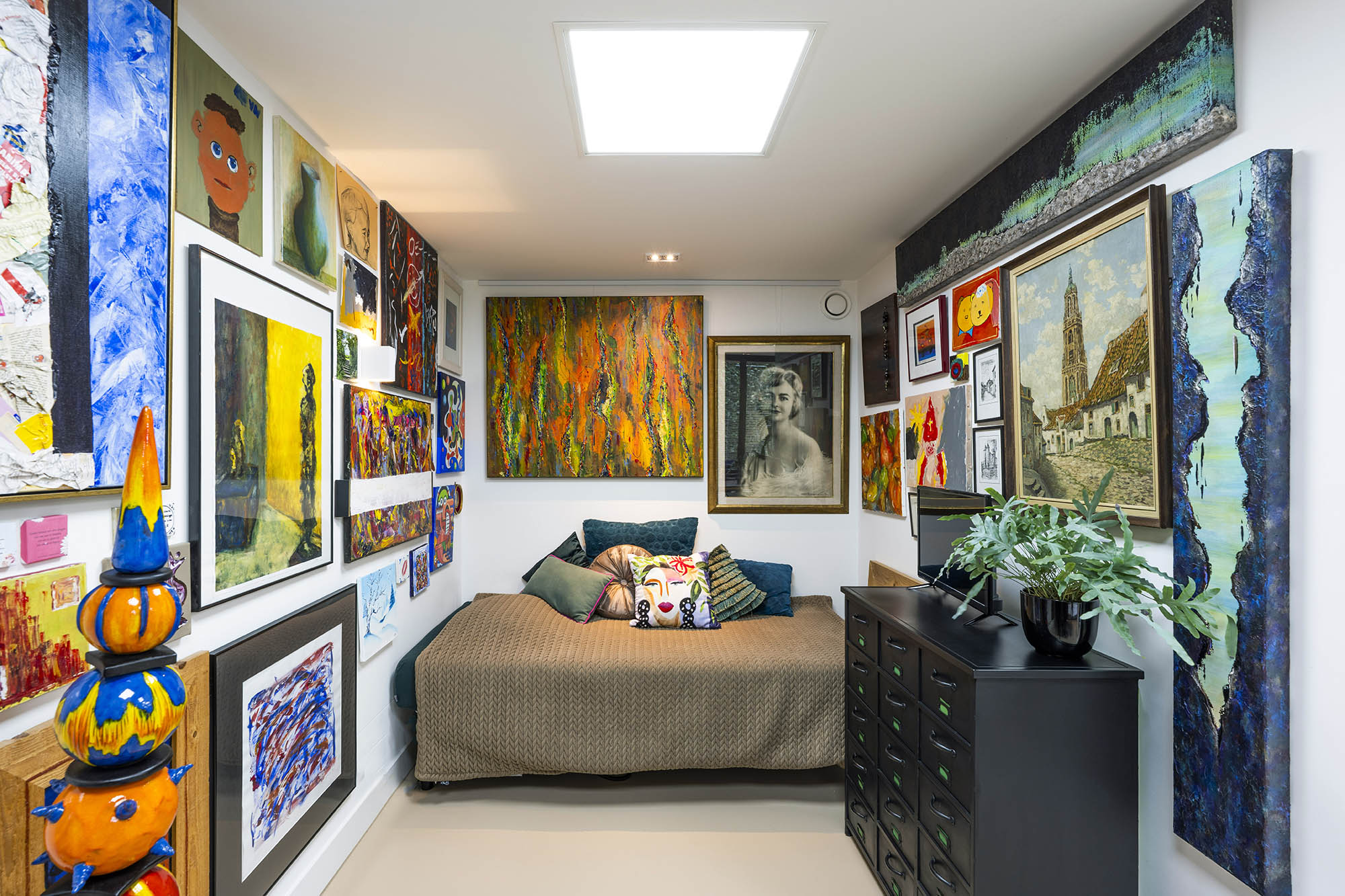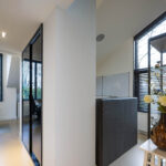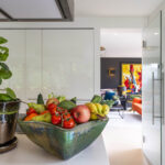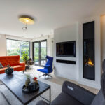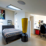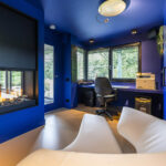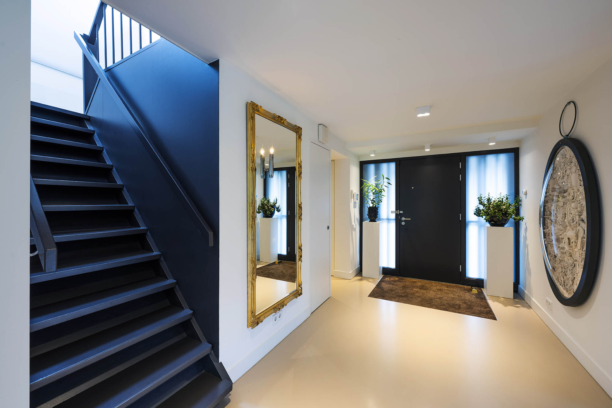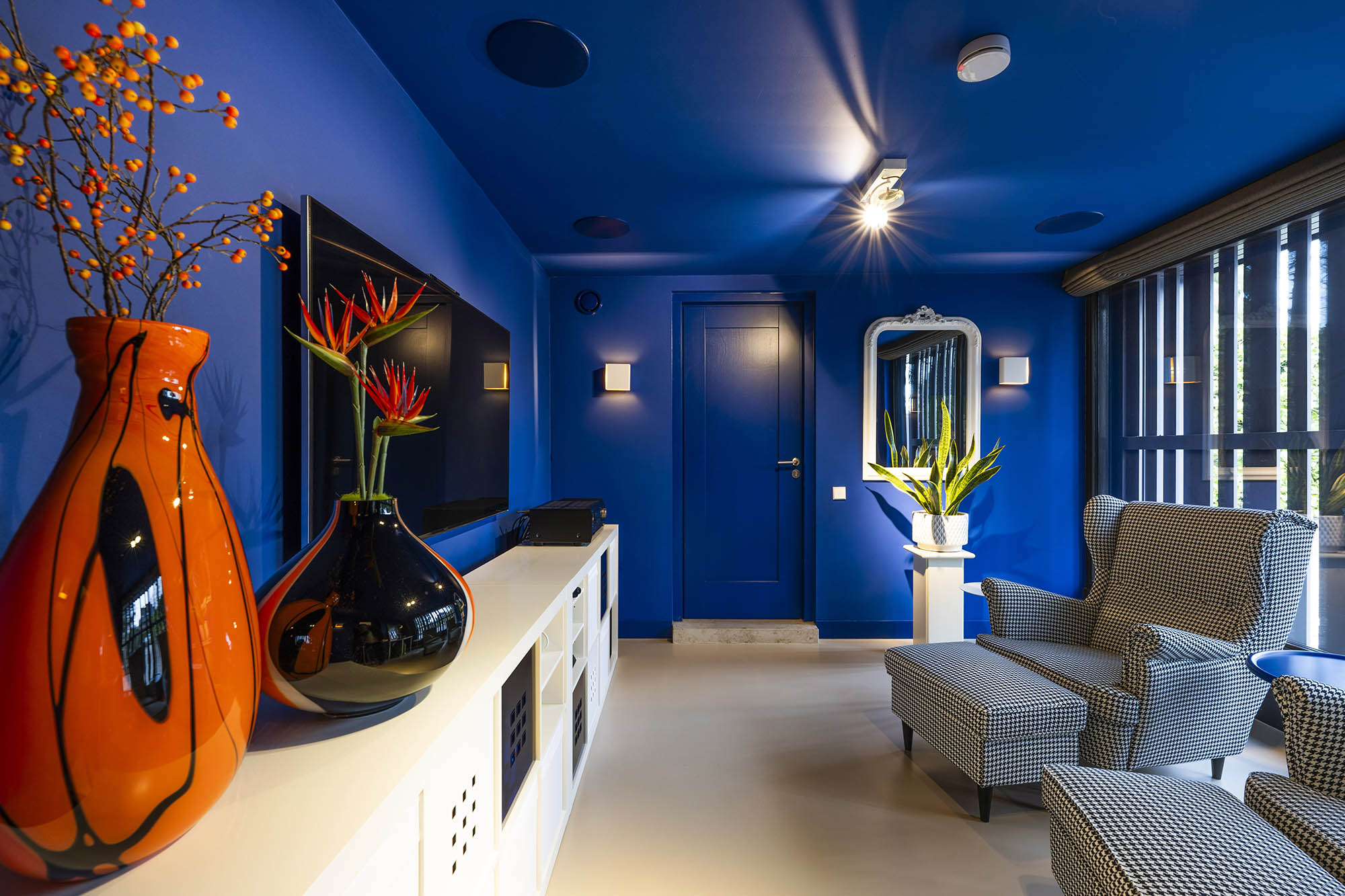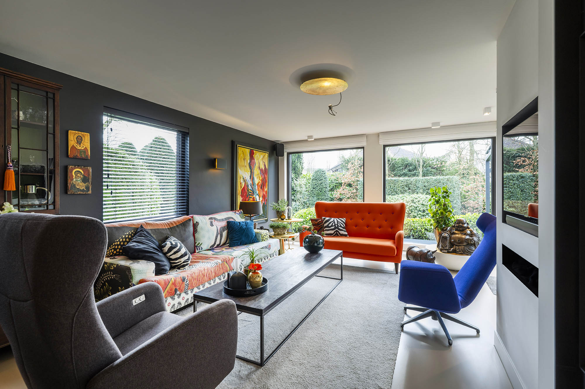 De sfeer in de keuken wordt extra versterkt door de doorkijk gashaard, die deze ruimte verbindt met de ‘blue room’: een gave werk- en leeskamer met maatwerkkasten. Tussen de keuken en het atelier bevindt zich praktische kastruimte en een wijnklimaatkast. Daarnaast zijn er een technische ruimte en een royale wasruimte aanwezig.