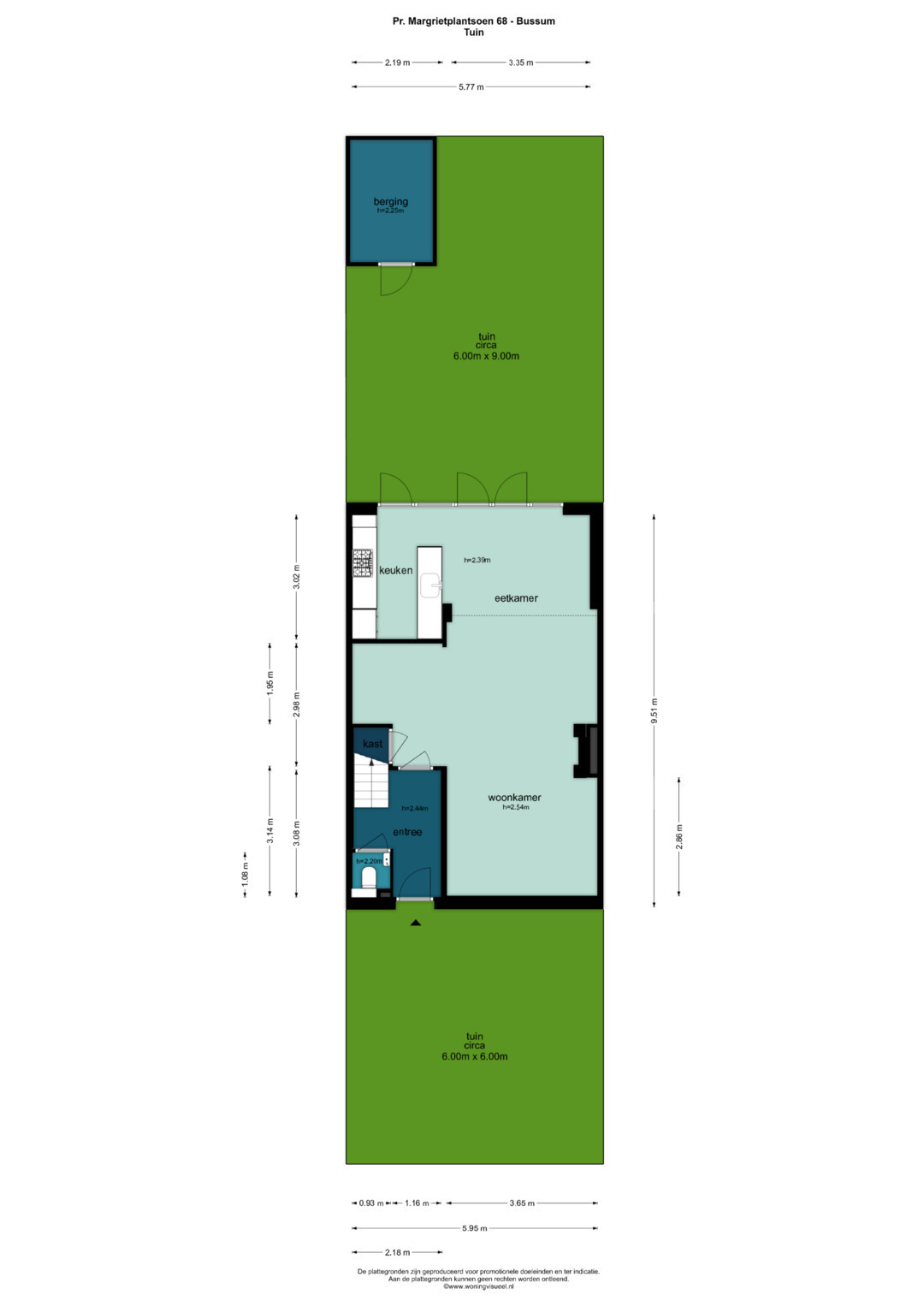 De woning is gelegen in één van de groenste wijken van Bussum, een zeer kindvriendelijke buurt met veel gezinnen. In de directe omgeving bevinden zich het park “De Groene Long”, de Bussummerheide met speeltuin Heidezicht inclusief restaurant en verschillende winkelvoorzieningen. Diverse sportaccommodaties (honkbal, voetbal, golf, tennis, fitness, squash, atletiekvereniging/ klimhal, skiën etc.) bevinden zich op fietsafstand van de woning. Uitvalswegen maar ook treinstation Bussum-Zuid alsmede het gezellige centrum van Bussum bevinden zich eveneens op korte afstand. Ook zijn er diverse scholen (zowel basis-als middelbaar onderwijs) op korte afstand gelegen.