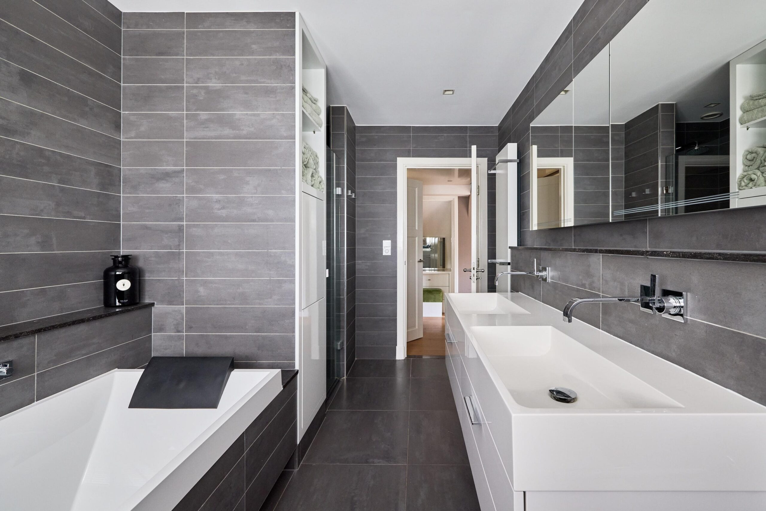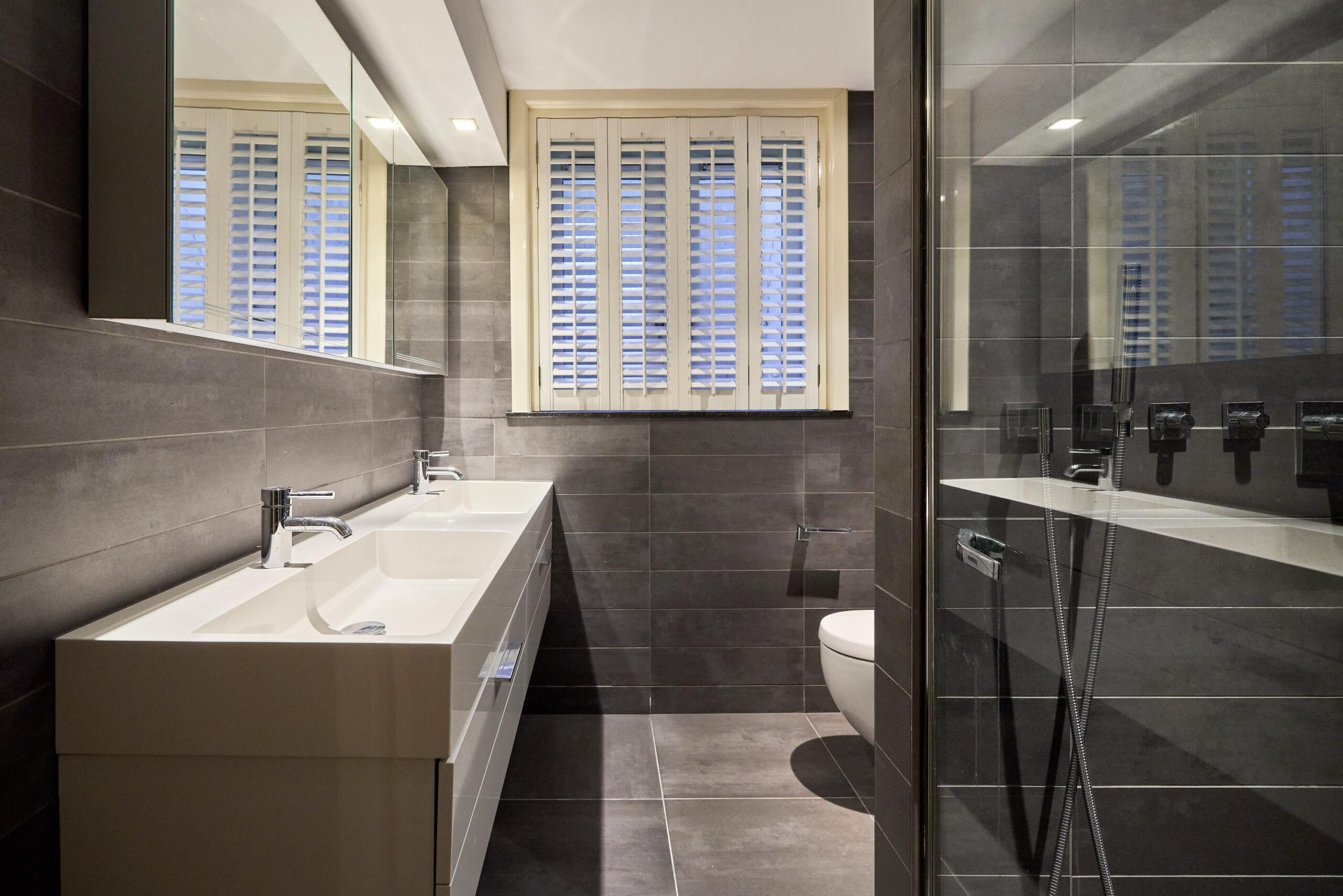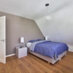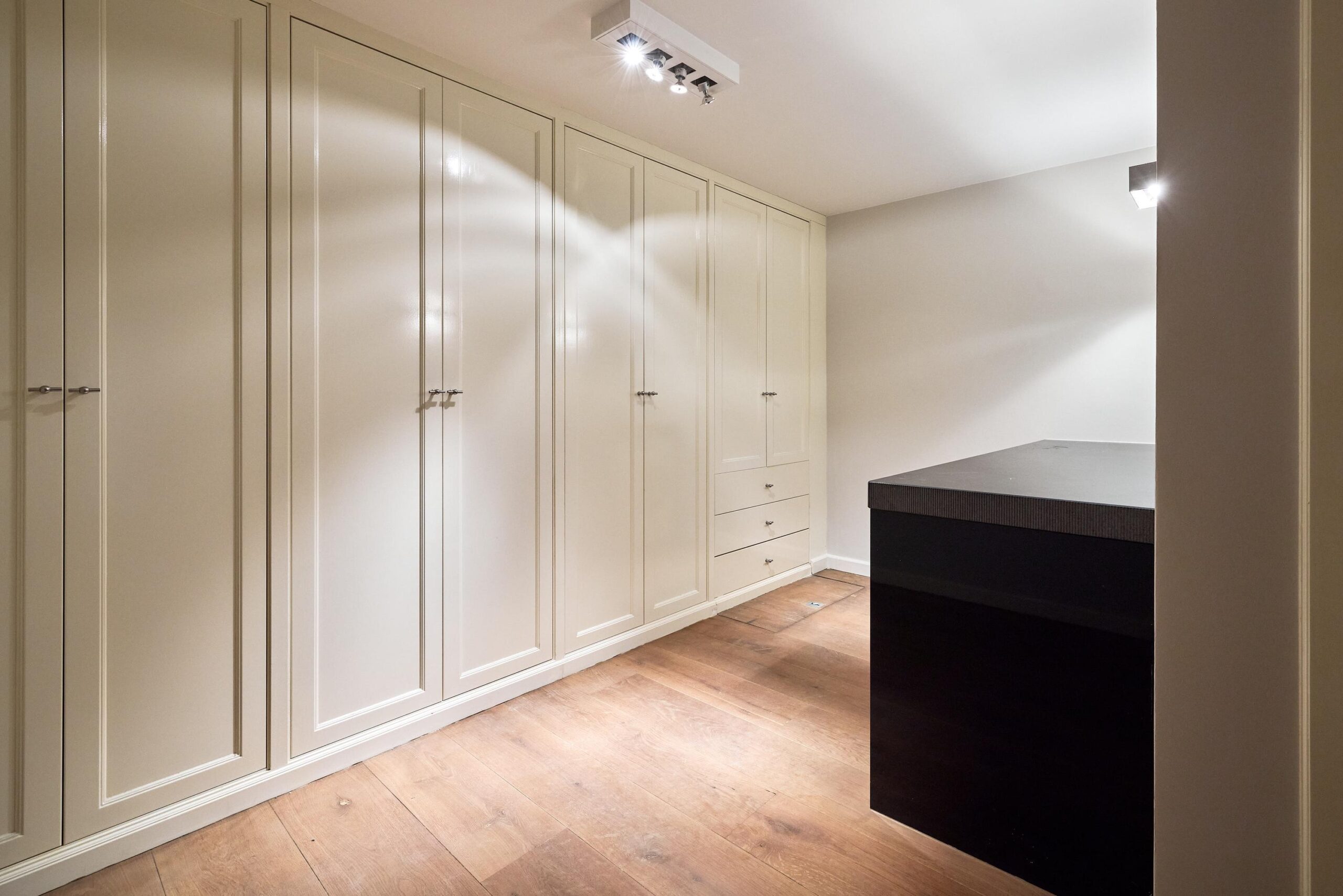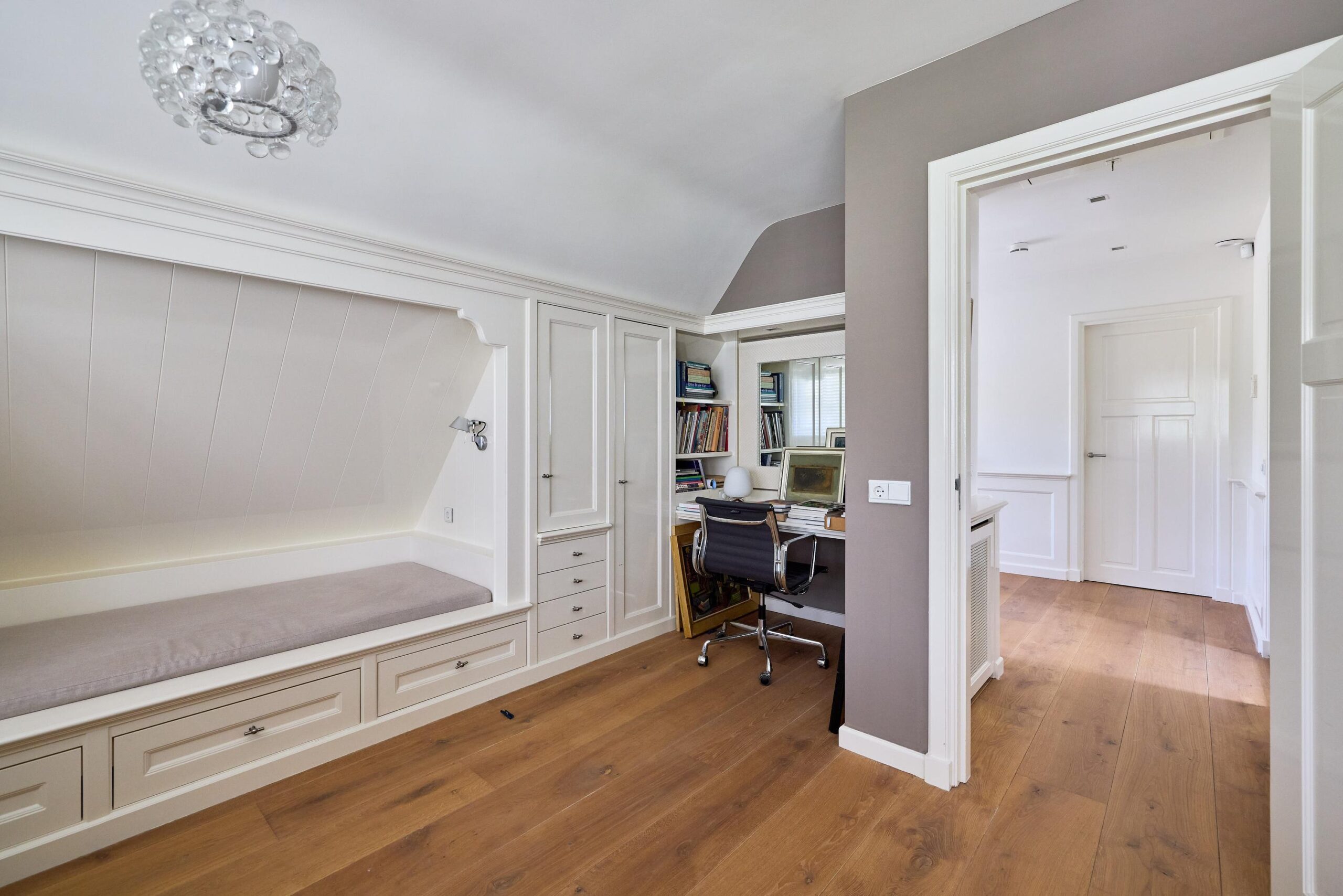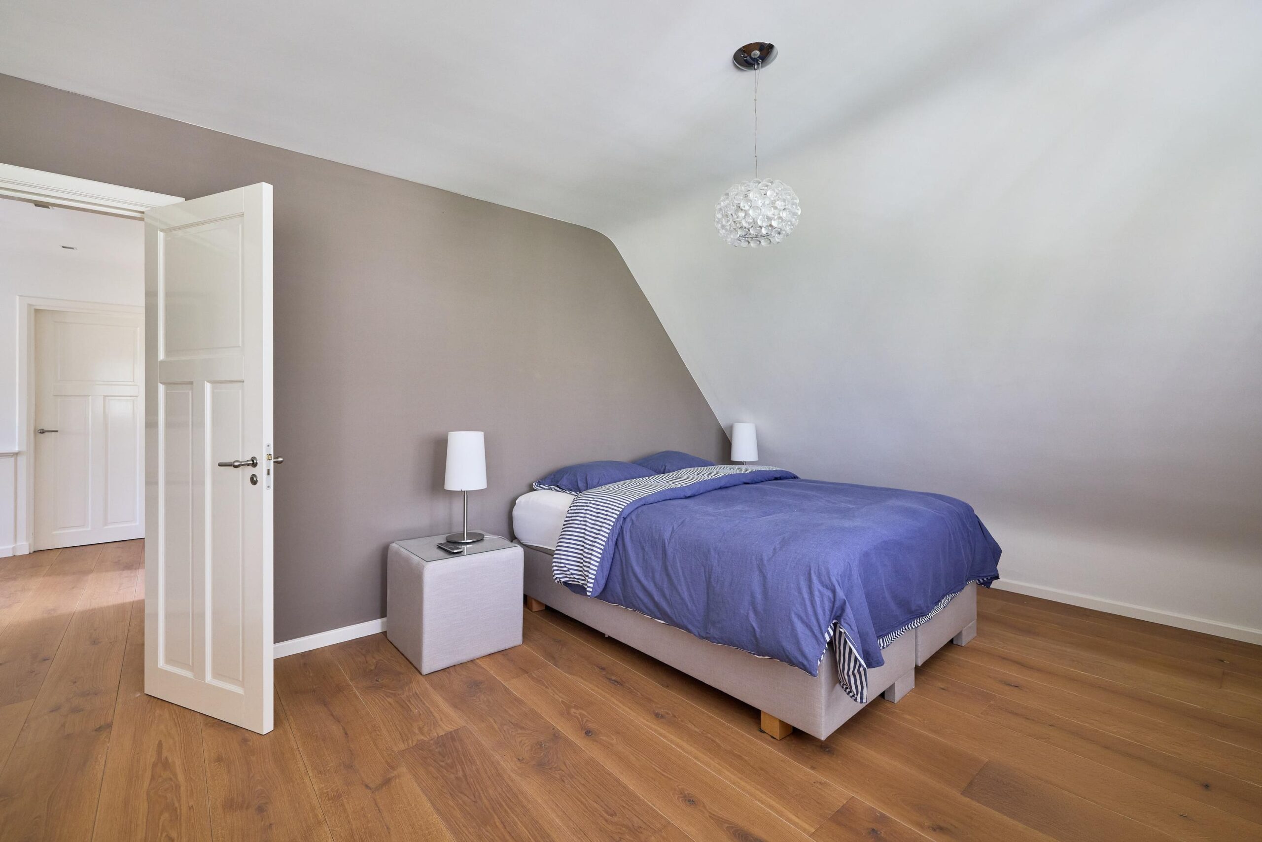 Eerste verdieping: zeer lichte overloop met vide, master-bedroom aan de achterzijde voorzien van airco, openslaande deuren naar Frans balkon, aan weerszijde van de kamer vaste kasten een luxe badkamer voorzien van inloopdouche, toilet, ligbad en dubbele vaste wastafel. Tweede royale slaapkamer aan de voorzijde (voorheen twee slaapkamers) met vaste kasten en een bedstee. Tweede badkamer voorzien van inloopdouche, toilet, ligbad en dubbele vaste wastafel. Middels een vlizotrap is de vliering bereikbaar met opstelling CV.