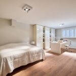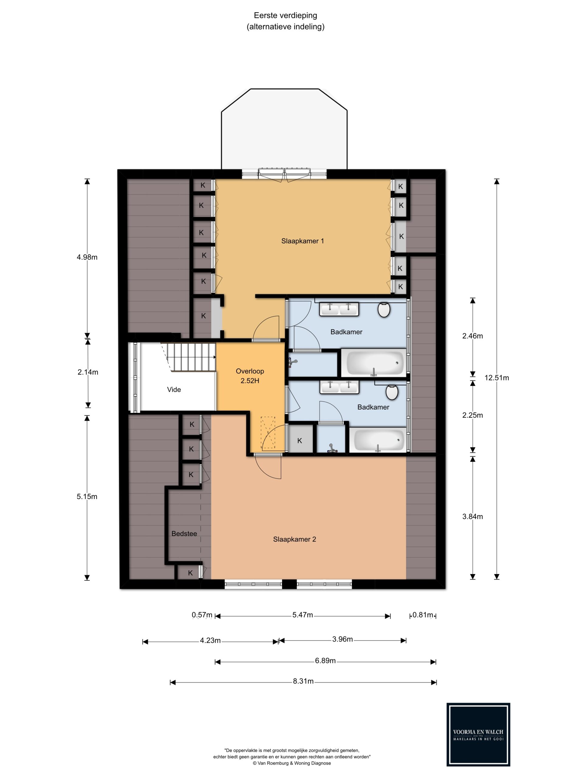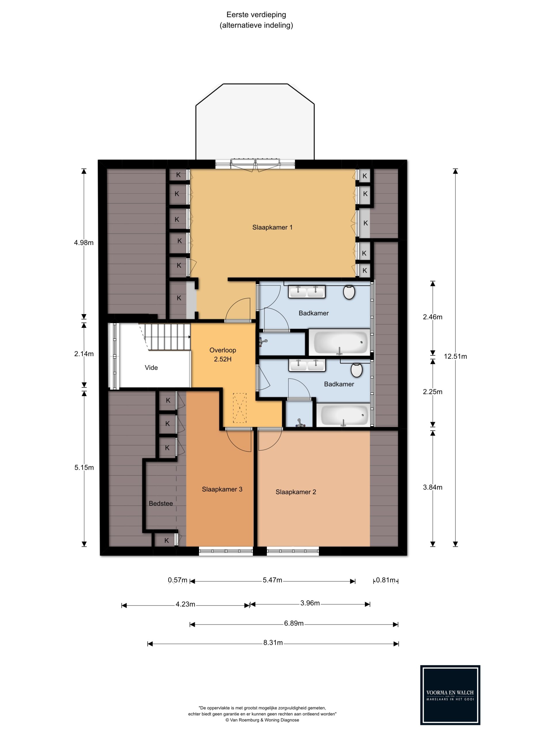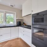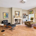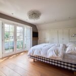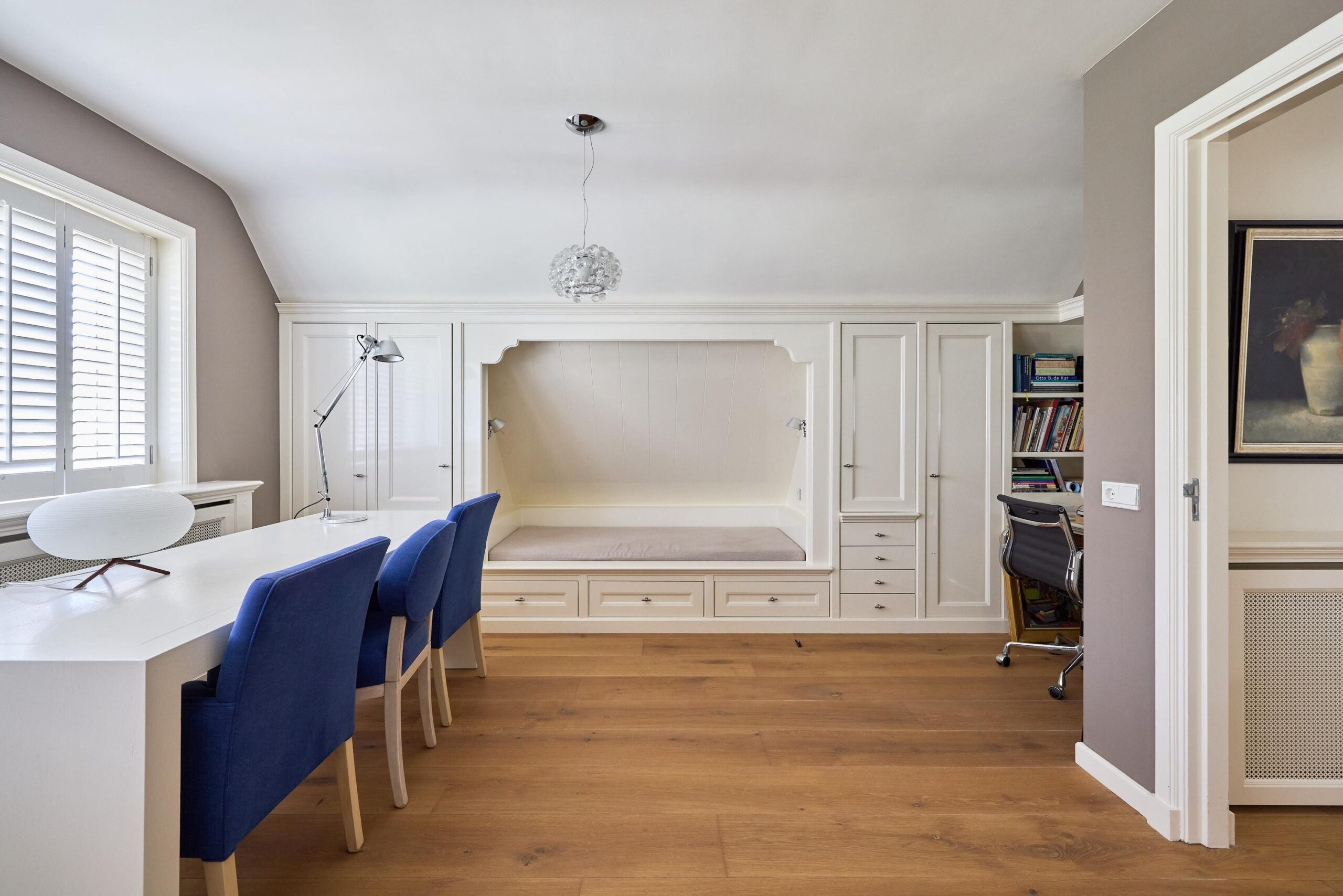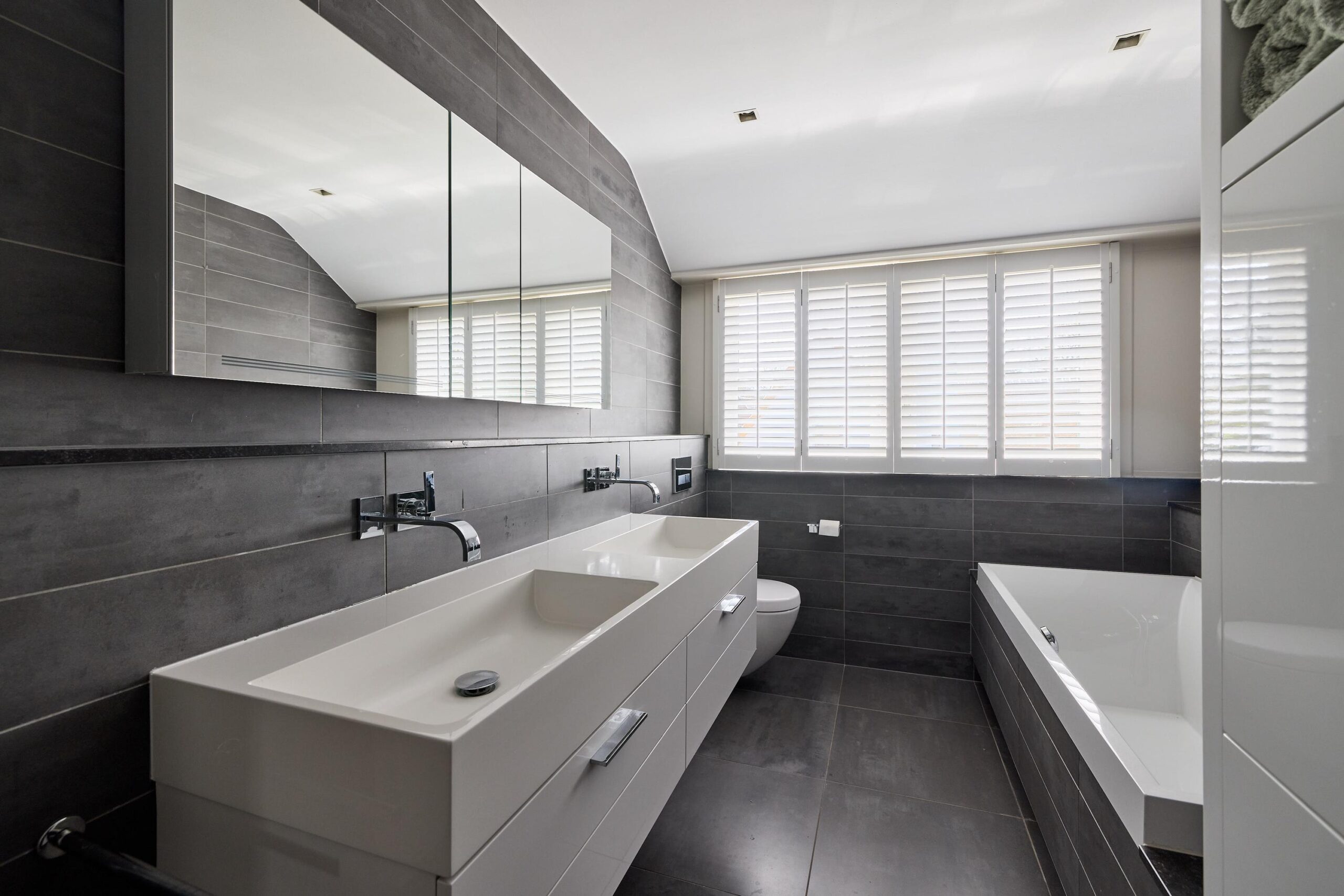 Eerste verdieping: zeer lichte overloop met vide, master-bedroom aan de achterzijde voorzien van airco, openslaande deuren naar Frans balkon, aan weerszijde van de kamer vaste kasten een luxe badkamer voorzien van inloopdouche, toilet, ligbad en dubbele vaste wastafel. Tweede royale slaapkamer aan de voorzijde (voorheen twee slaapkamers) met vaste kasten en een bedstee. Tweede badkamer voorzien van inloopdouche, toilet, ligbad en dubbele vaste wastafel. Middels een vlizotrap is de vliering bereikbaar met opstelling CV.