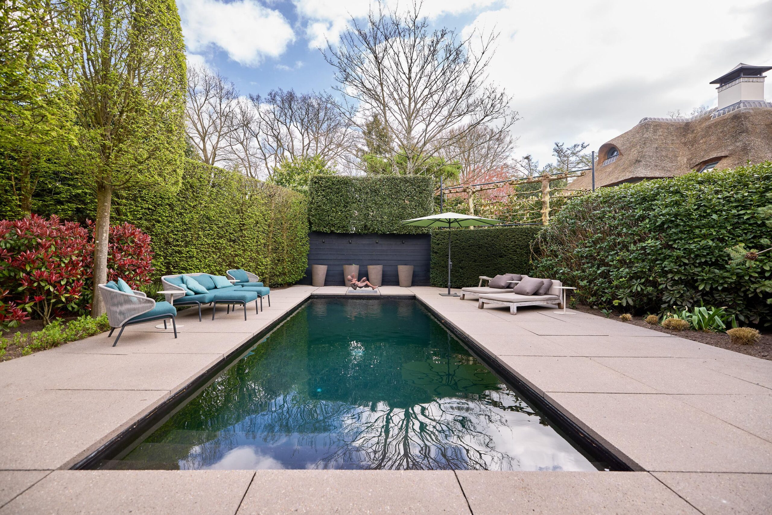 Tuin: de onderhoudsvriendelijke tuin biedt veel privacy en heeft diverse terrassen en een zwemvijver welke het geheel compleet maakt.