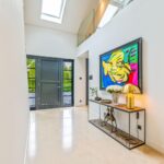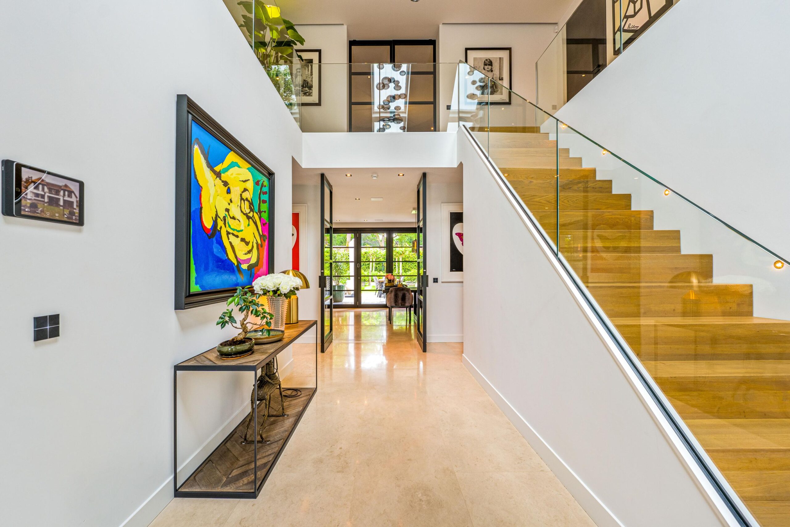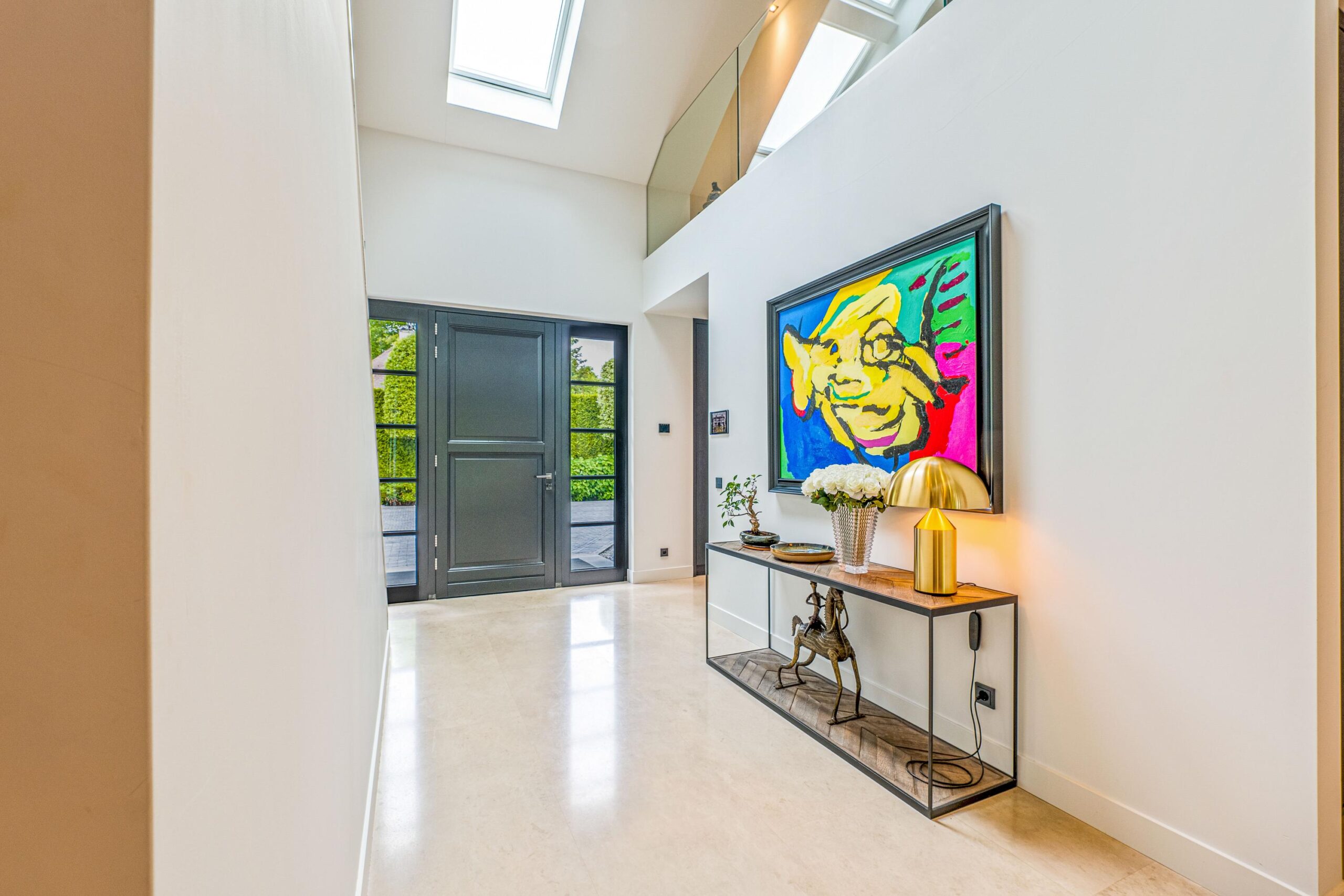 Aan een van de mooiste lanen van Blaricum, in het midden van de Gouden Driehoek, verscholen achter hoge hagen en een automatische poort, ligt deze rietgedekte villa (2017). Een oase van rust en verfijning, met een zeldzame combinatie van woonoppervlak (ca. 545 m²), wellness-souterrain, inpandige garage én een vrijstaande garage/berging — alles omgeven door een fraai aangelegde tuin op het zuiden.