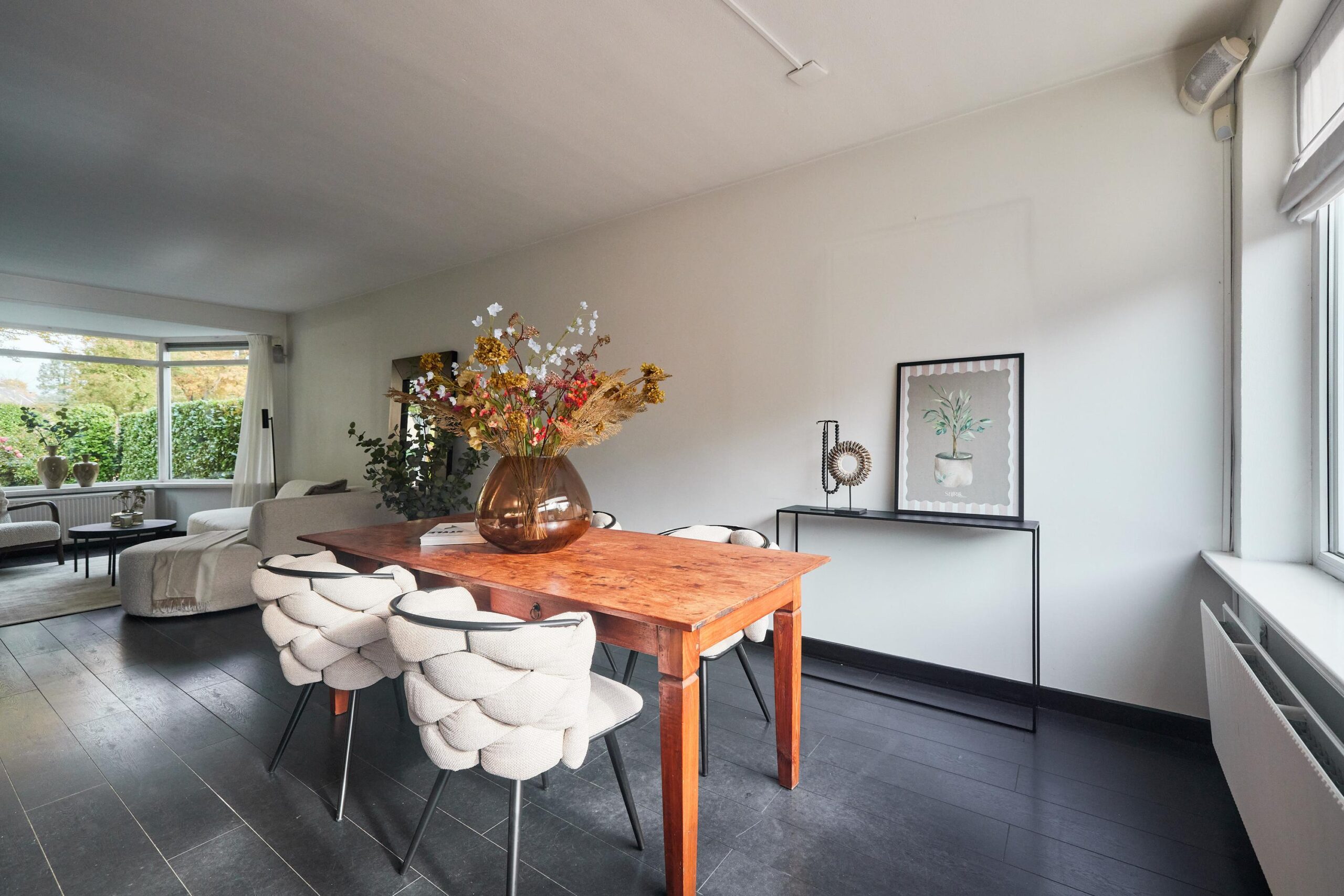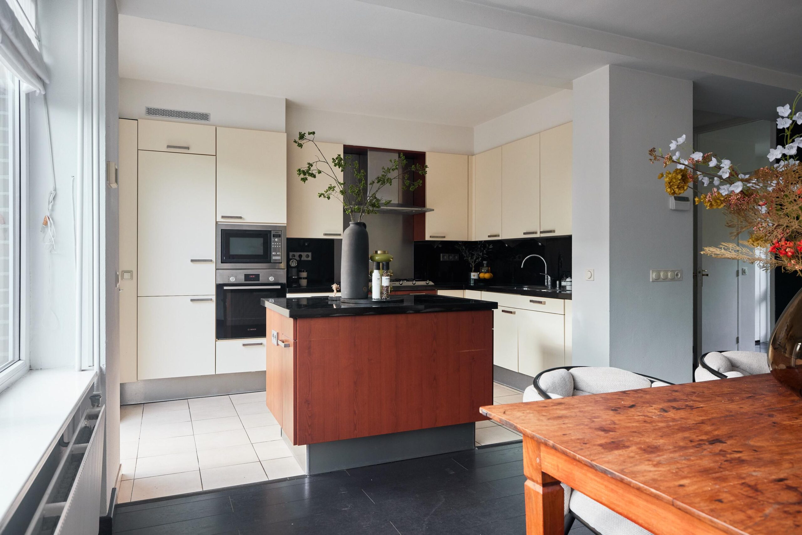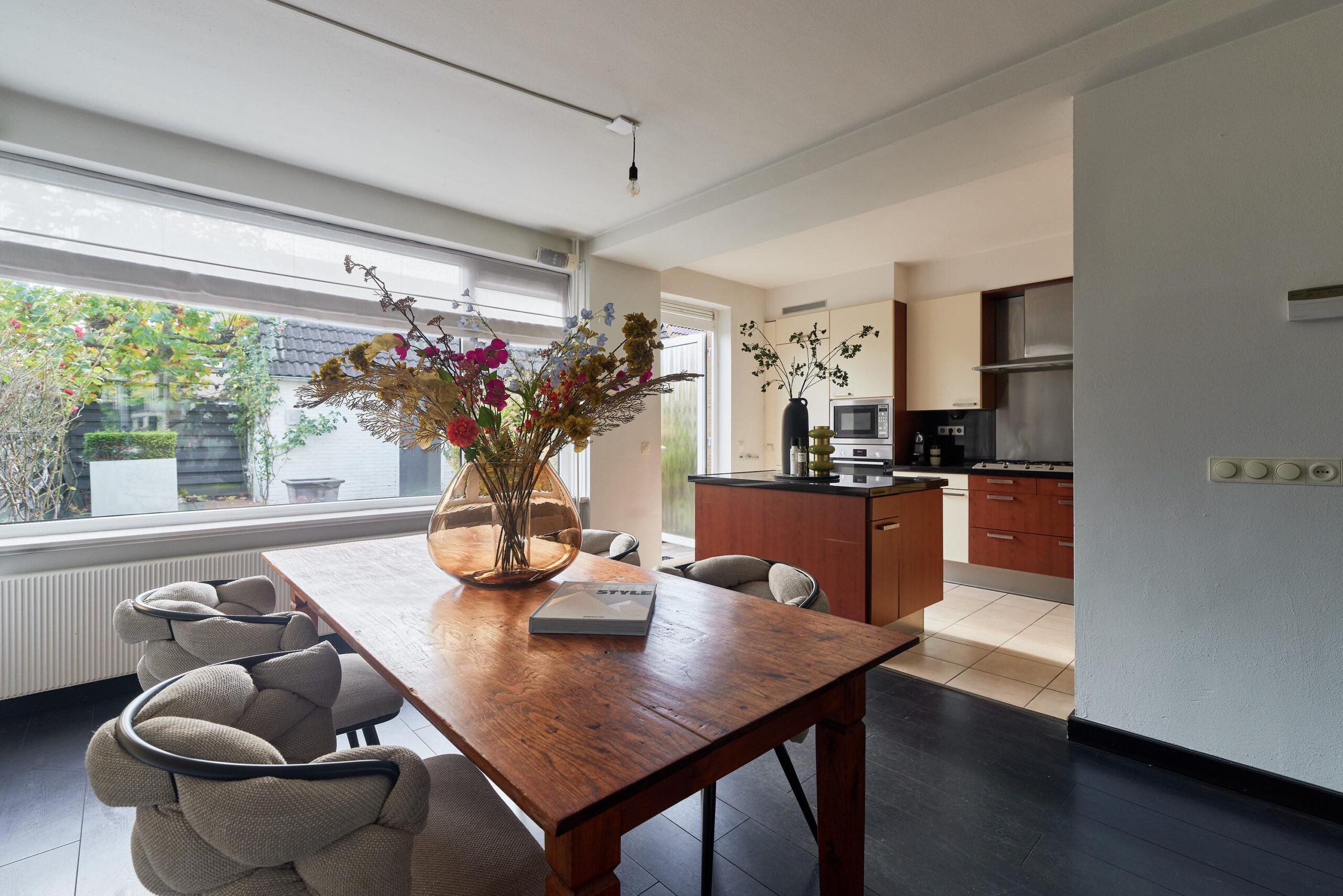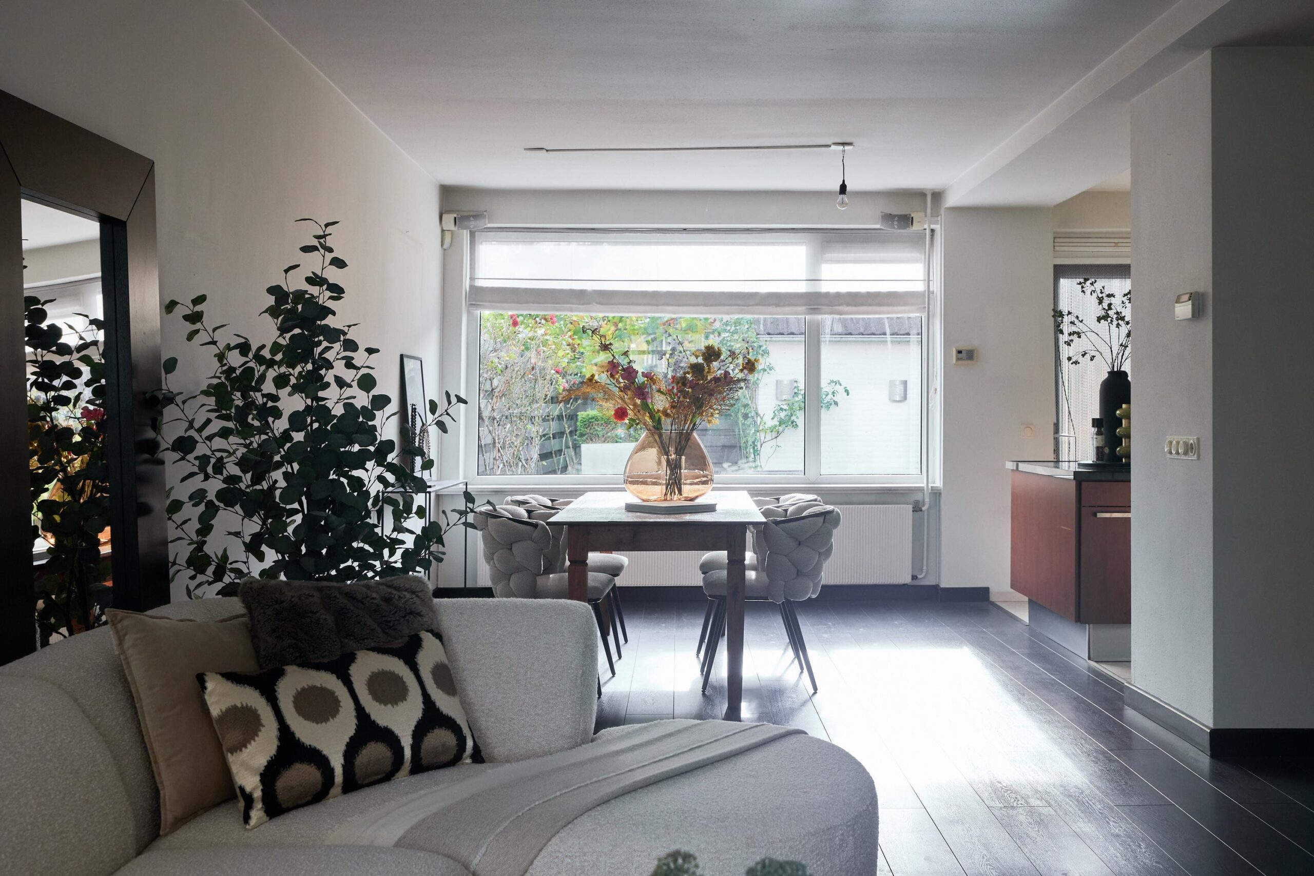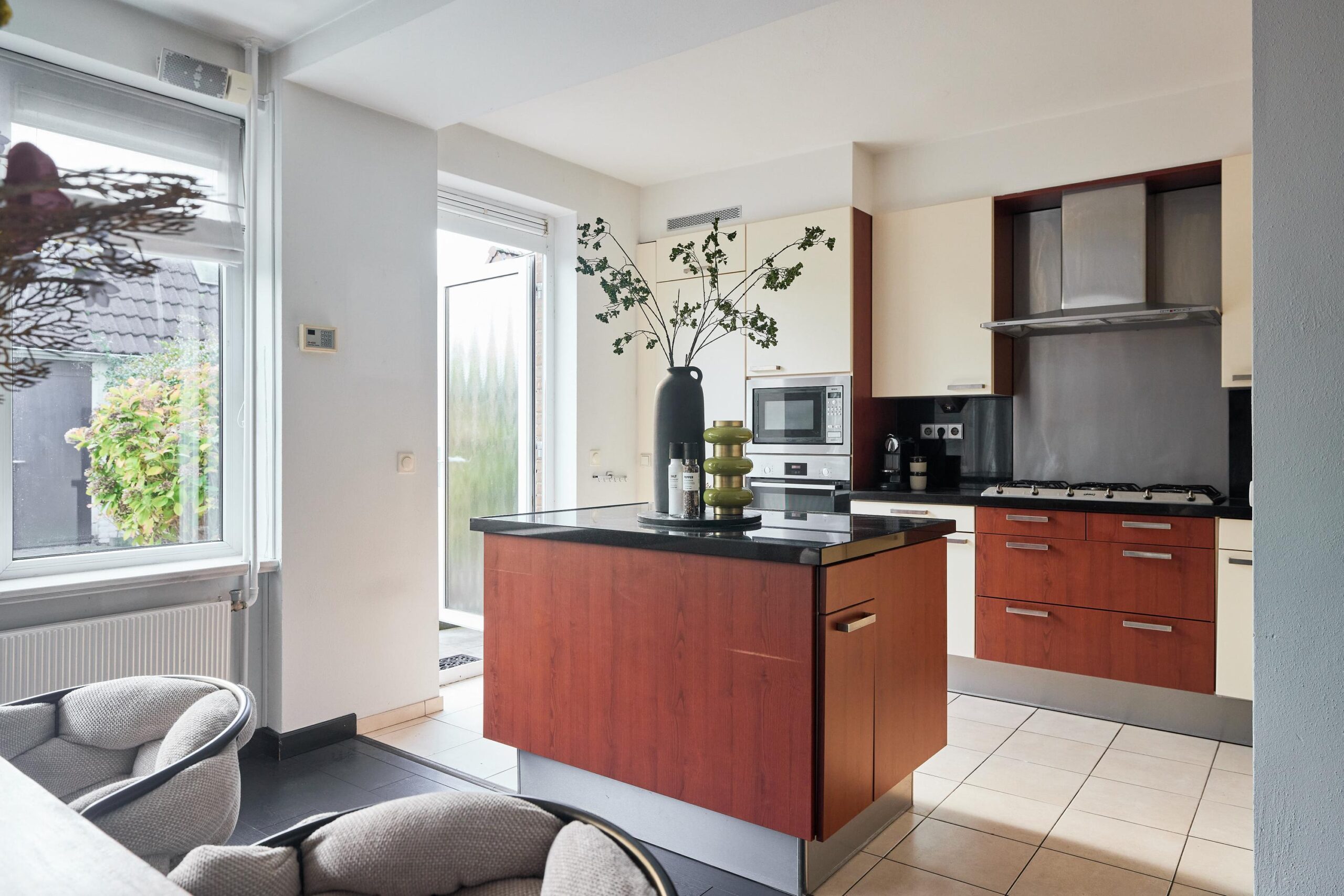 De entree biedt toegang tot een hal met vernieuwde meterkast, garderobe en een modern toilet. De lichte en uitnodigende woon-/eetkamer beschikt over een sfeervolle erker aan de voorzijde, een praktische trapkast en een open keuken met diverse inbouwapparatuur. Het keukeneiland biedt extra werk- en kastruimte, en via de deur aan de achterzijde is er directe toegang tot de zonnige tuin.