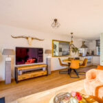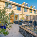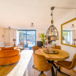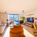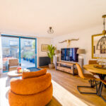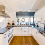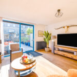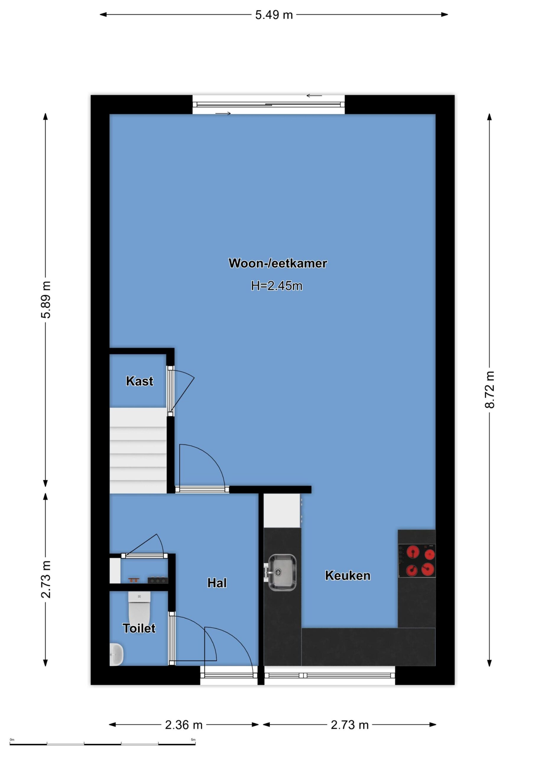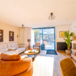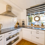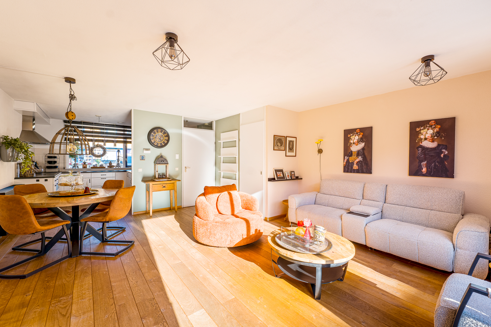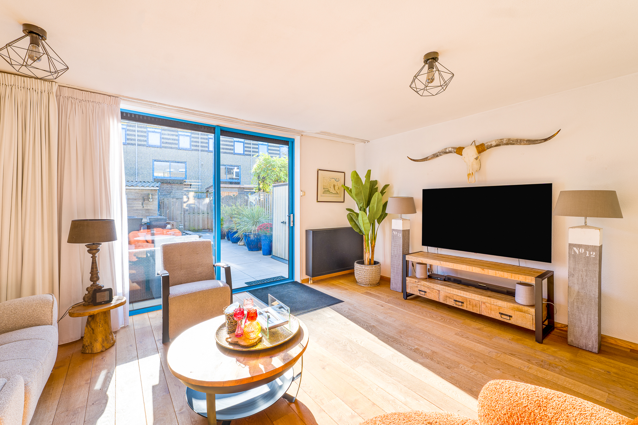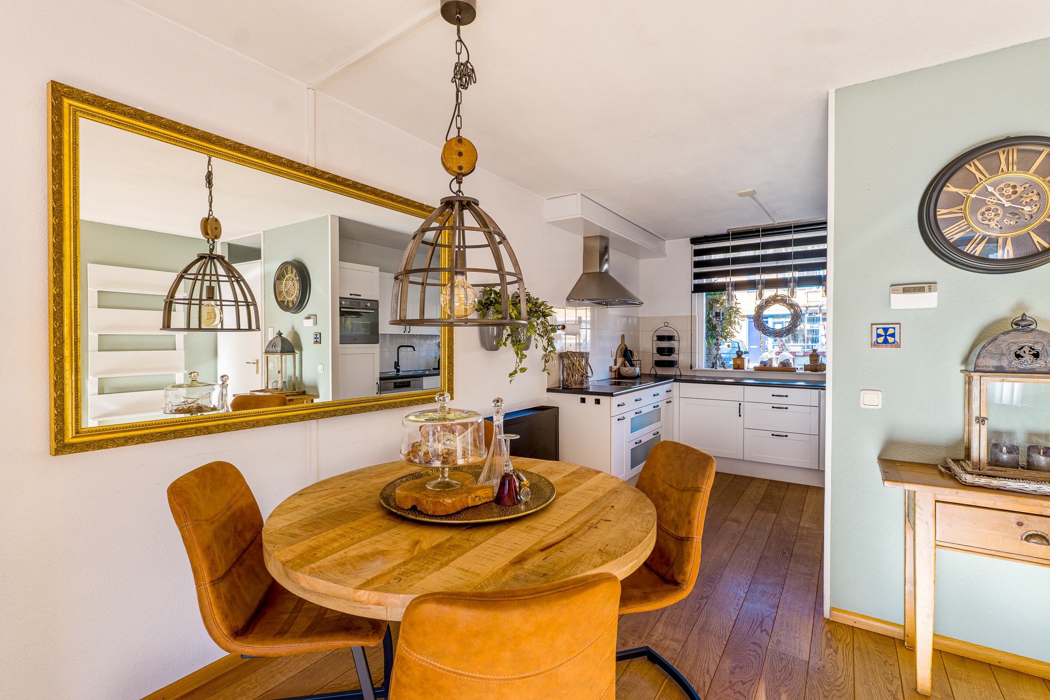 Entree, hal, modern toilet met fonteintje, meterkast, lichte woon-eetkamer met houten vloer, vanuit de woonkamer middels schuifpui toegang tot de zonnige achtertuin, moderne open keuken voorzien van diverse inbouwapparatuur.