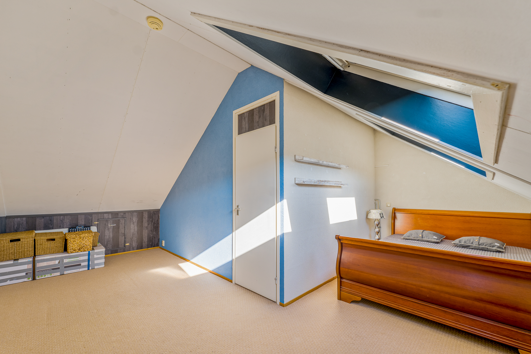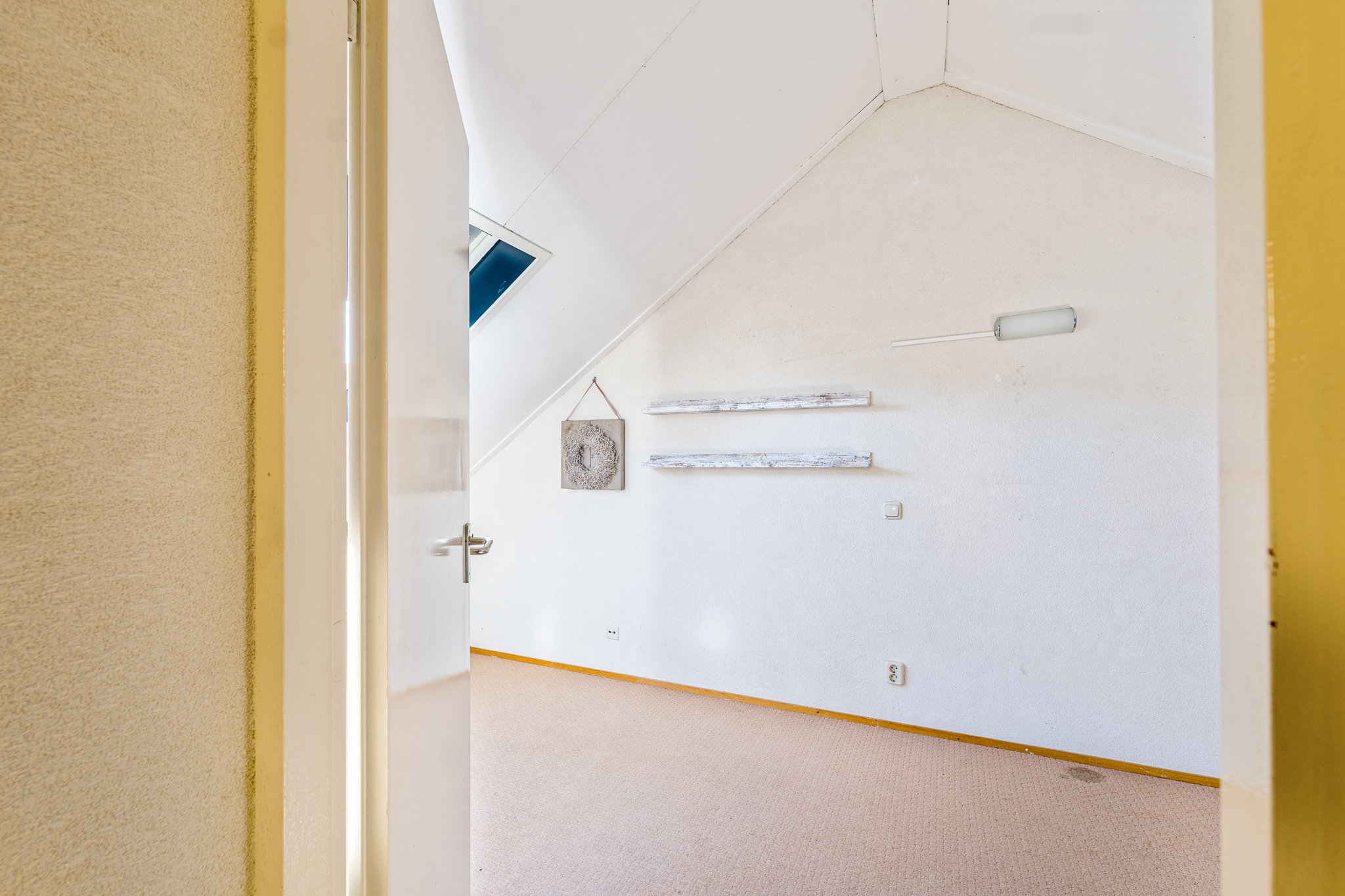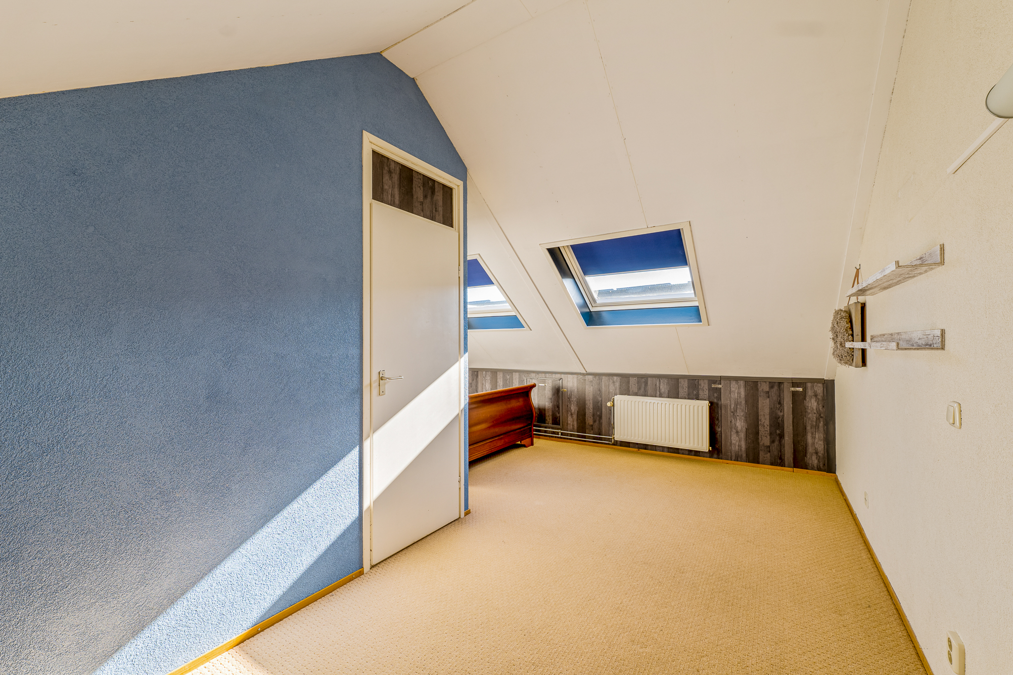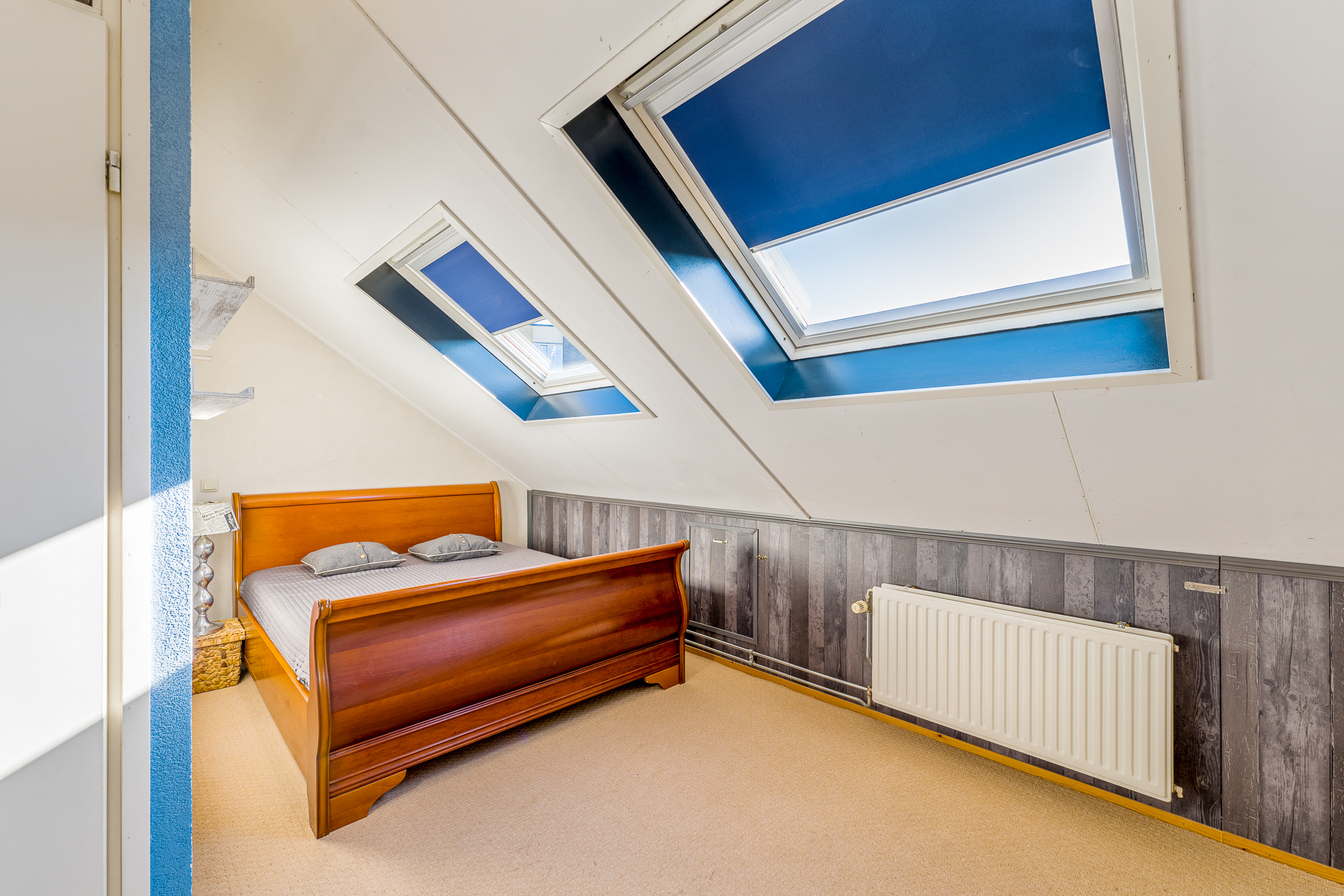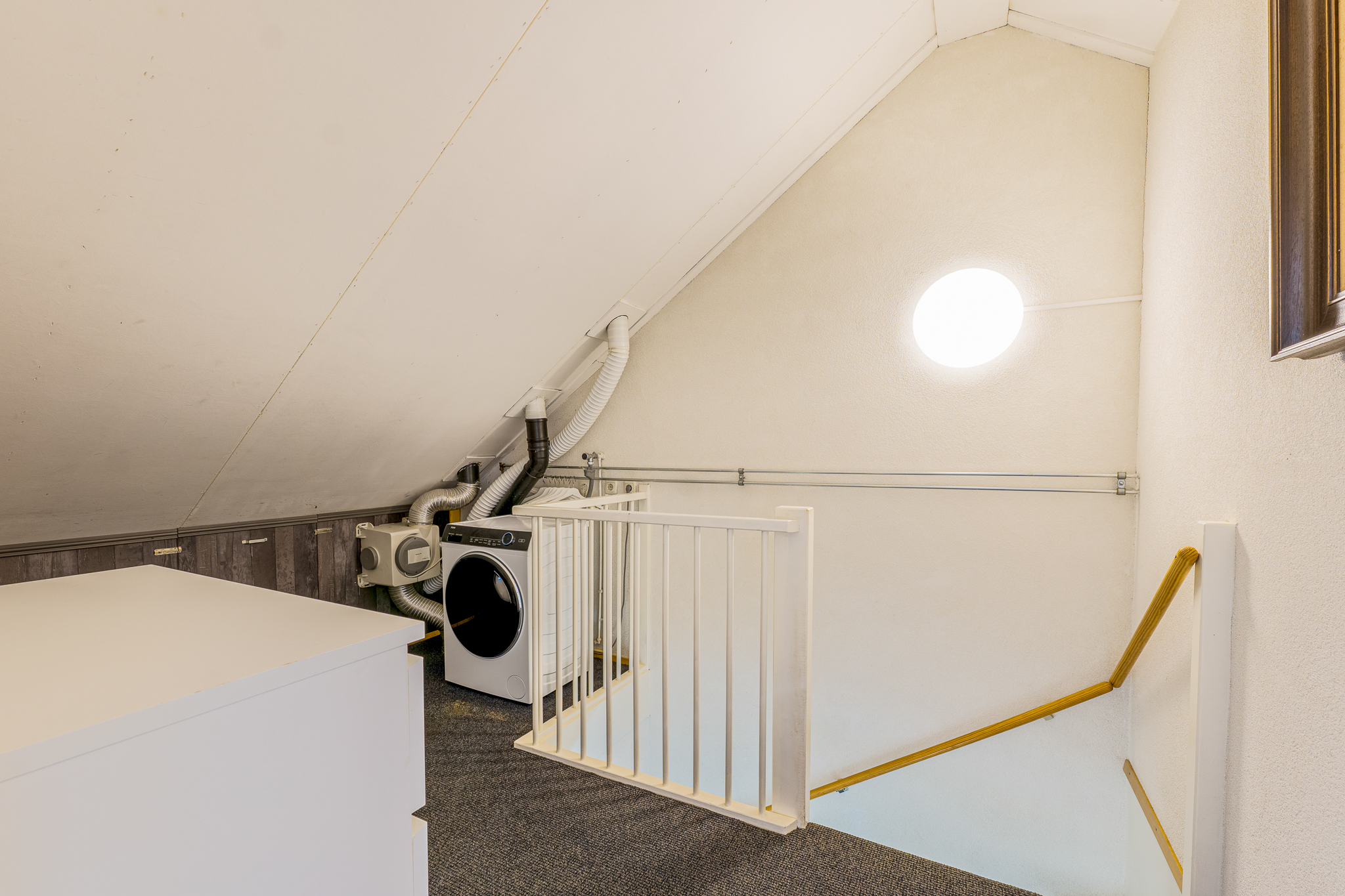 Via vaste trap te bereiken ruime zolderkamer met wasmachine/drogeraansluiting, slaapkamer met 2 dakramen voor extra daglichttoetreding.
