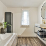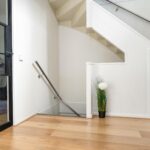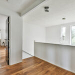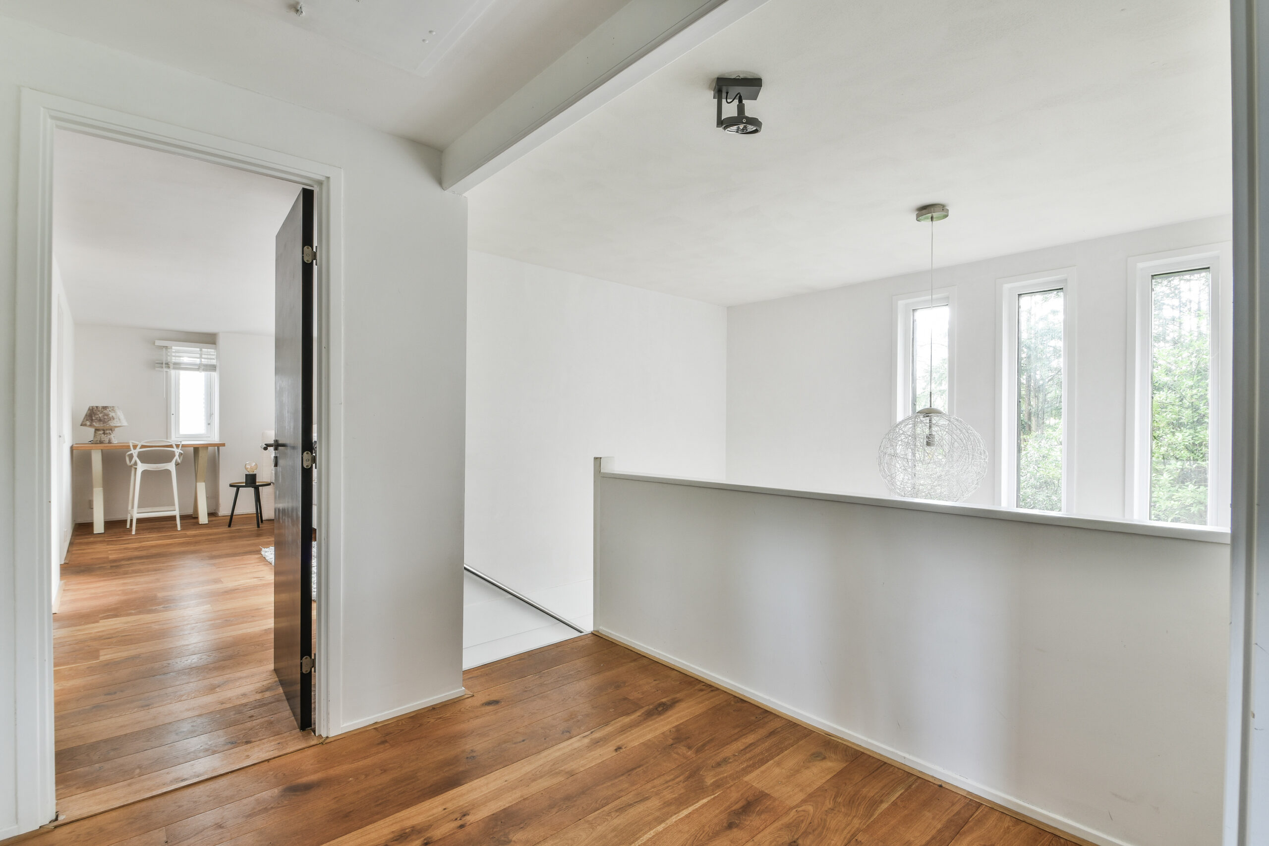 The entire floor is finished with wooden flooring, creating a warm atmosphere.