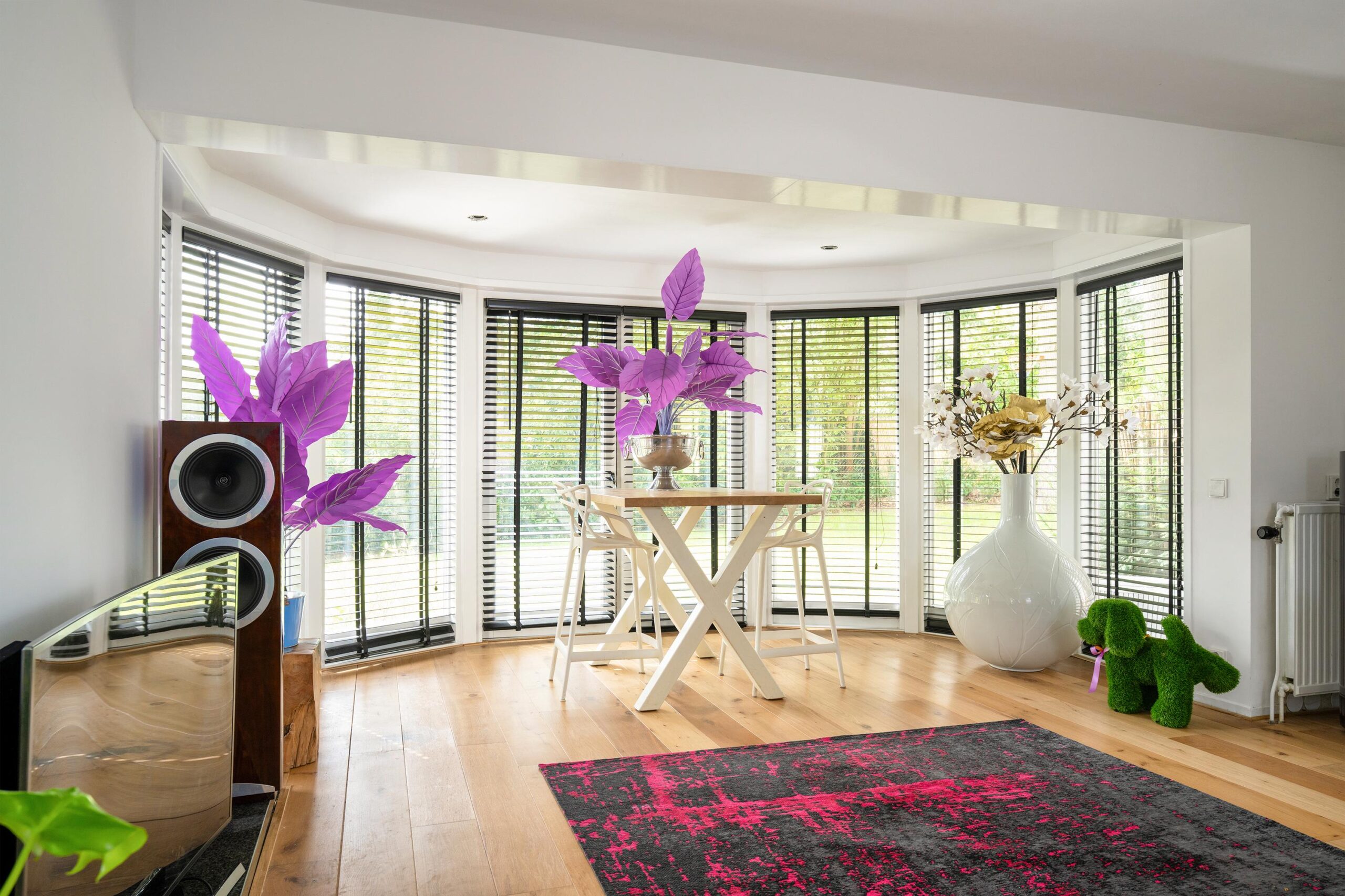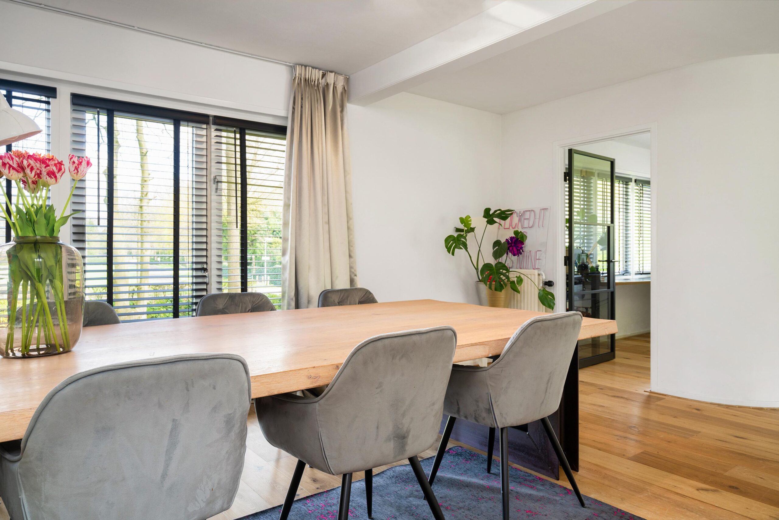 In an idyllic location on the edge of the Laarder Eng, you'll find this detached turnkey villa (1986) with 235 m² of living space on a lovely 1,238 m² plot. The villa, designed by architect Drabbe, features 4 spacious bedrooms, 3 bathrooms, and generous, bright living areas. Thanks to its open position, you'll enjoy fantastic views, optimal privacy, and low energy costs. A wonderful family home on a quiet, popular lane near the heart of Laren.