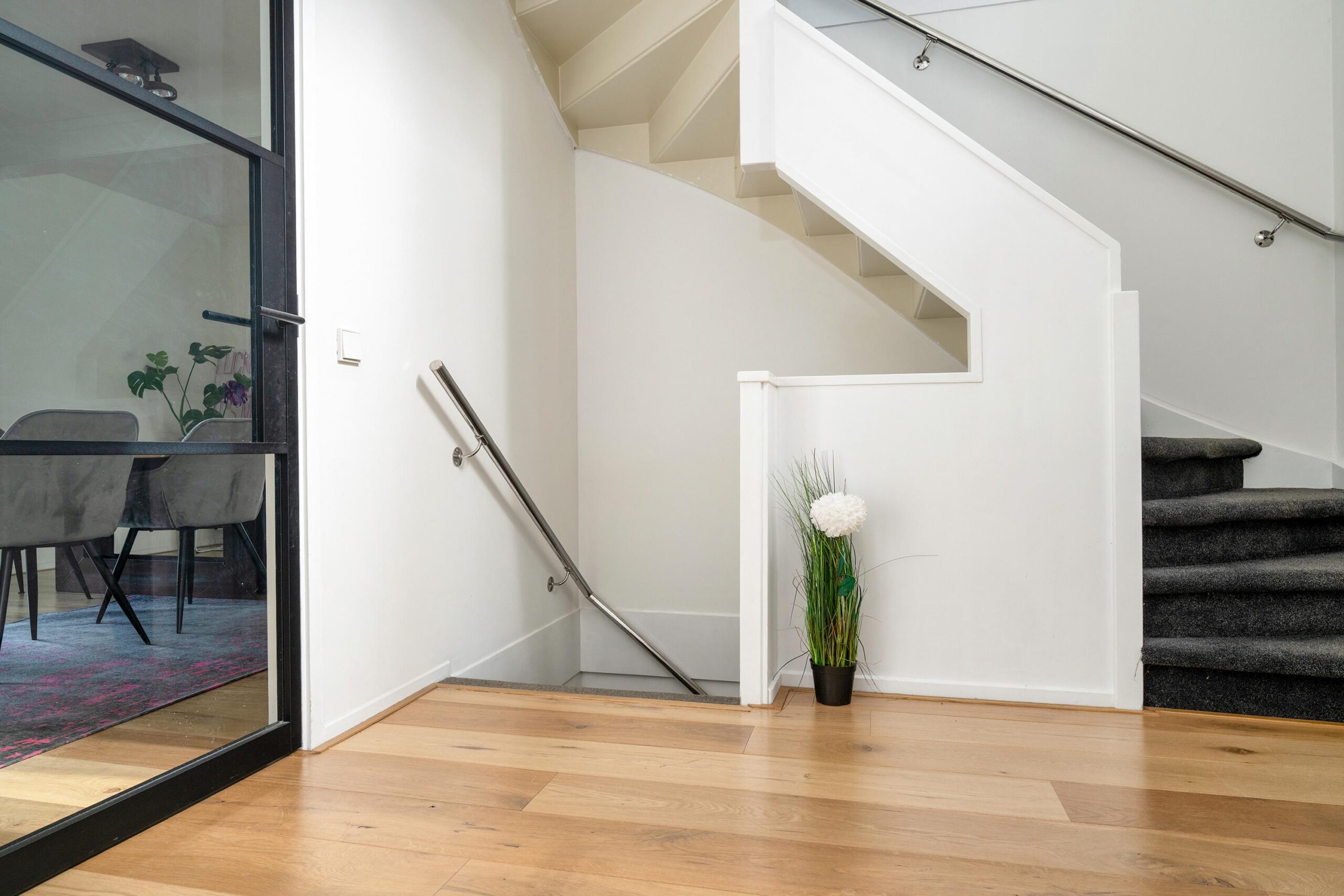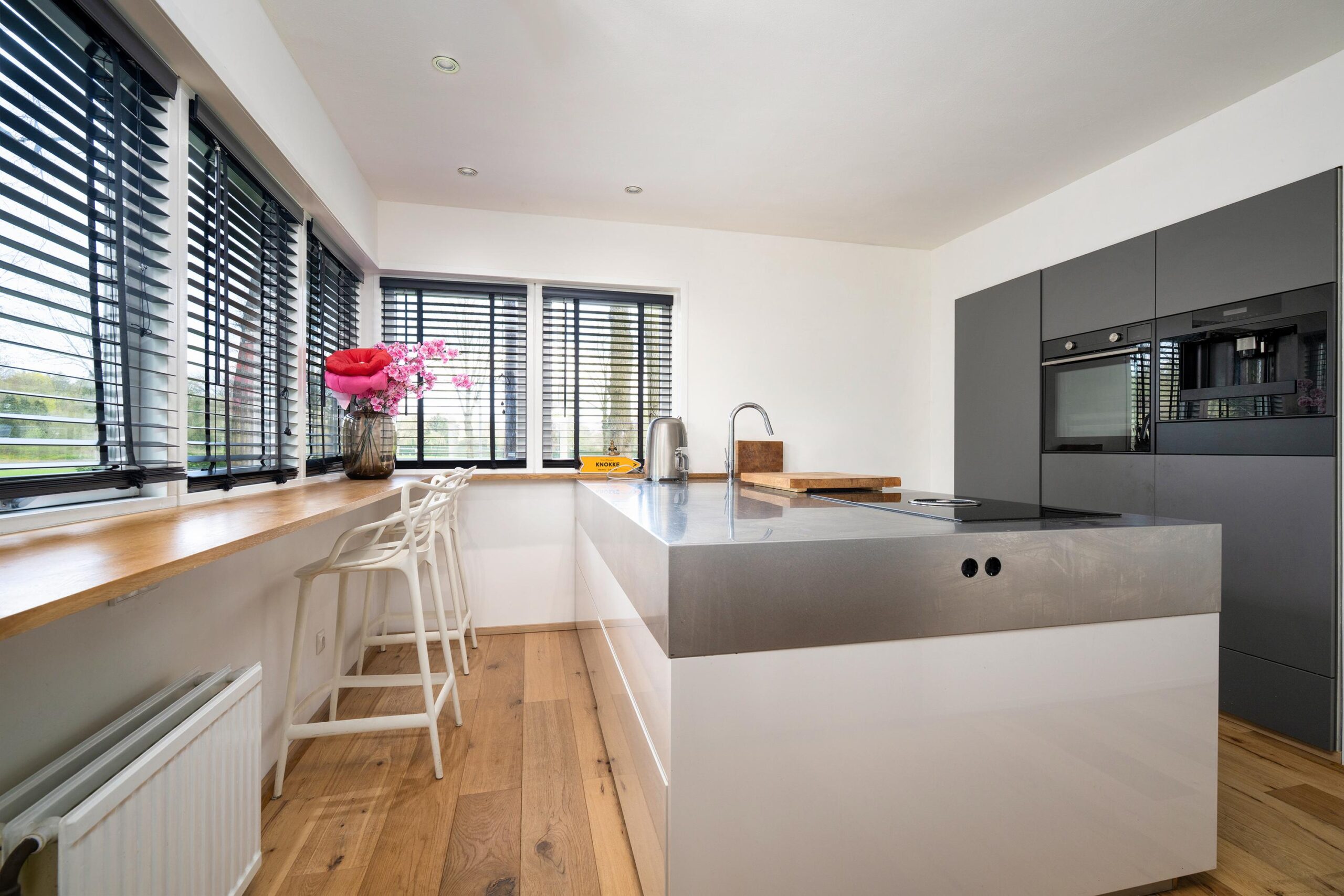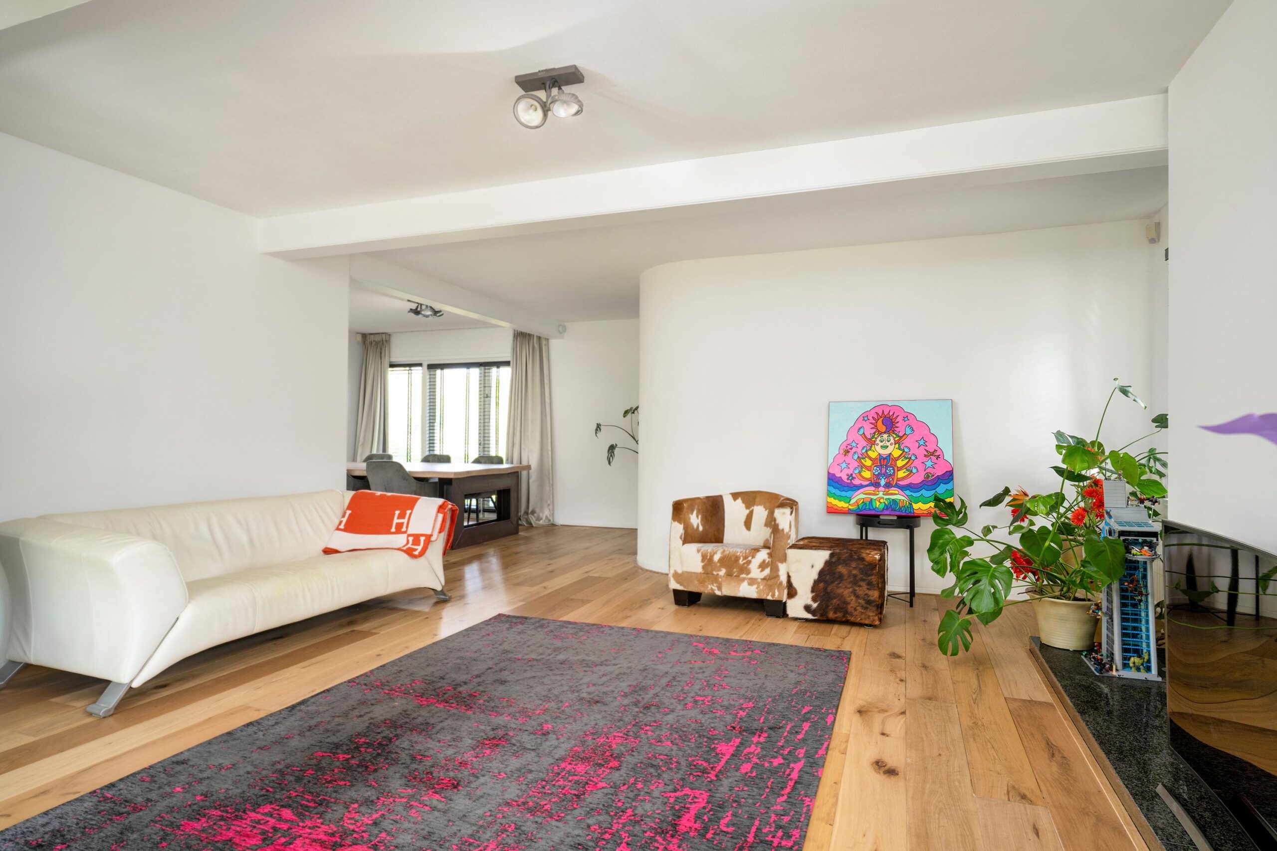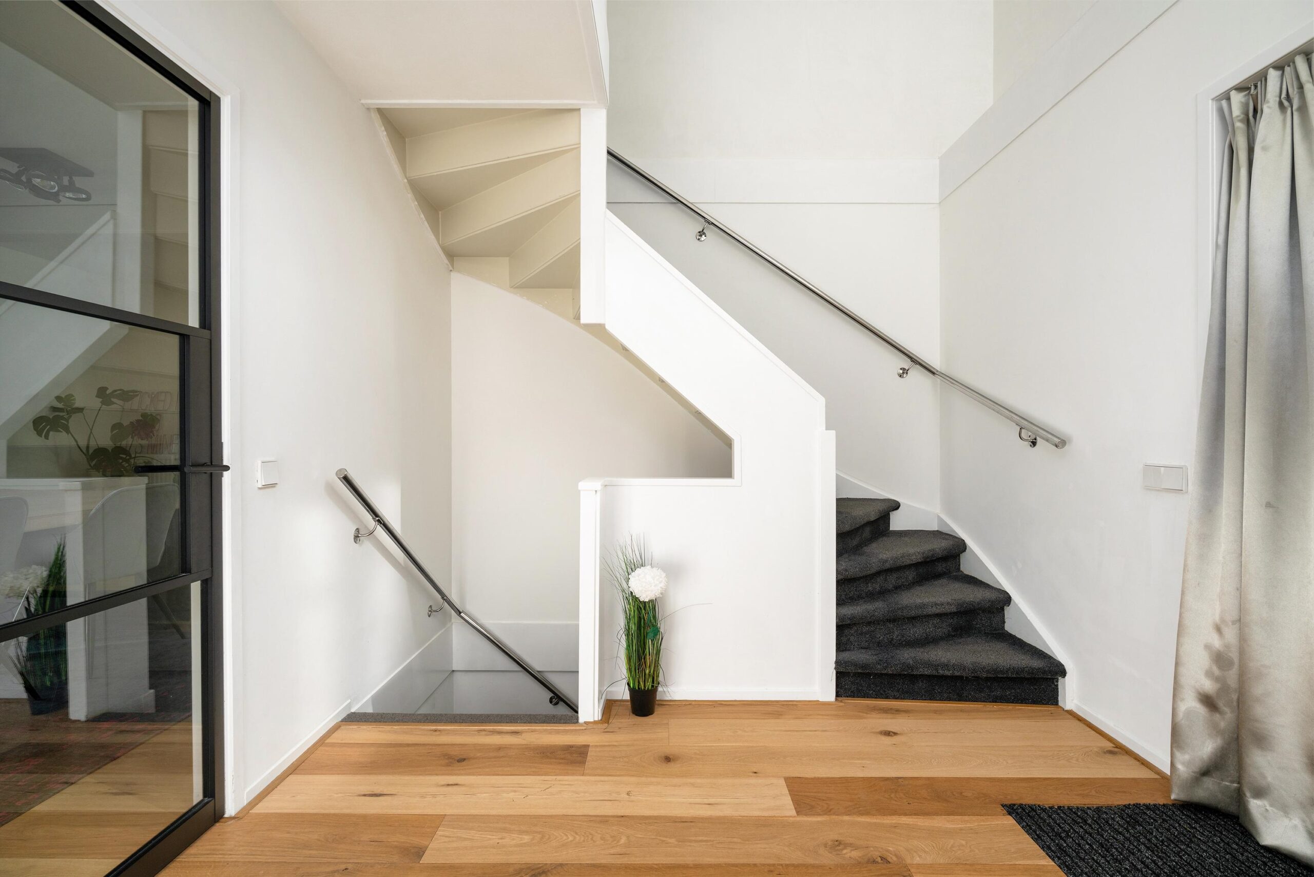 De entree straalt direct klasse uit. Een ruime hal met hoge lichte vide, garderobe, toilet en moderne afwerking leidt naar de indrukwekkende living en keuken van circa 100 m². Aan de tuinzijde bevindt zich de woonkamer, voorzien van een gezellige…