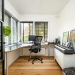 Through the glass door adjoining the living room, there is a separate, bright room that is currently used as an office, but is also perfect as a playroom or tv-room.