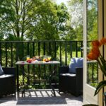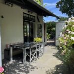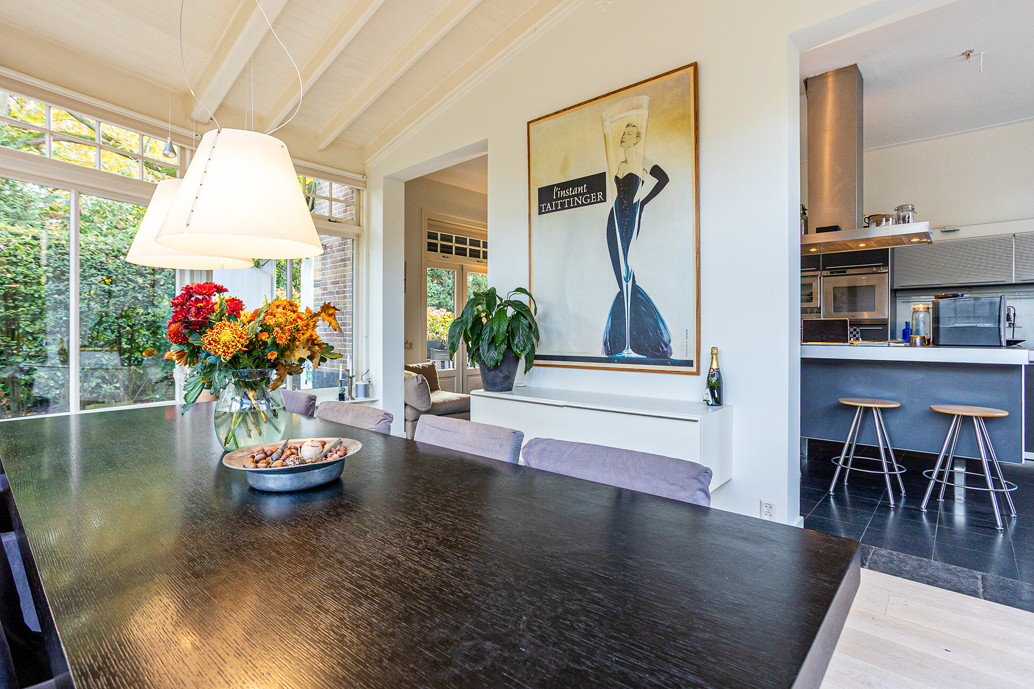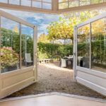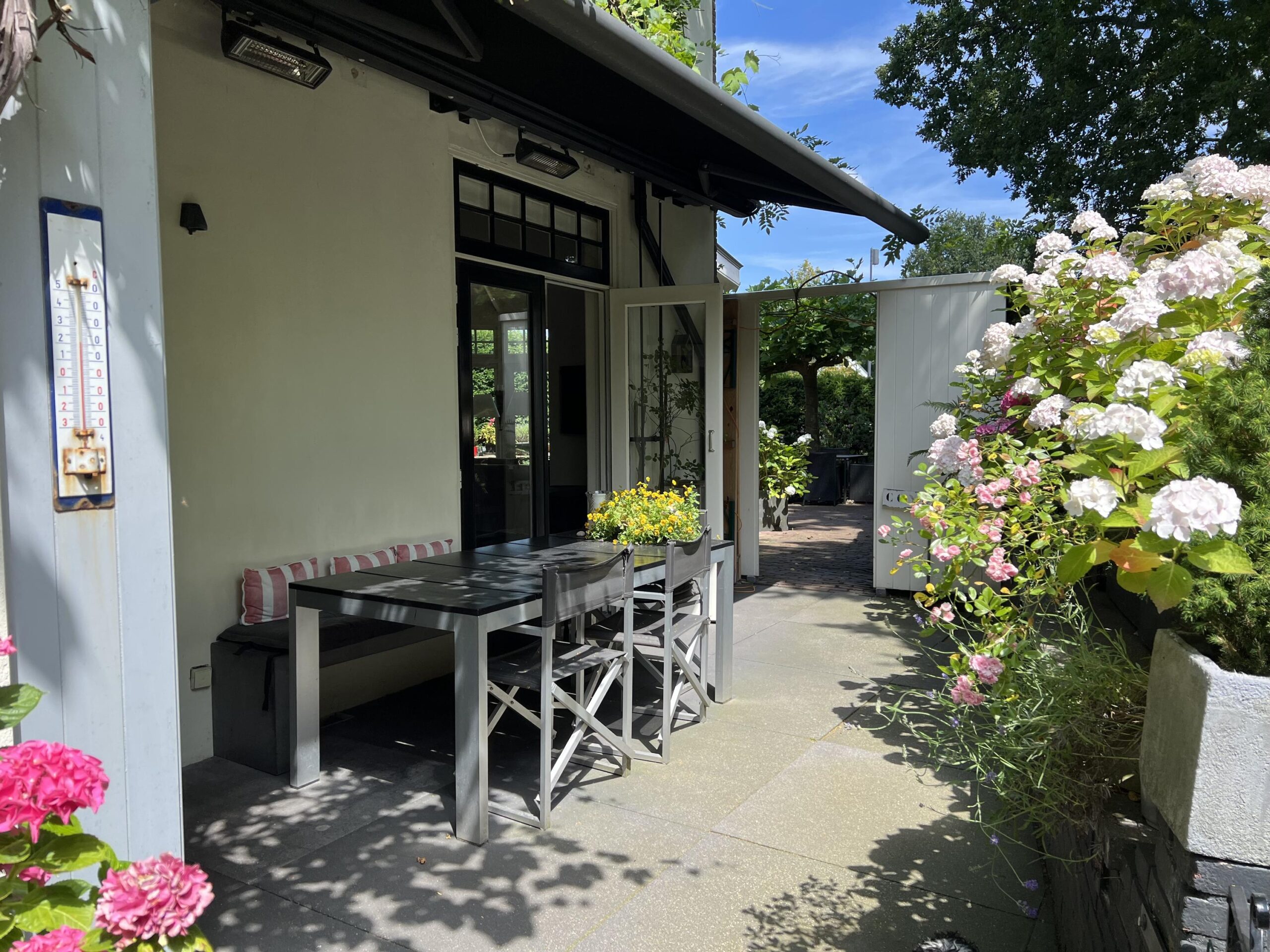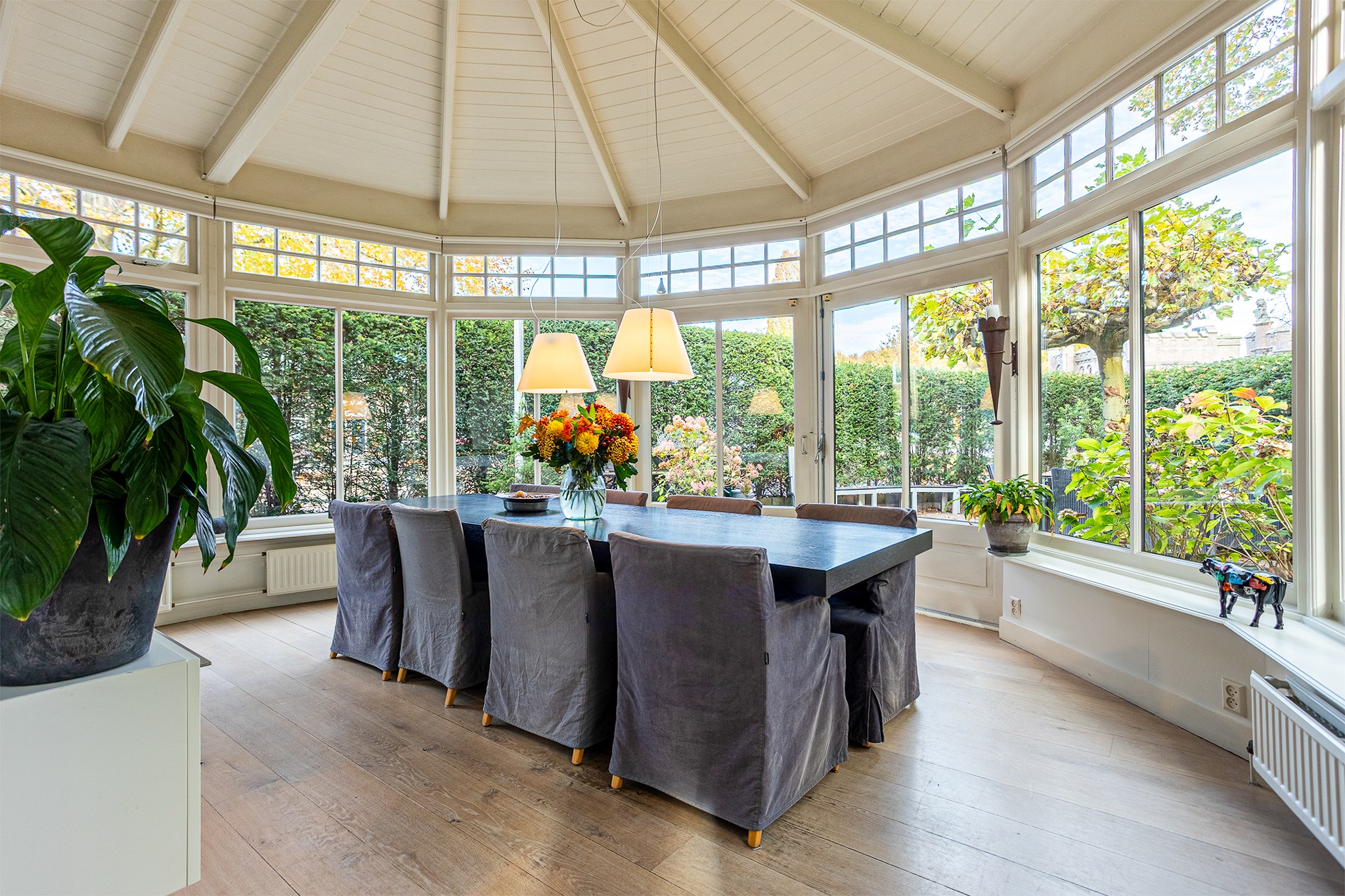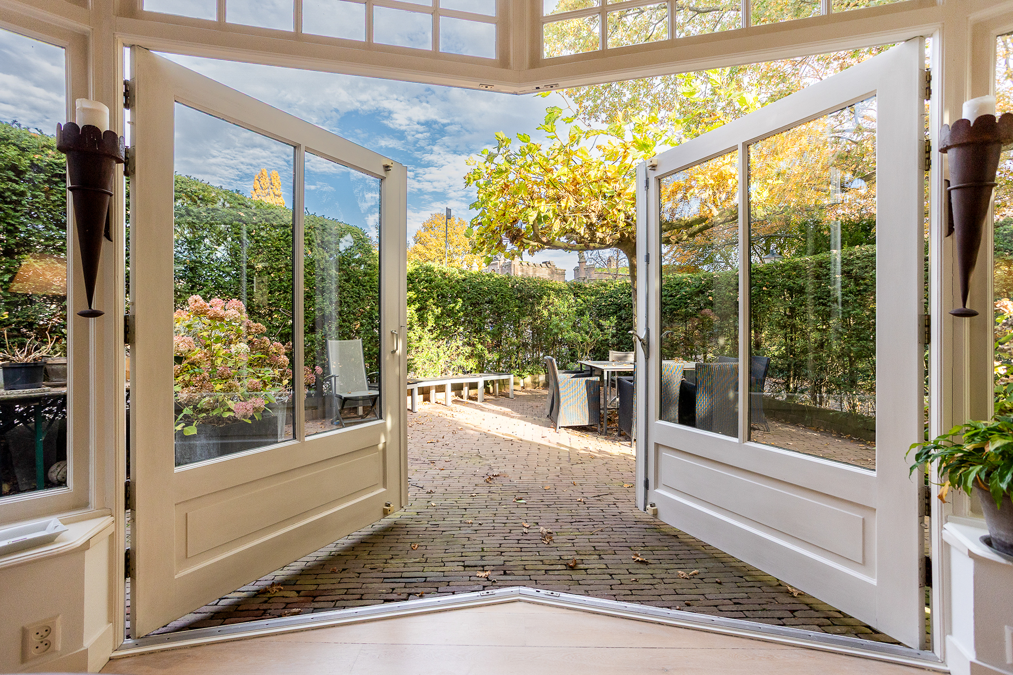 - Sfeervolle serre met openslaande deuren naar de tuin.