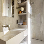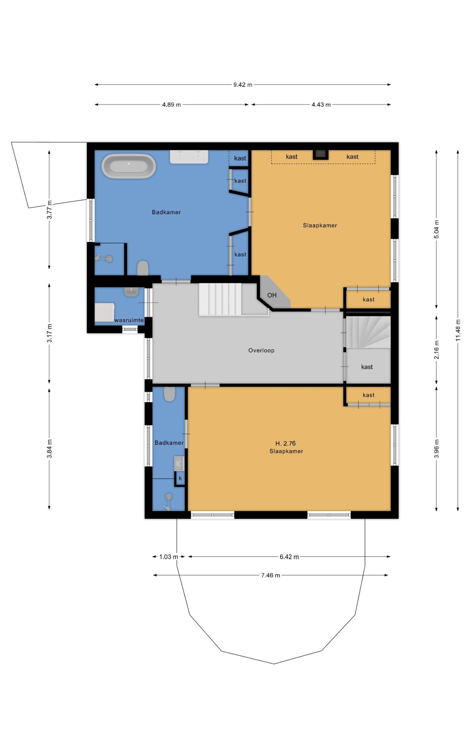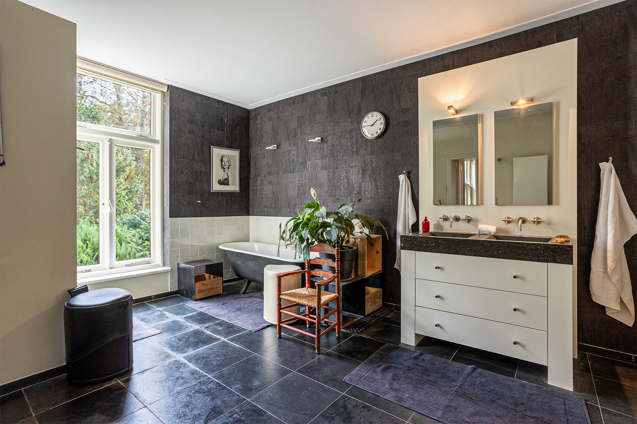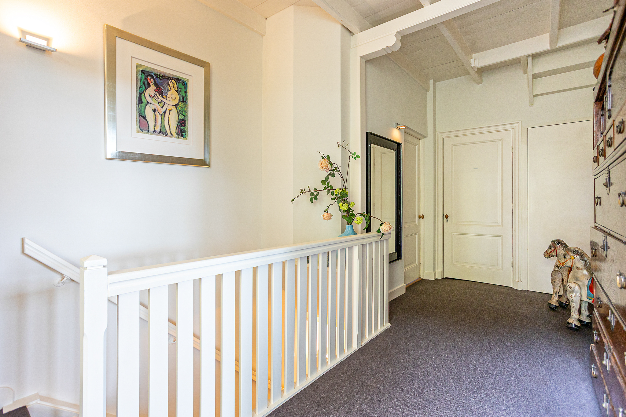 Ruime overloop met aan beide zijden ruime slaapkamers met eigen badkamer en een aparte wasruimte. Aan de rechterzijde ligt de master bedroom die bereikbaar is via de royale badkamer voorzien van douche, dubbele wastafel, vaste kasten en een vrijstaand ligbad. De slaapkamer is voorzien van diverse vaste kasten en kan eventueel weer via een aparte deur toegang bieden naar de overloop. Aan de linkerzijde ligt eveneens een bijzonder ruime slaapkamer met eigen badkamer voorzien van wc, wastafel en douche. Net als op de begane grond valt ook hier de plafondhoogte op van maar liefst circa 2,8 meter!
