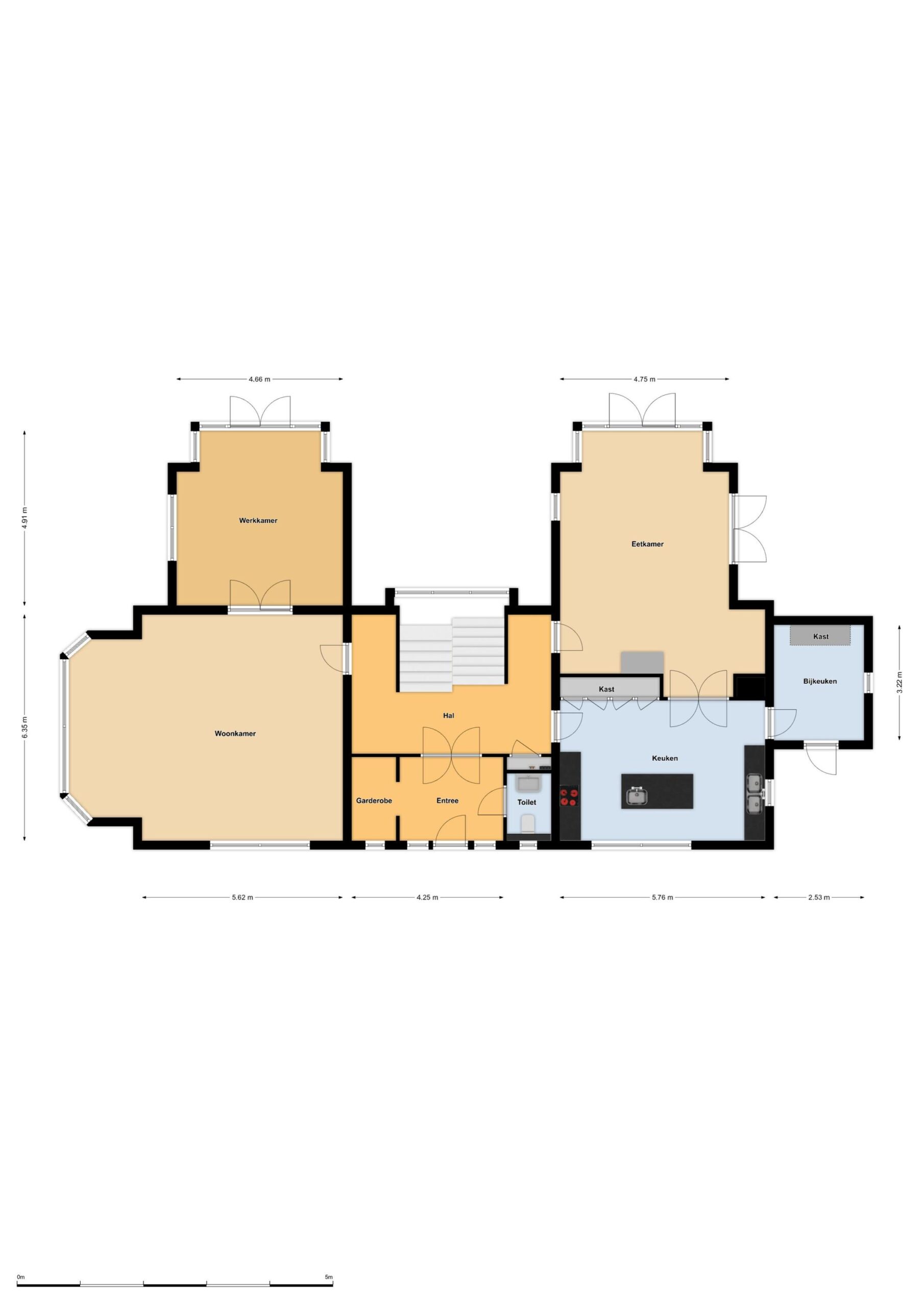 Door de bewuste keuze om geen wasted space te hebben én door de diverse woonfuncties onderling ook nog eens logisch met elkaar te laten communiceren, houdt dit huis uw gezin – zoals de eigenaar zegt – ‘op een organische manier bij elkaar’. Ja, je kunt je ergens terugtrekken, maar er is vooral ook verbinding. ‘Overdag trekt iedereen eigenlijk richting de keuken en eetkamer, terwijl we ’s avonds naar de andere kant verhuizen. ’ Het warme, persoonlijke karakter van dit huis blijkt niet alleen uit de lay-out, maar ook uit de gekozen materialen: hier is niks ‘standaard’. Mogen wij u even wijzen op de kozijnen? Massief mahonie. Deurlijsten in de entree? Marmer. Die trap, die zich als een lint van hout, glas en staal omhoog wikkelt door de verdiepingen? Ieder detail in de afwerking opnoemen gaat hier te ver, maar neemt u van ons aan: dit huis kent haast zijn gelijke niet. Uiteraard zit het met de technische snufjes ook helemaal goed: een muziekinstallatie is mogelijk door het gehele huis, er zijn ruim voldoende televisie aansluitingen en met een domotica-installatie bedient u de lichtsettings. Alle technische installaties hebben verdeelinrichtingen op elke verdieping, zodat u overal gemakkelijk bij kunt.
