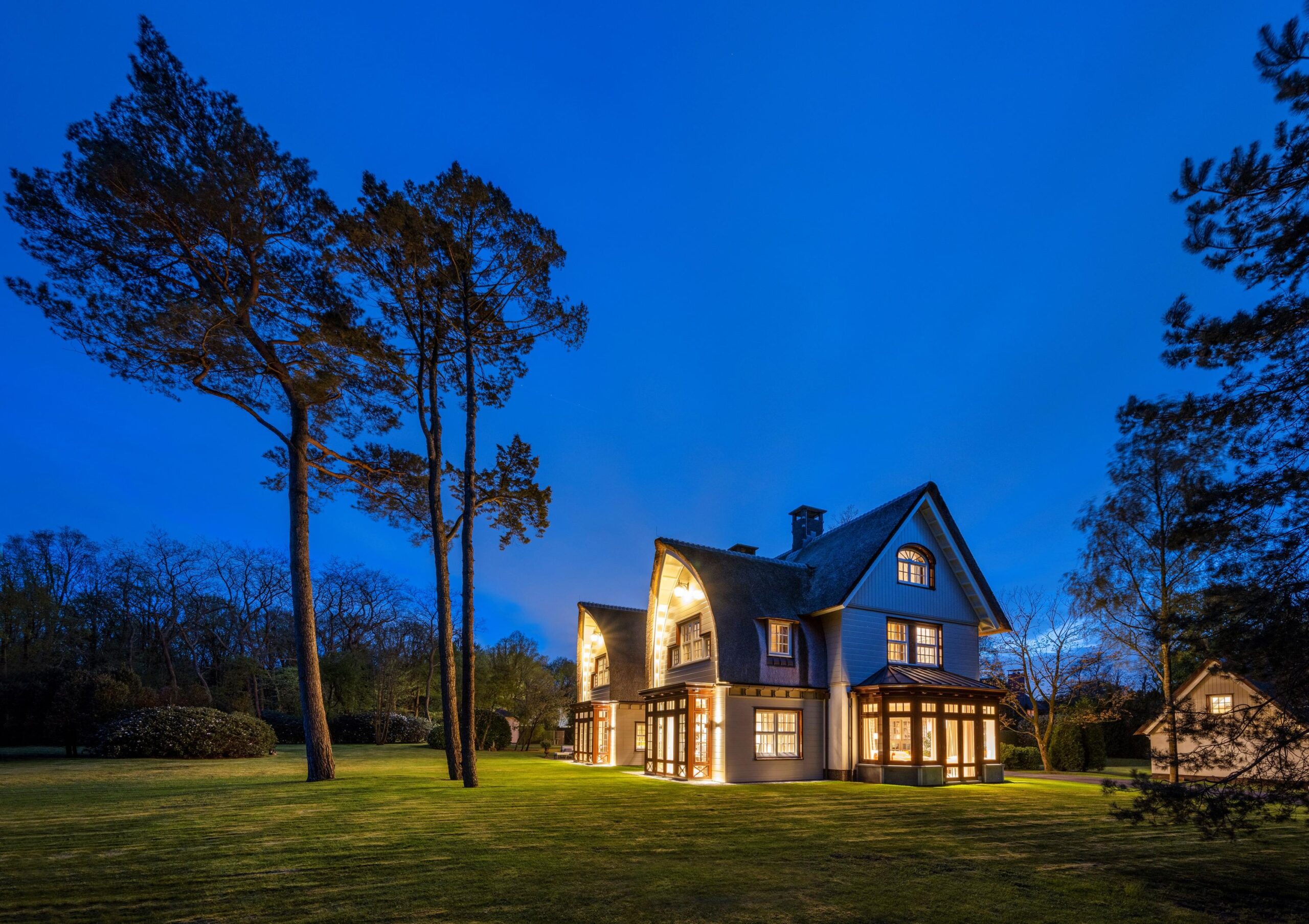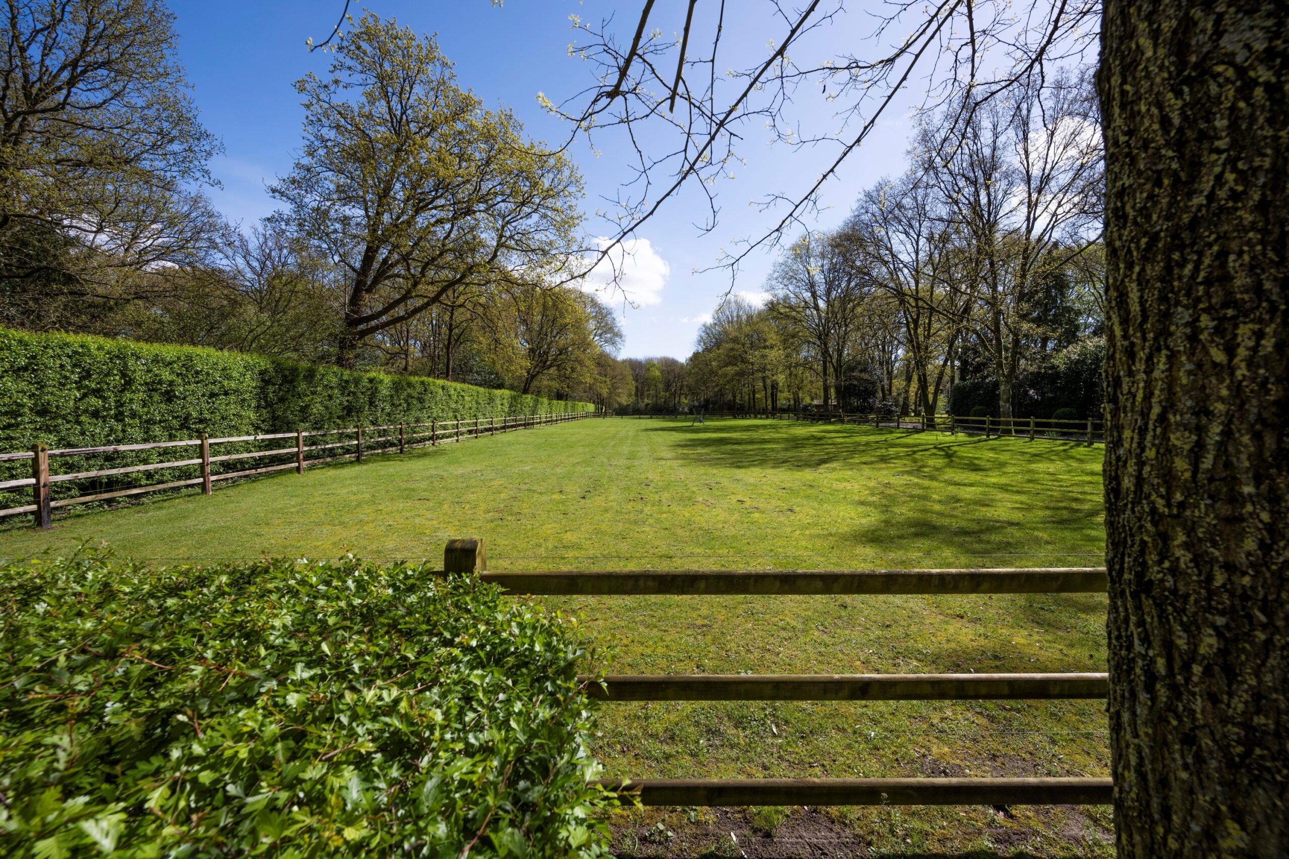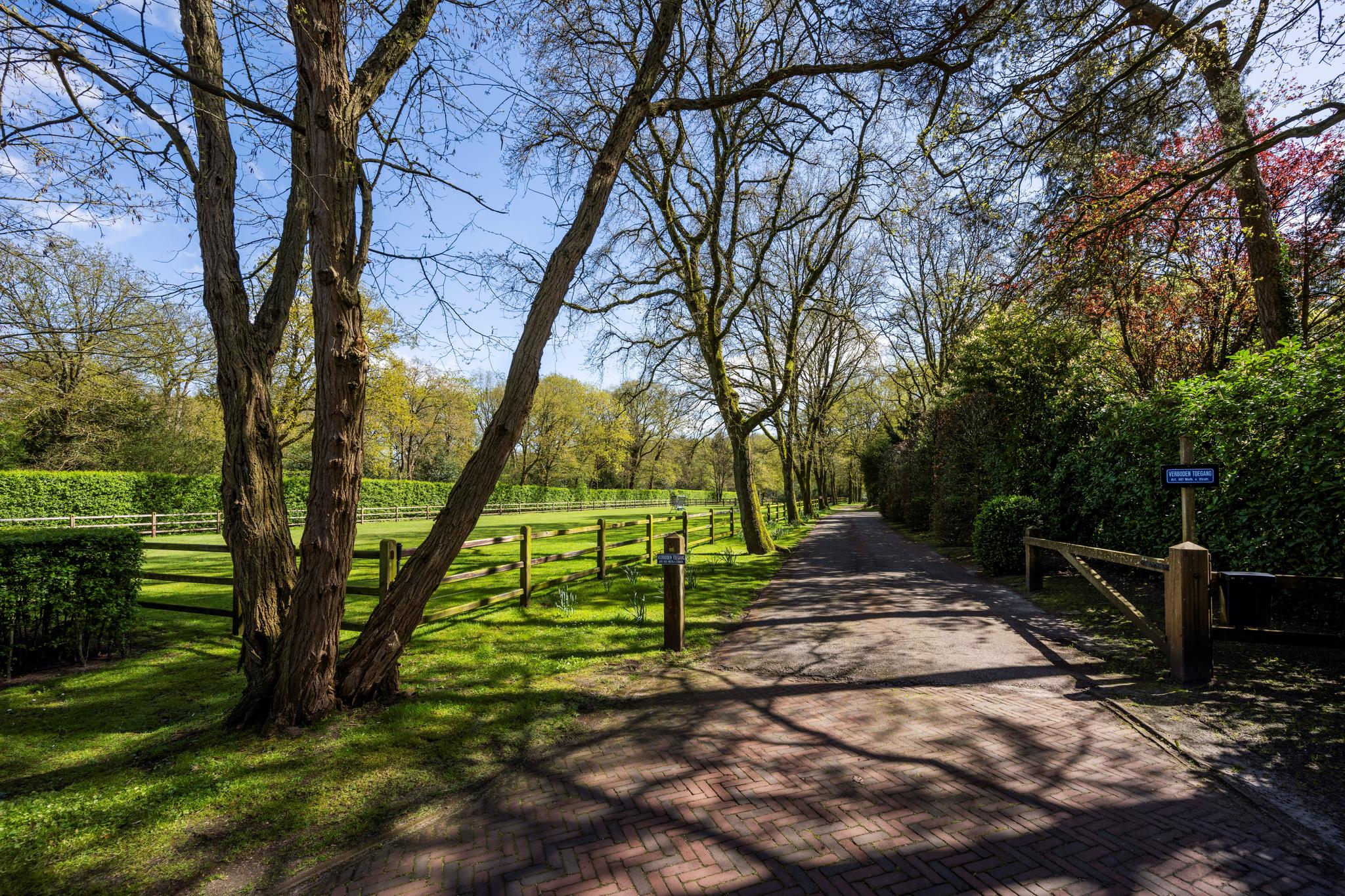 U hebt geen inkijk vanaf de straat. Niemand ziet u hier wonen. Sterker nog, u zult regelmatig uit moeten leggen waar u precies te vinden bent. Wie de ingang gevonden heeft, heeft nog een oprijlaan van zo’n 150 meter te gaan voor hij bij de voordeur is – dus ‘privacy’ heeft u hier in overvloed – maar rijdt dan wel door een prachtig park waar de nieuwe aanplant is gekozen uit de soorten die aansluiten bij de natuur op het perceel en eromheen, denk aan imposante beuken, eiken, berken, vliegdennen, lariksen en taxussen.