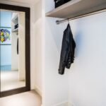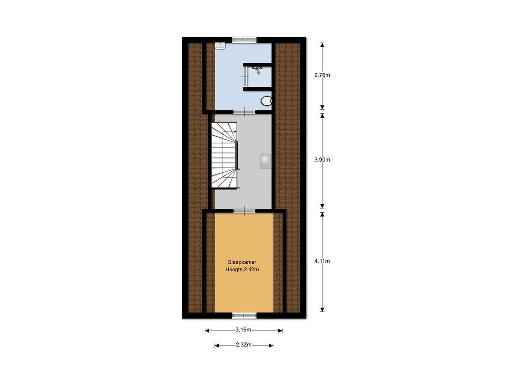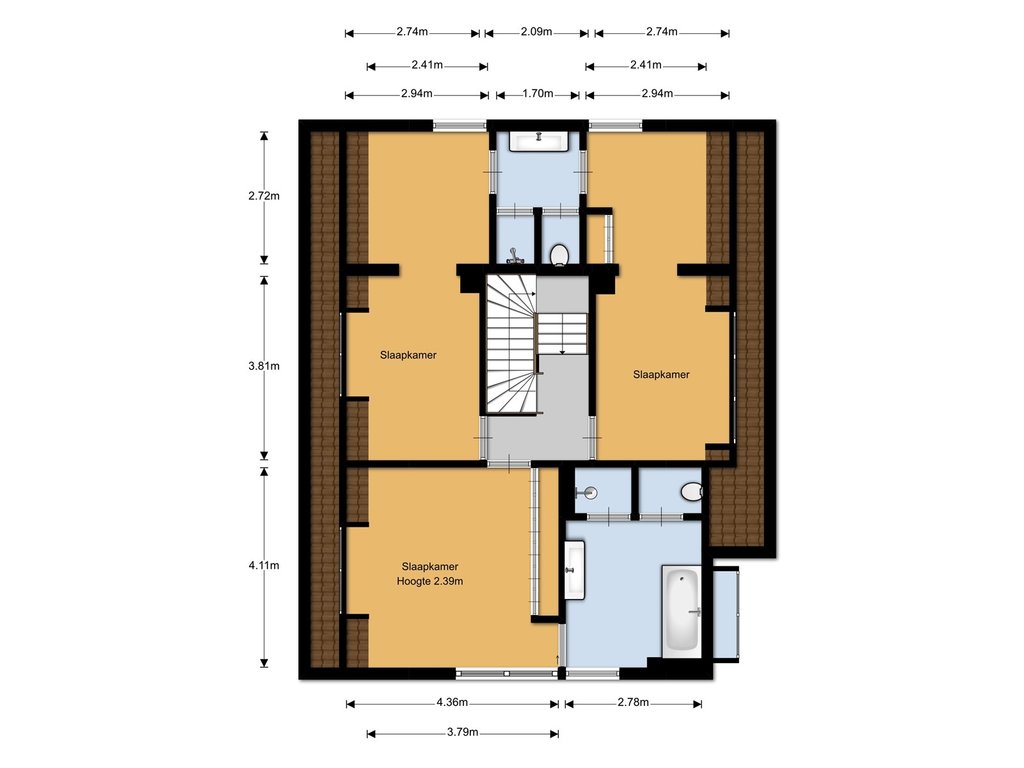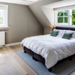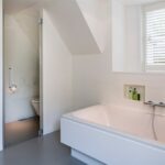 Overloop, 4e slaapkamer en 3e badkamer met douche, toilet, wastafel en vloerverwarming.