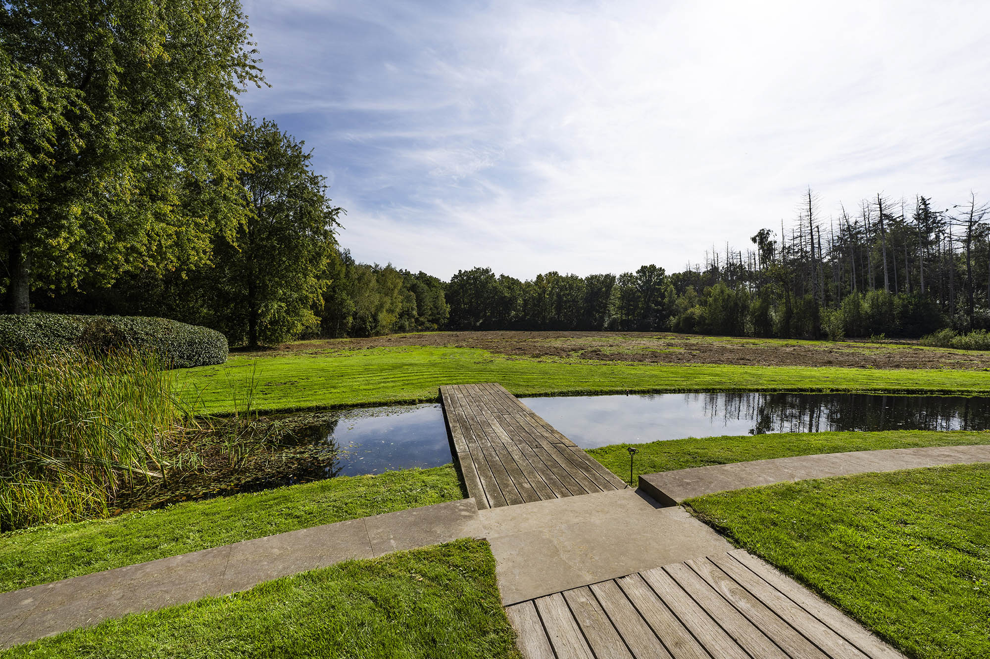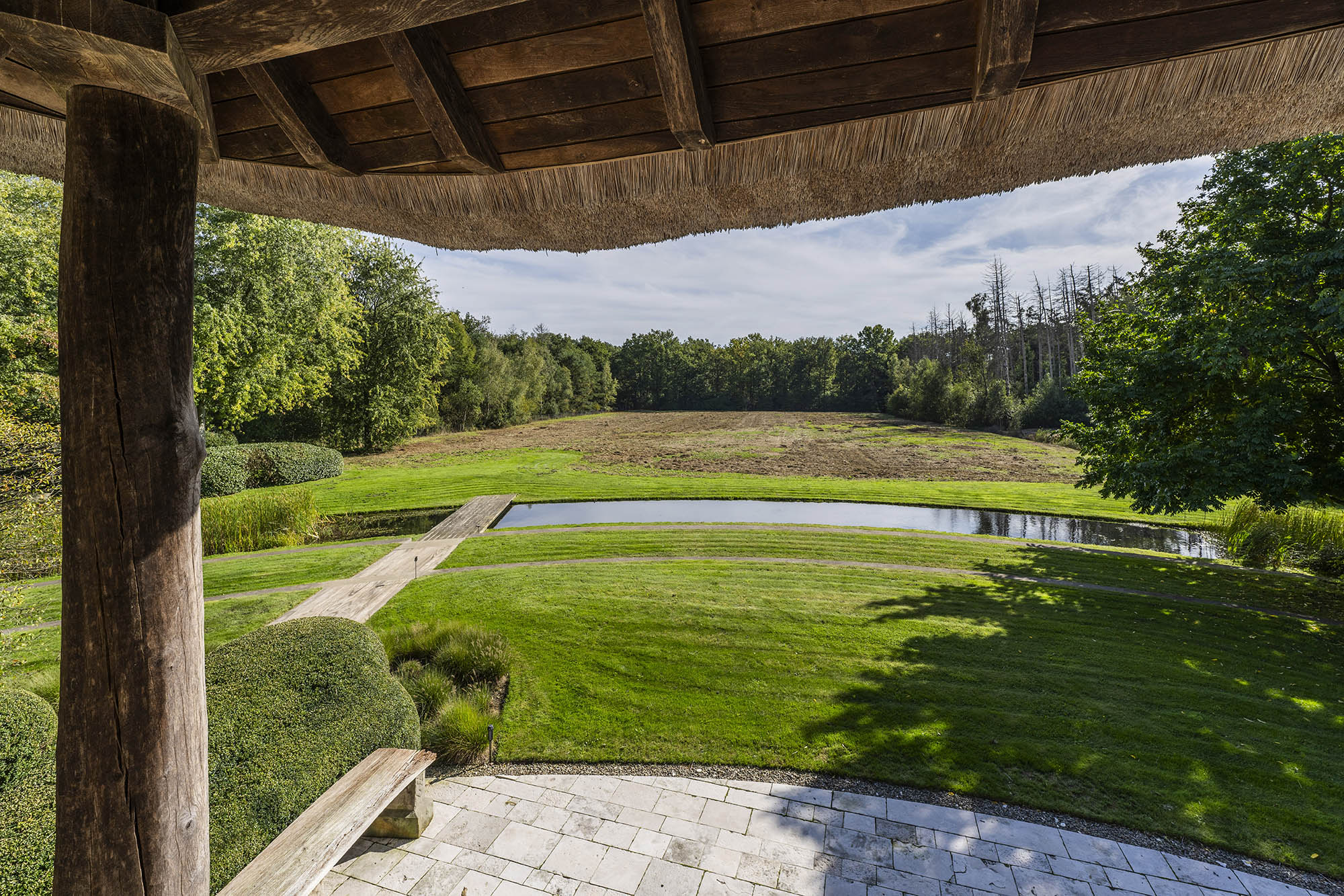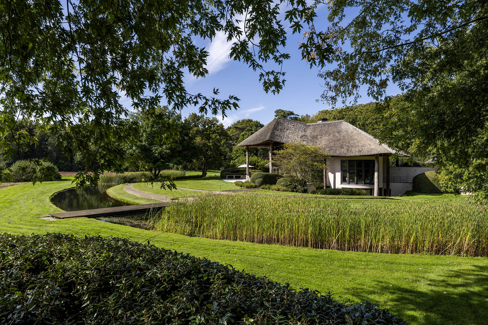 Het landhuis, met een woonoppervlakte van circa 945 m², is een toonbeeld van ambacht en verfijning. De Belgische tuinarchitect Guy Stockmans ontwierp de tuin als een vanzelfsprekende voortzetting van de architectuur.…