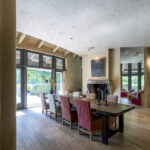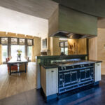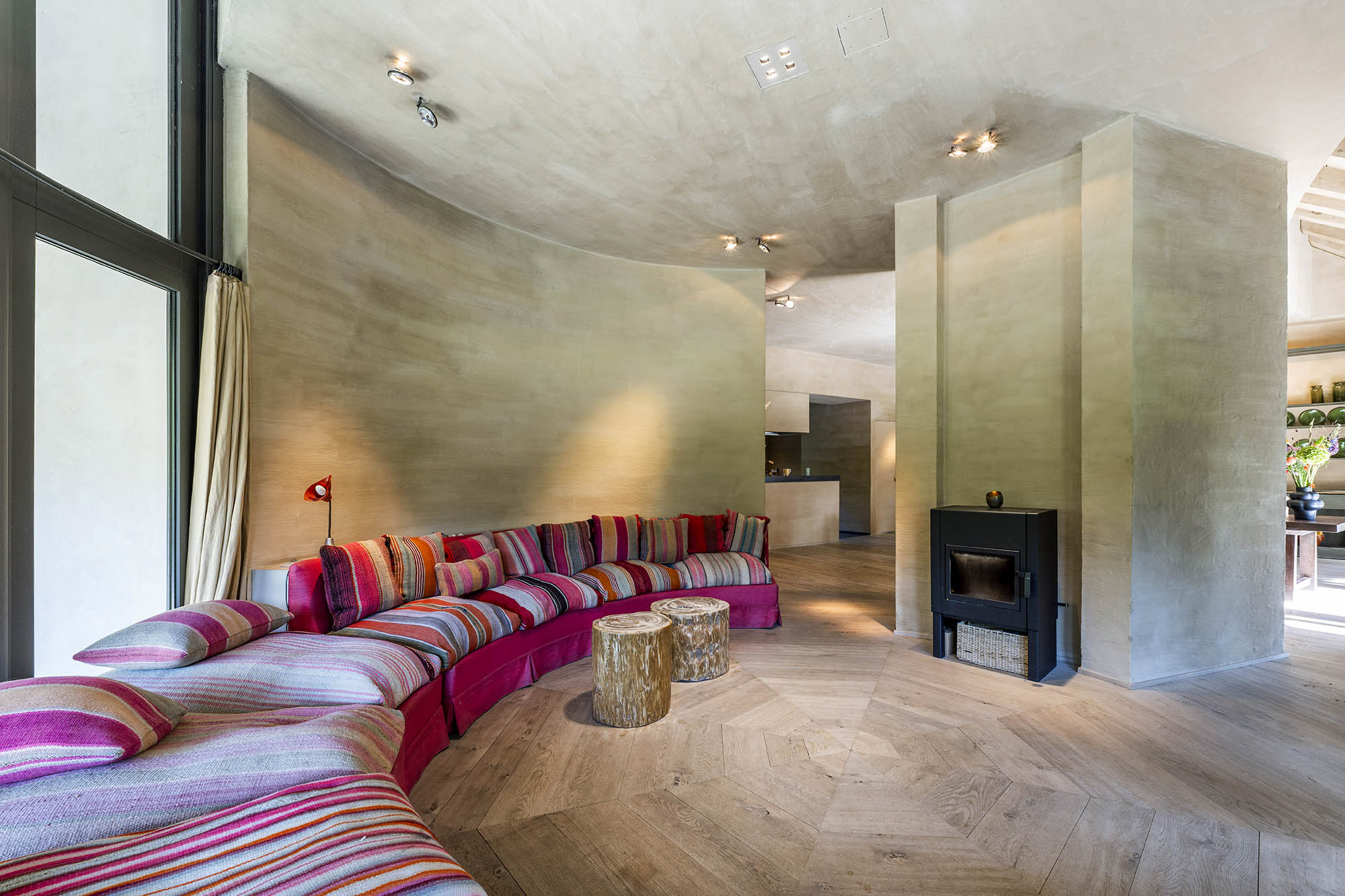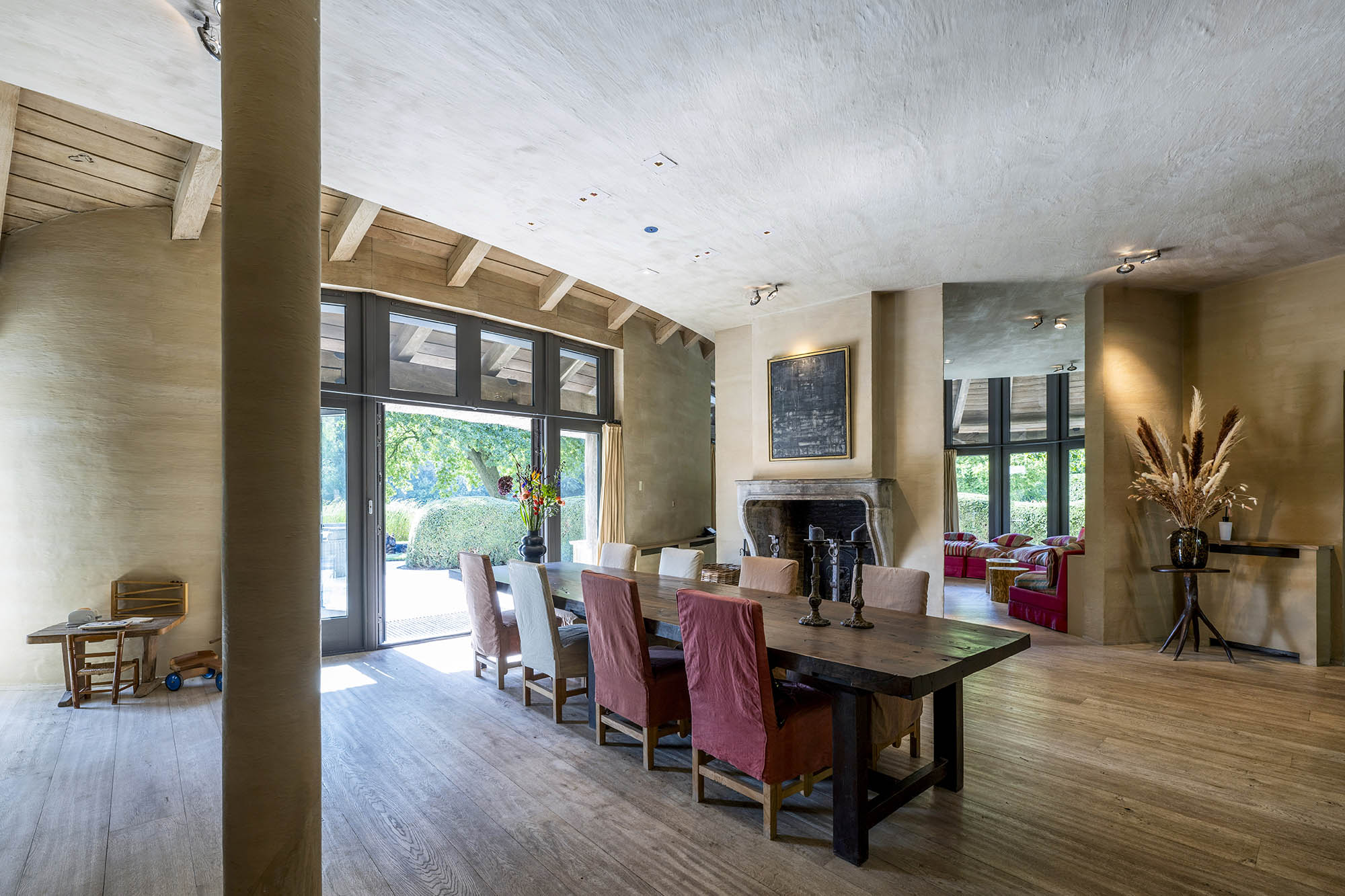 De woonvertrekken ademen een sfeer van ingetogen luxe. Aan de zuidzijde bevinden zich de eetkamer, zitkamer en keuken, alle met openslaande deuren naar het terras. De keuken is een droom voor iedere kookliefhebber: voorzien van een dubbel La Cornue-fornuis en apparatuur van Miele, slim gepositioneerd zodat contact met gasten behouden blijft. In de zomer lopen de diners moeiteloos over in avonden op het terras; in de winter is het binnen behaaglijk bij de open haard.