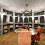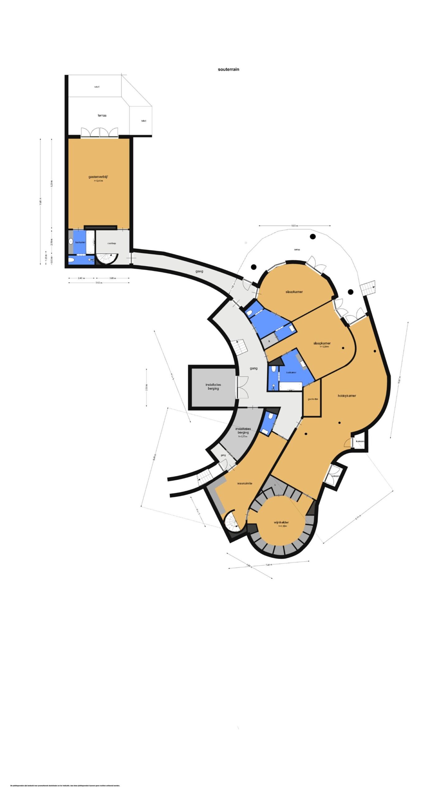 Het souterrain biedt ruimte aan twee extra suites, een bioscoop, bar, wijnkelder, wasruimte en technische voorzieningen. Dankzij de glooiende taluds valt er ook hier royaal daglicht binnen. Via een ondergrondse gang bereikt u het koetshuis, dat fungeert als gastenverblijf of kantoor. Deze zelfstandige woning heeft een eigen woonkamer met open haard, keuken, slaapkamer en badkamer, ideaal voor gasten, familie of werk aan huis.