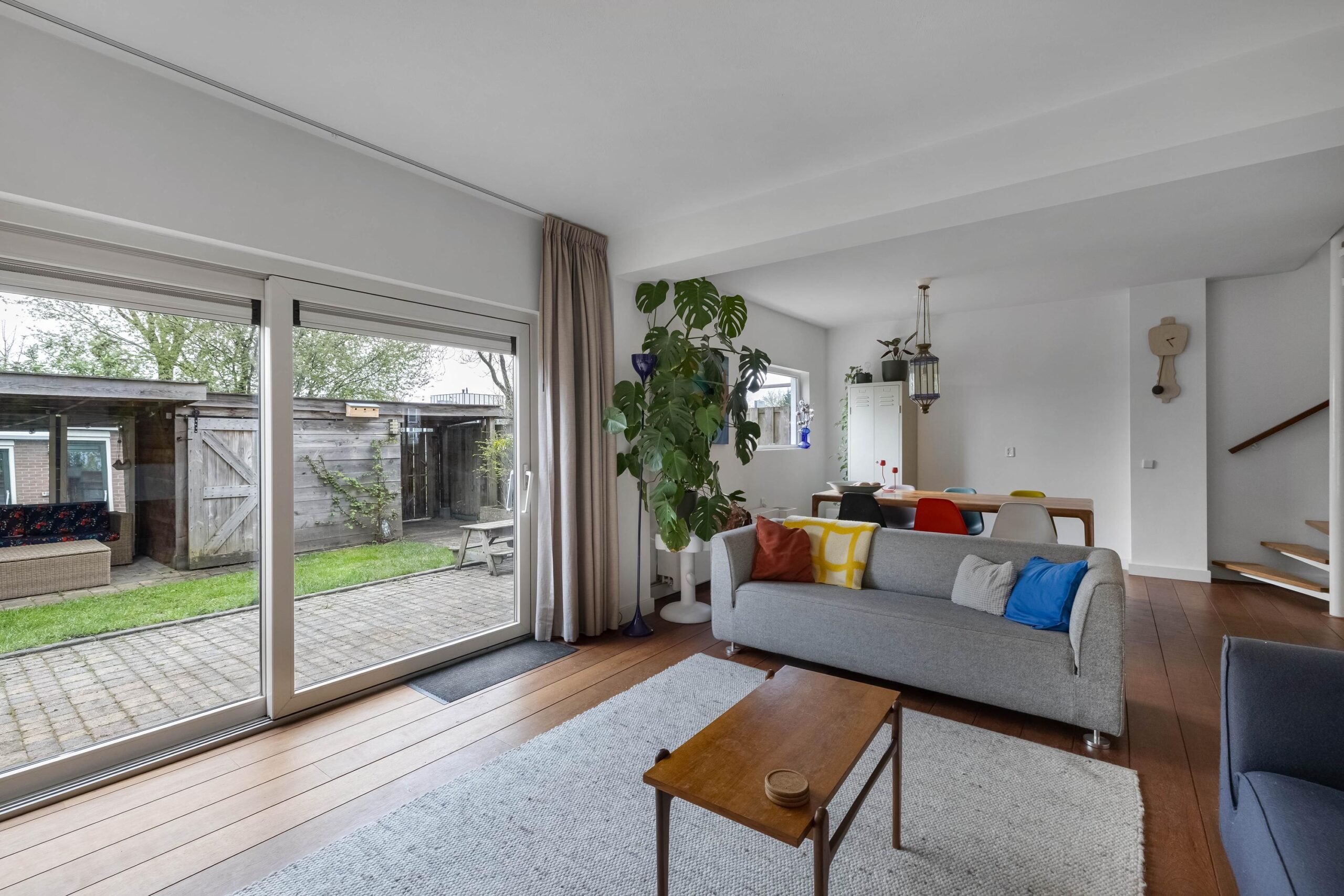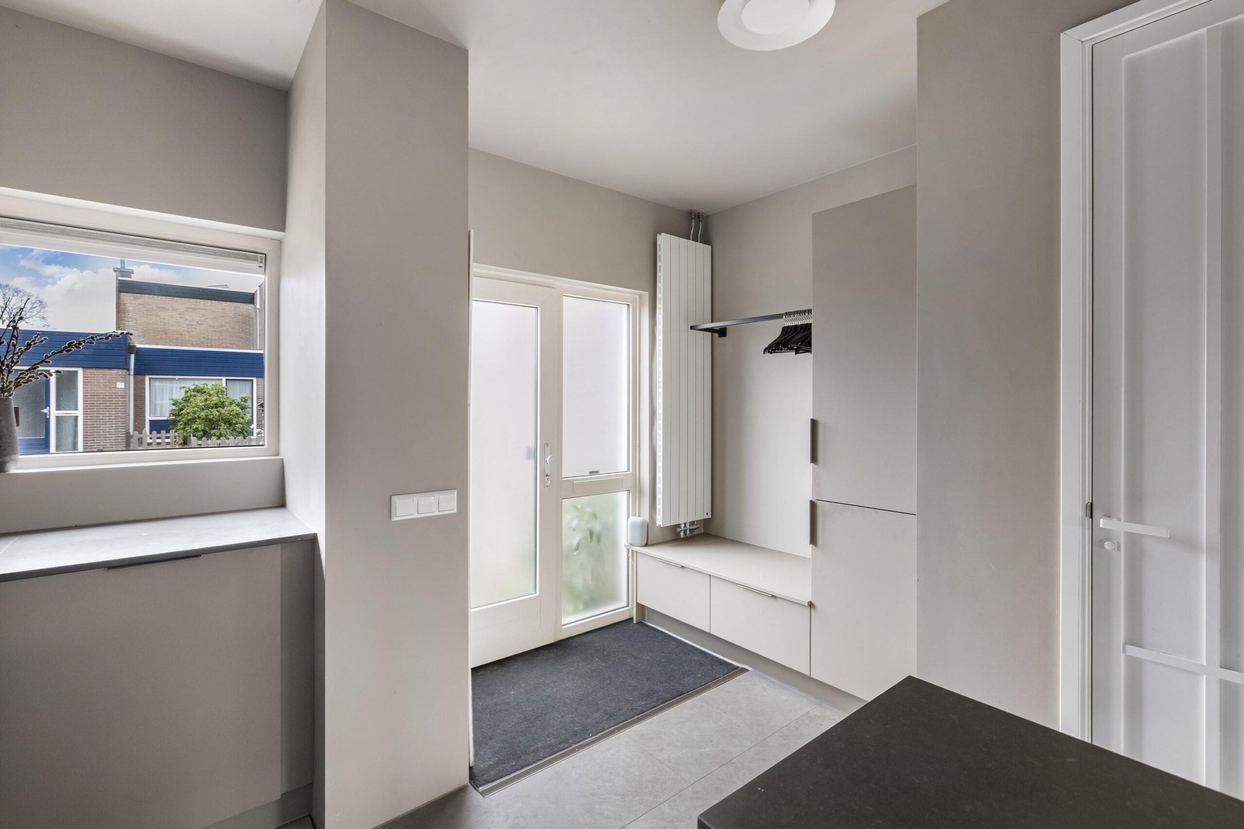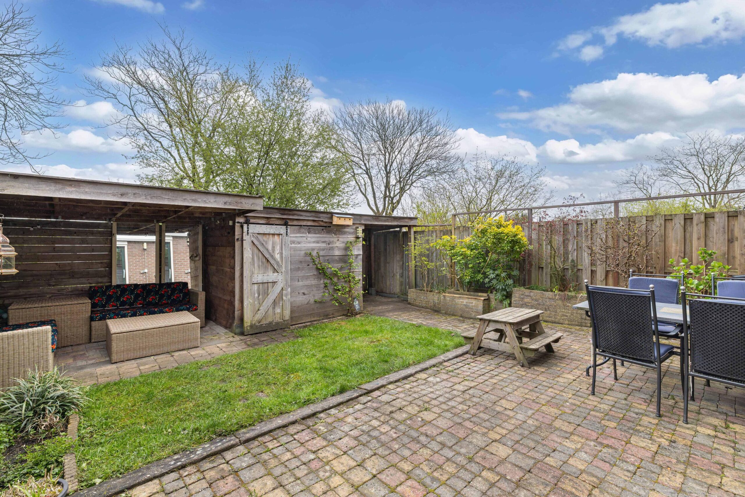 Entree, hal met meterkast en toilet. Aan de voorzijde bevindt zich de moderne keuken, voorzien van diverse inbouwapparatuur. De ruime en lichte woonkamer aan de achterzijde is afgewerkt met een fraaie houten vloer en beschikt over een schuifpui naar de tuin, wat zorgt voor veel lichtinval en een prettige verbinding met buiten. De achtertuin biedt daarbij veel privacy en is gelegen op het zuidoosten. In de tuin bevindt zich een praktische overkapping en een externe berging.