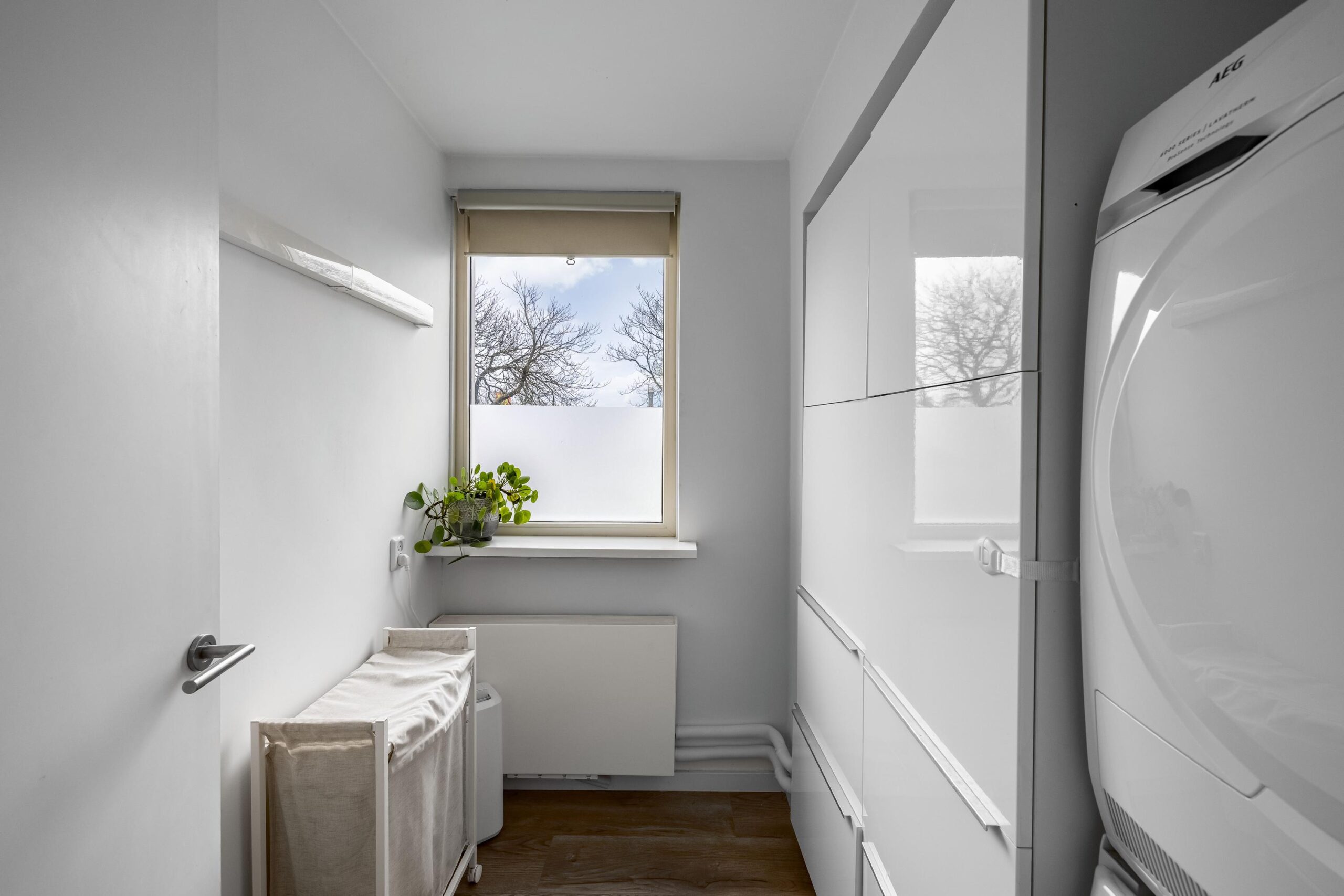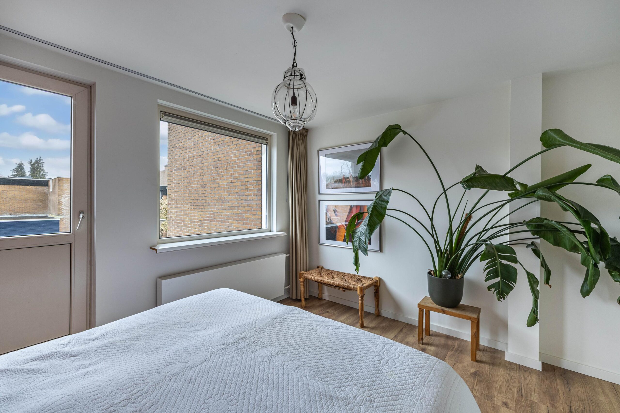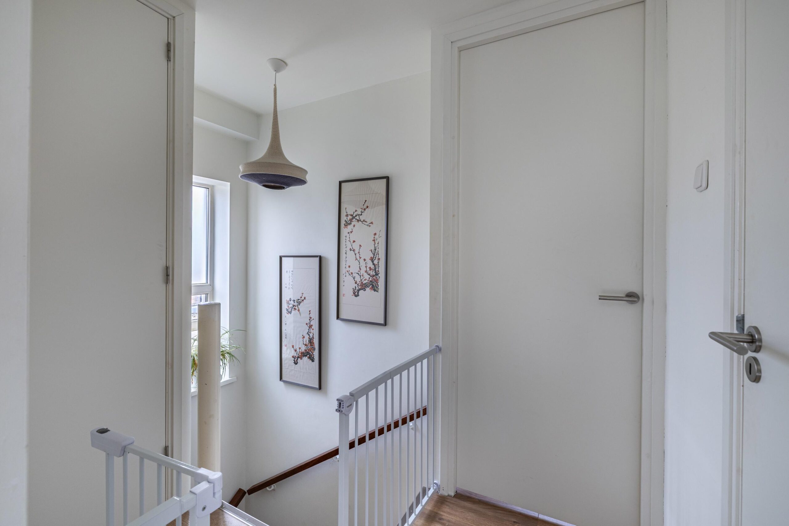 Overloop met opstelling voor de cv-installatie en bergruimte, alsmede twee ruime slaapkamers. Tevens toegang tot het ruime dakterras, een heerlijke extra buitenruimte.
