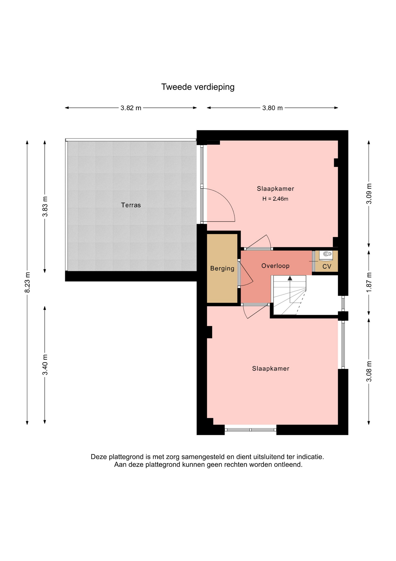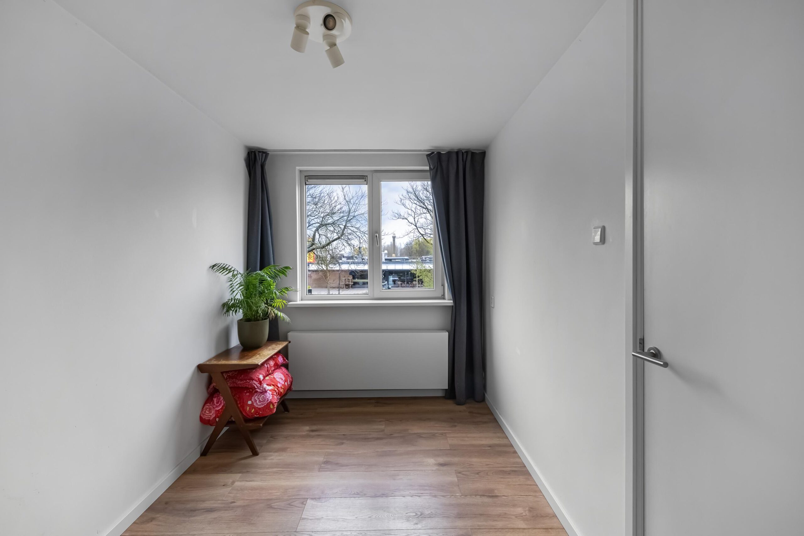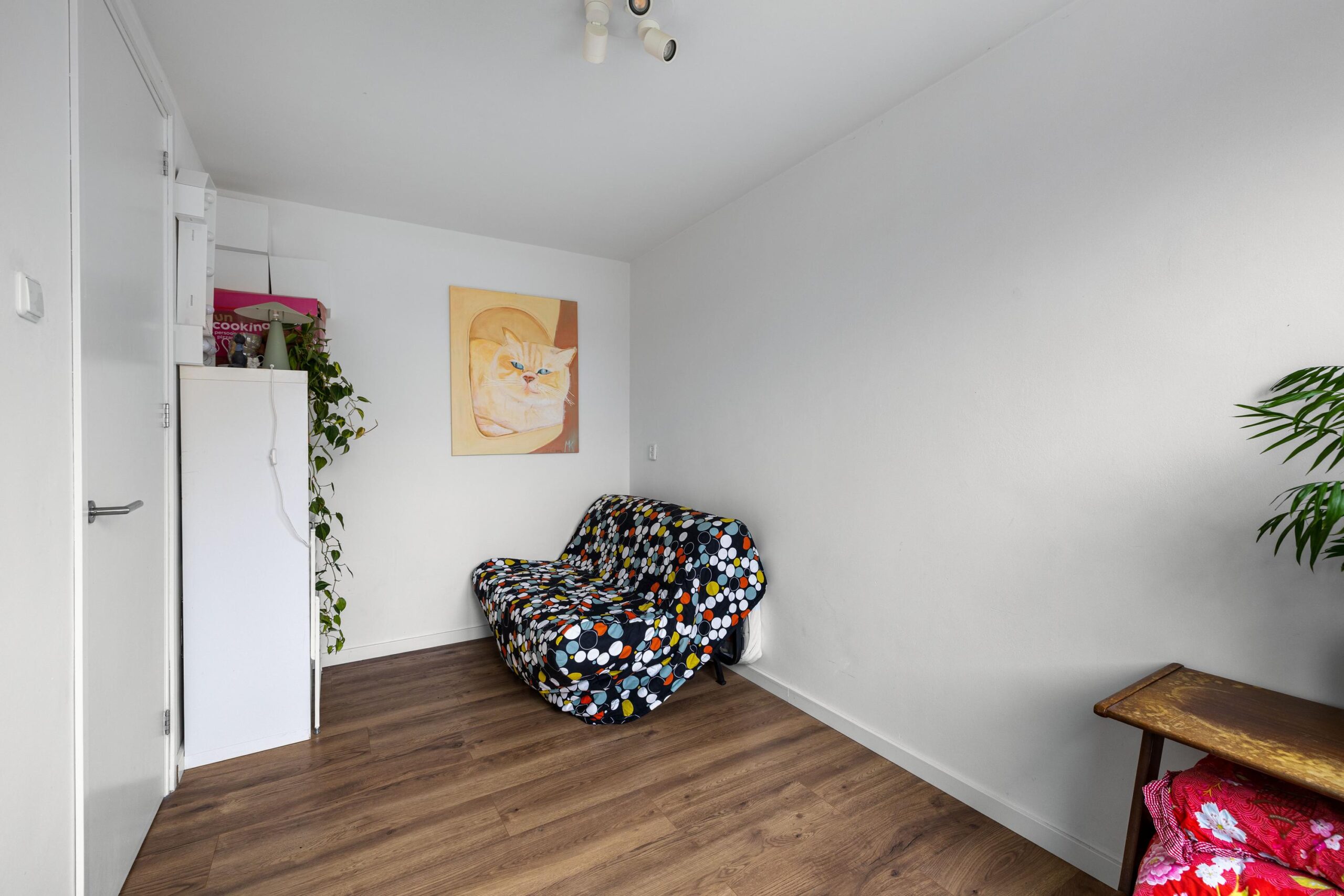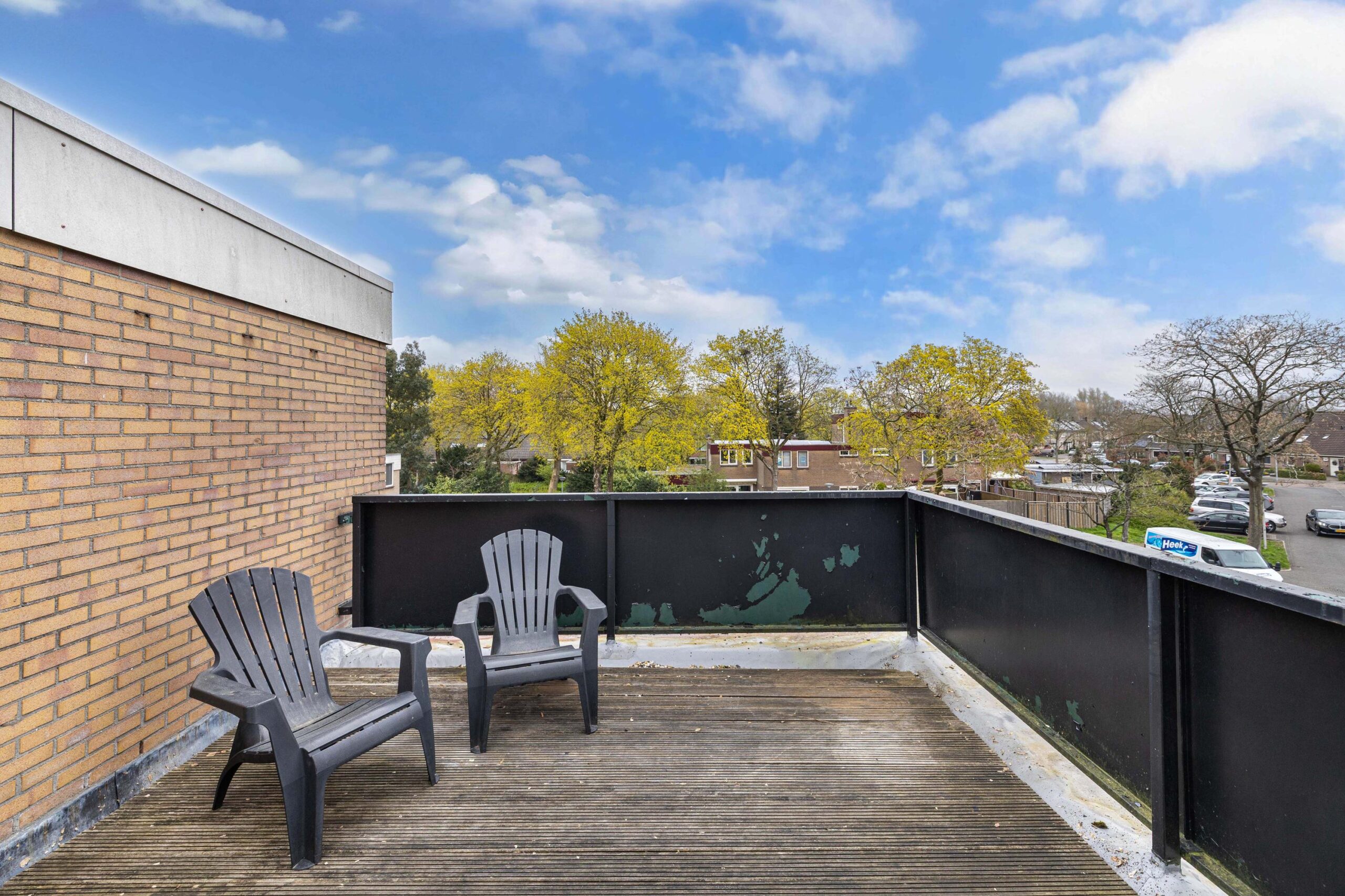 Overloop met opstelling voor de cv-installatie en bergruimte, alsmede twee ruime slaapkamers. Tevens toegang tot het ruime dakterras, een heerlijke extra buitenruimte.