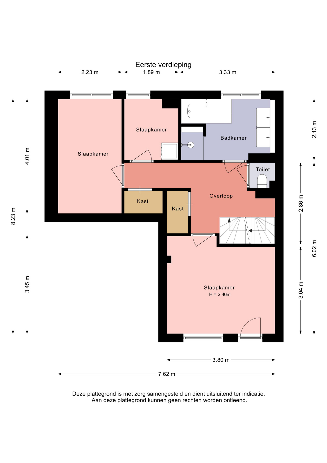 Overloop met toegang tot drie goed bemeten slaapkamers. De slaapkamer aan de voorzijde beschikt over een charmant Frans balkon. Op de overloop bevinden zich tevens handige, twee ruime bergkasten. De badkamer is uitgevoerd met een ligbad, douche, dubbele wastafel en een apart tweede toilet.