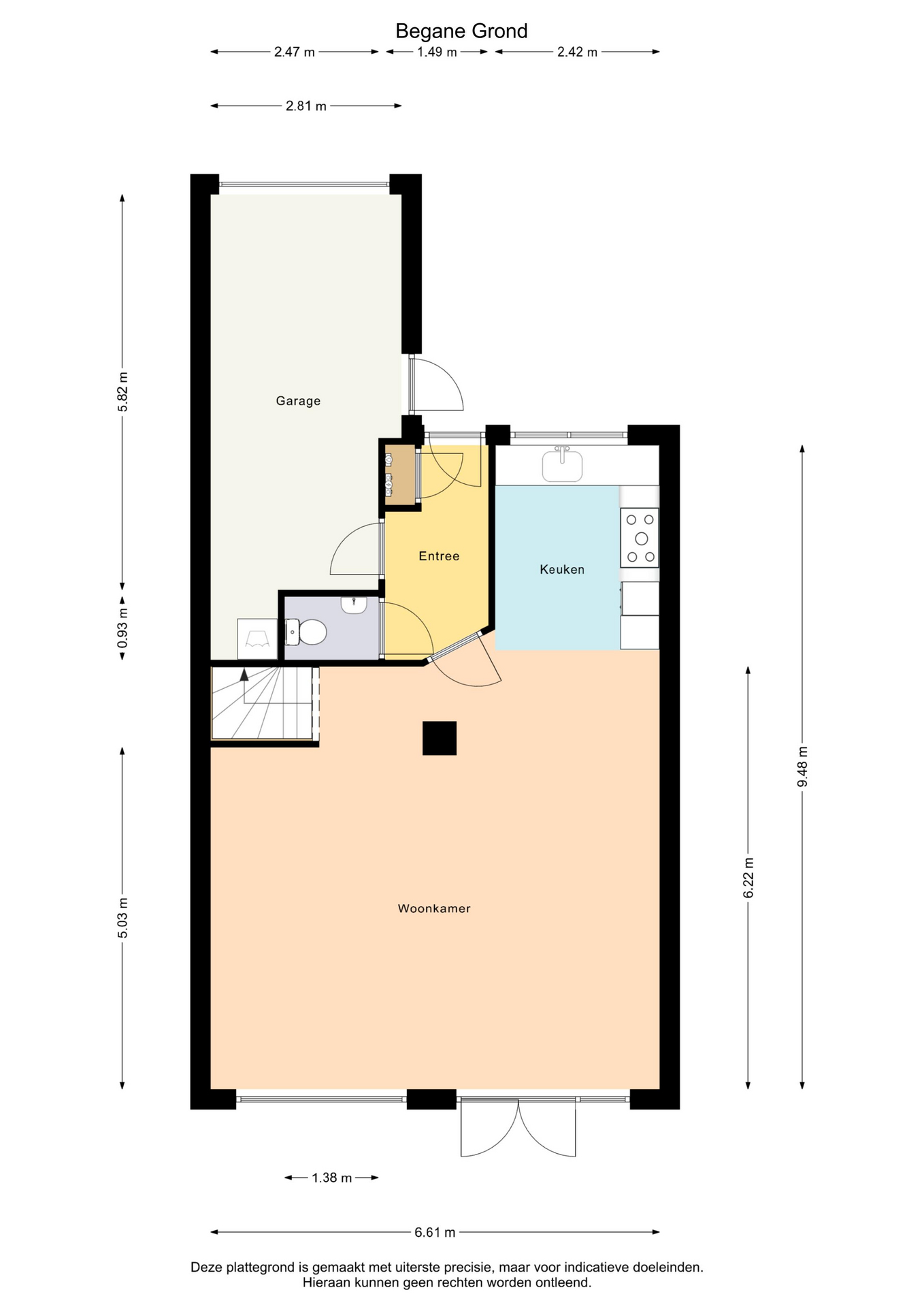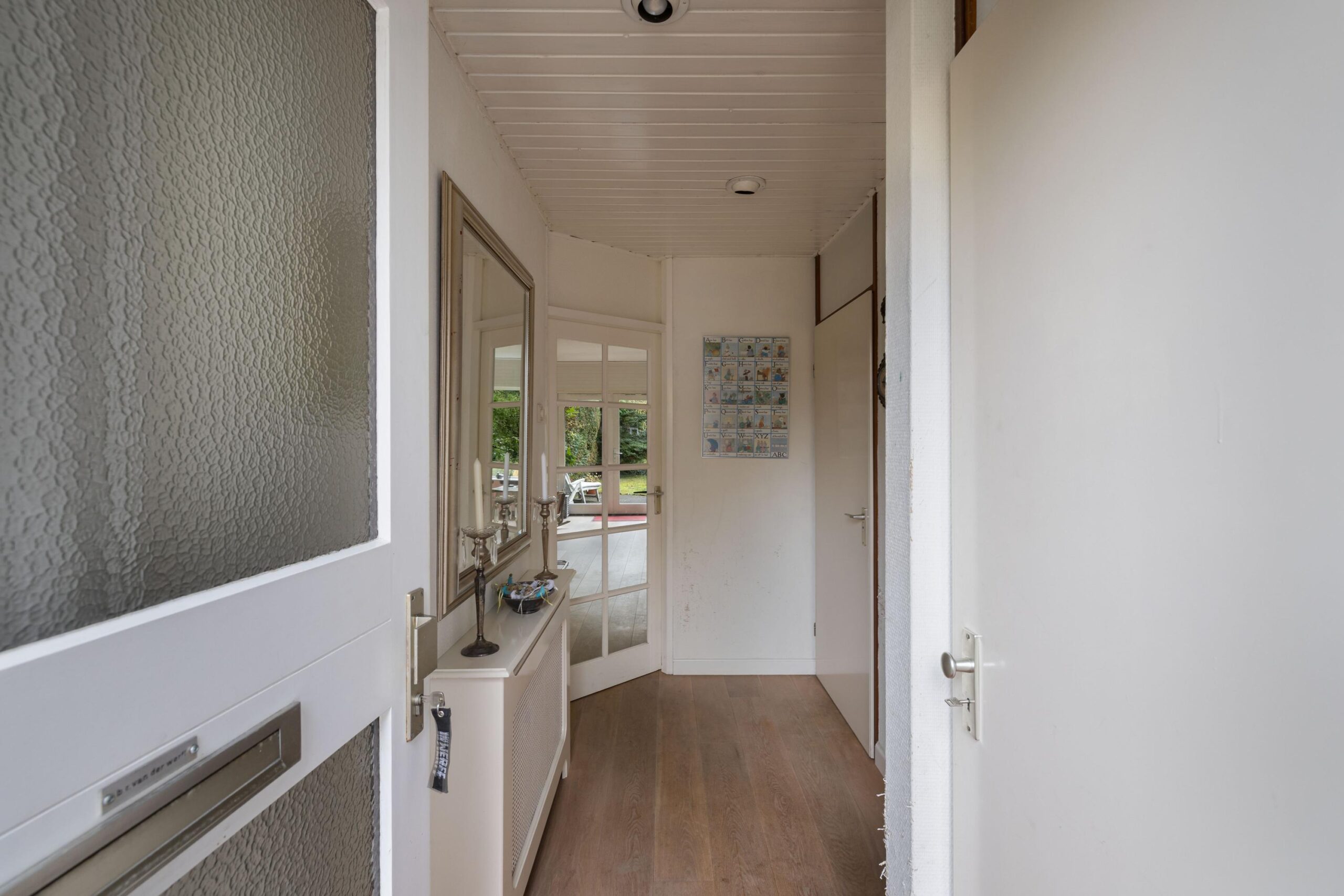 Entree, hal, toegang tot de grote garage die is voorzien van opstelling wasmachine en droger en bergmogelijkheden, toilet met fonteintje, royale tuingerichte woon/eetkamer met mogelijkheid tot open haard,
