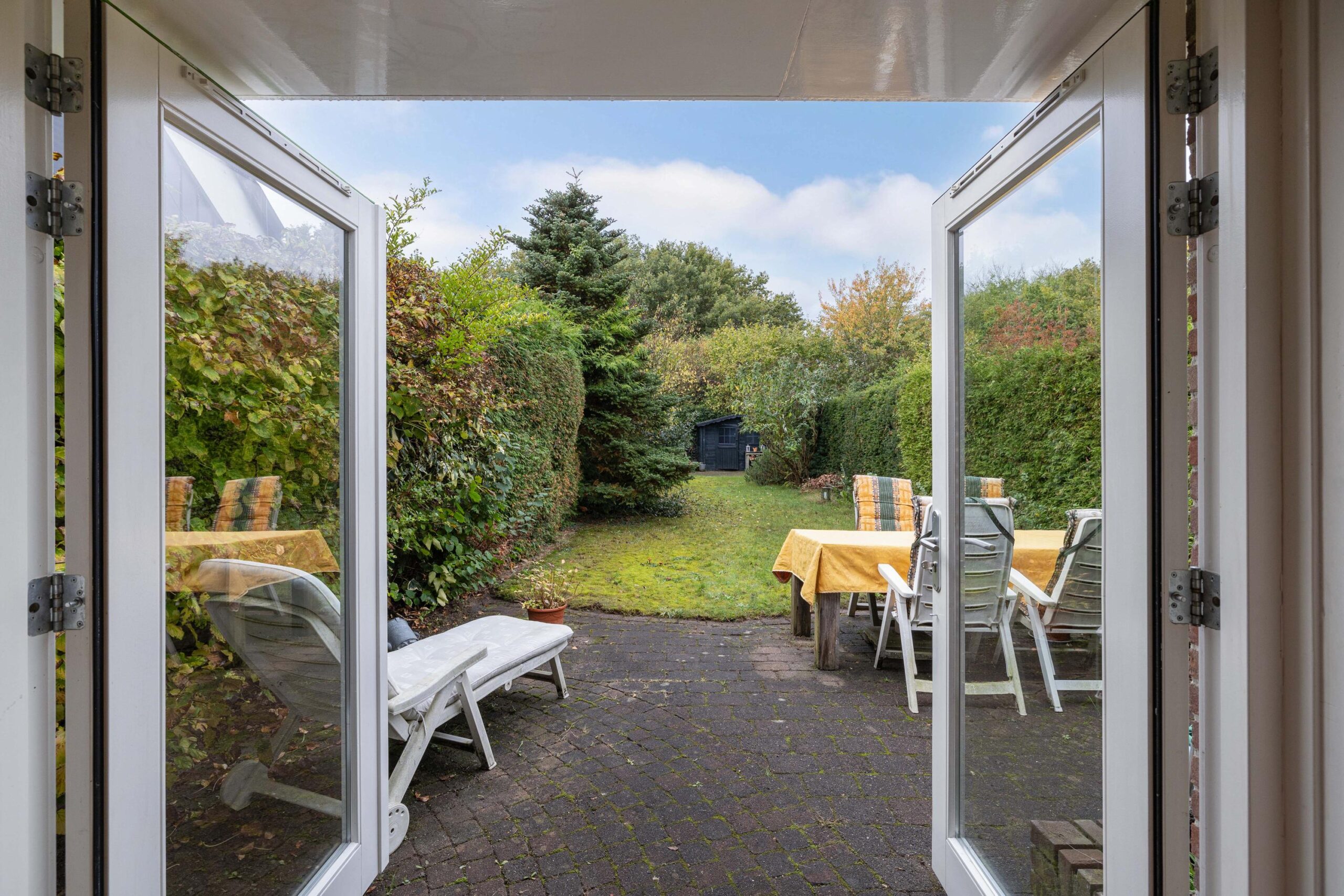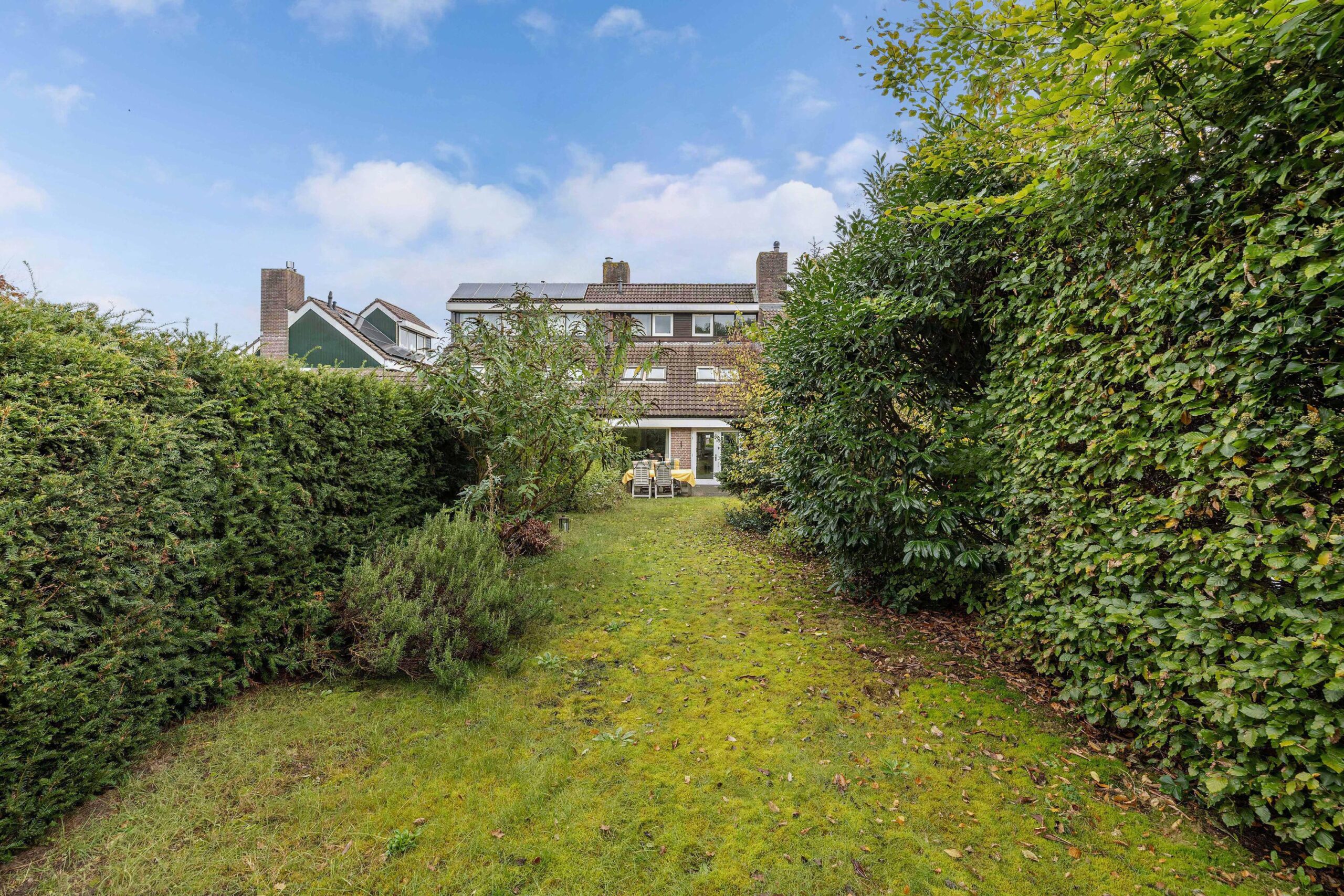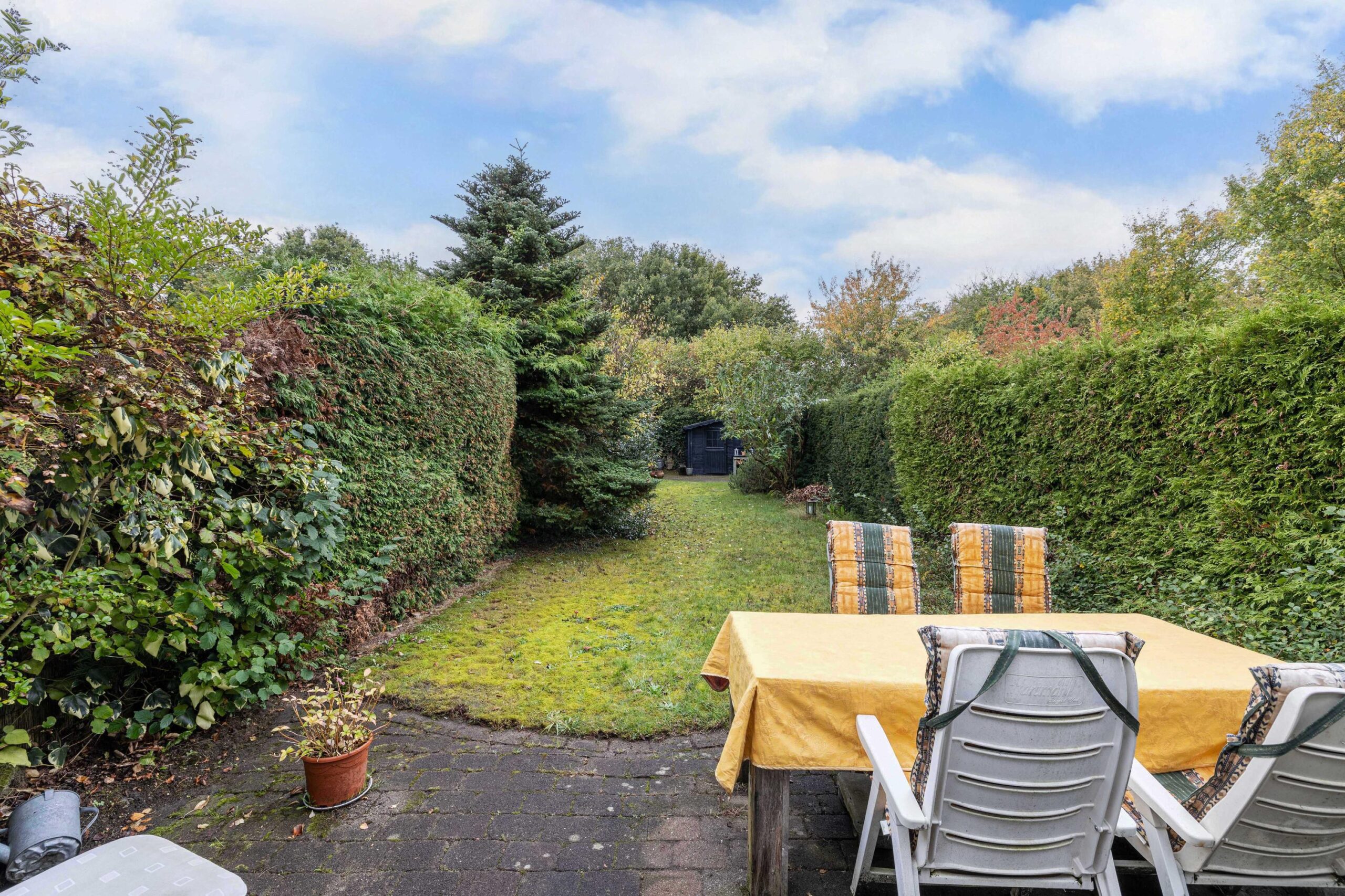 De zeer diepe achtertuin op het zonnige westen biedt veel privacy en heeft de mogelijkheid tot een achterom en meerdere terrassen.