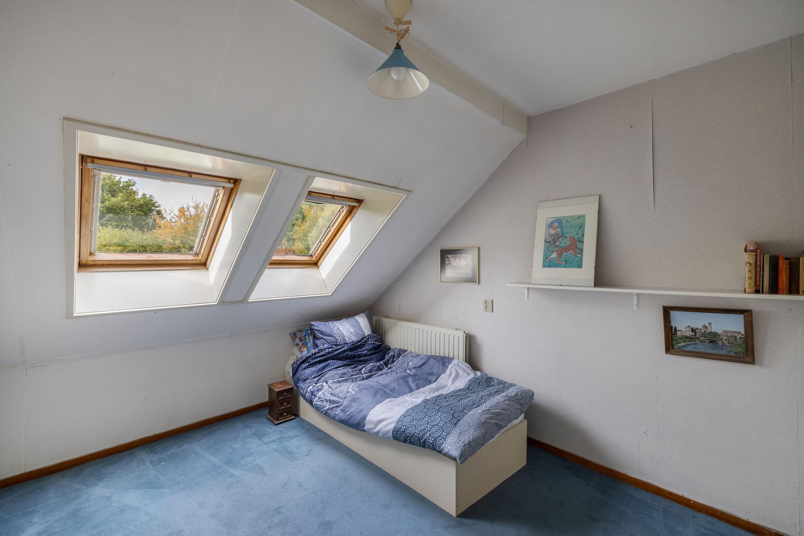 via vaste trap is de ruime vierde slaapkamer te bereiken, overloop/werkruimte met knieschotten, dakraam en stookkast met CV ketel.