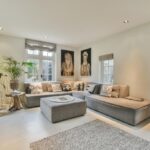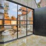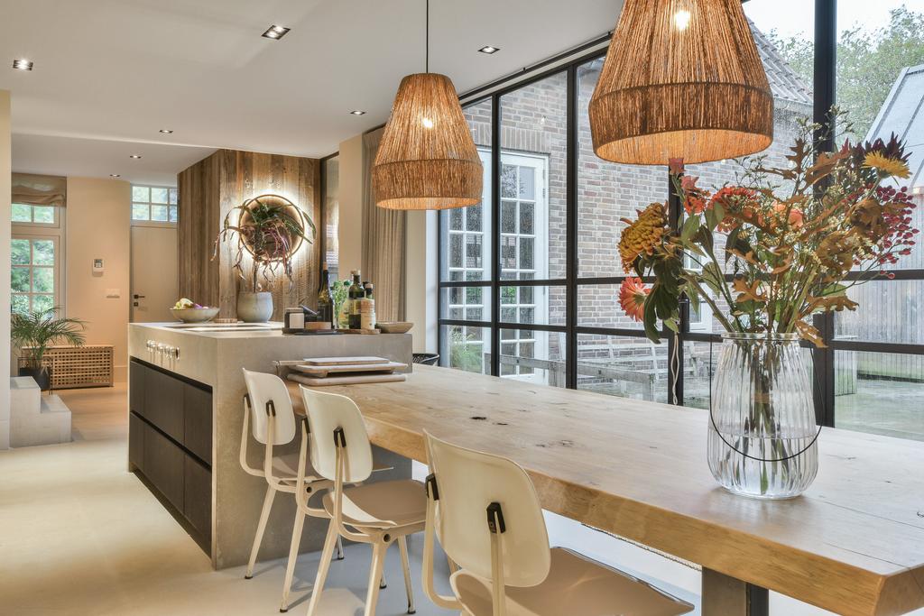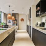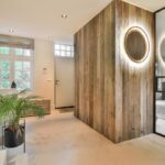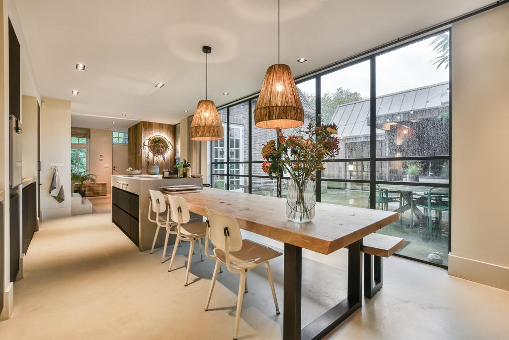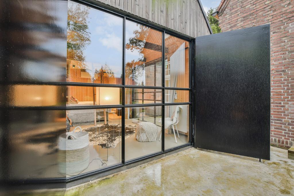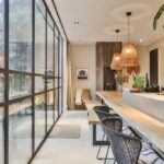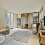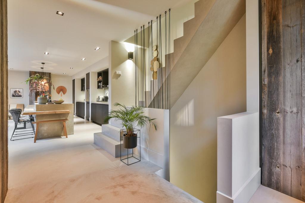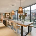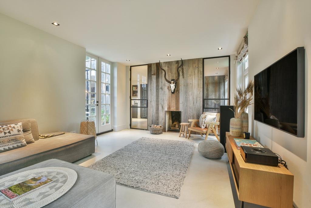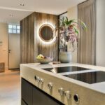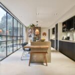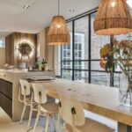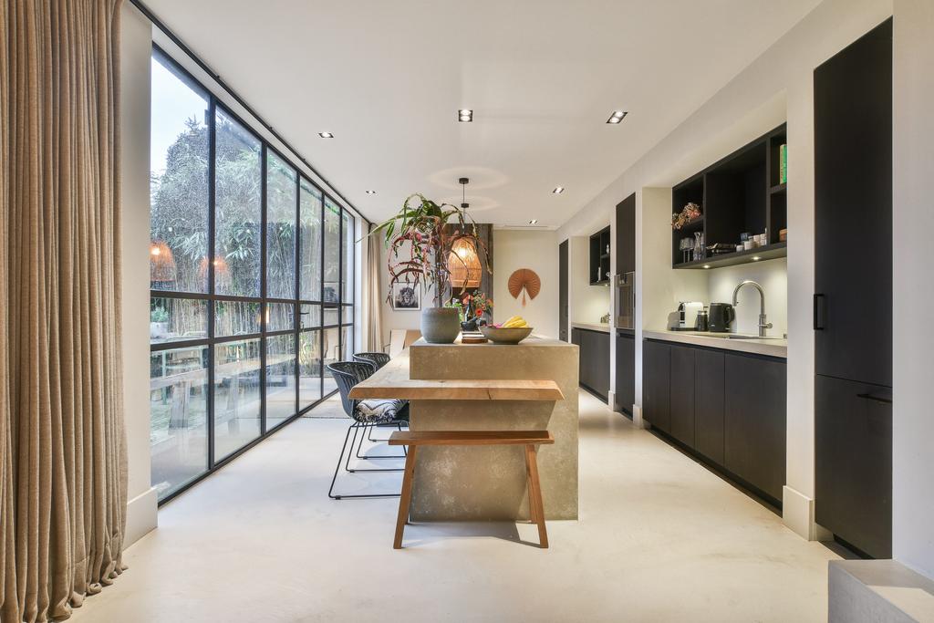 Entree, hal met garderobe, meterkast en toegang middels stalen deuren tot de sfeervolle living met open haard, gietvloer en openslaande deuren naar de achtertuin. De royale en sfeervolle en uitgebouwde leefkeuken met kookeiland, massief houten kasten, betonnen aanrechtblad, gashaard, airconditioning en stalen harmonica pui naar de achtertuin is van alle luxe voorzien: o.a. Quooker, Gaggenau inbouwapparatuur, Bora Professional kookplaat en afzuiger. Overigens is de gehele begane grond vloer voorzien van beton ciré/mortex vloeren met vloerverwarming.