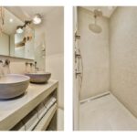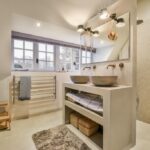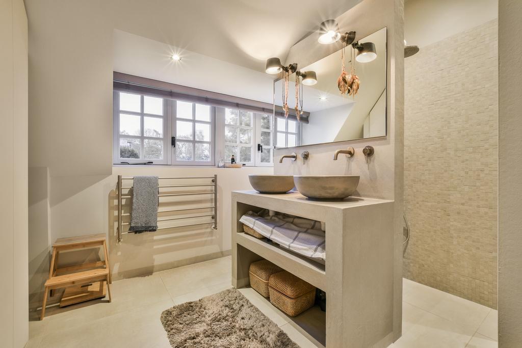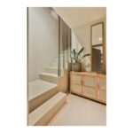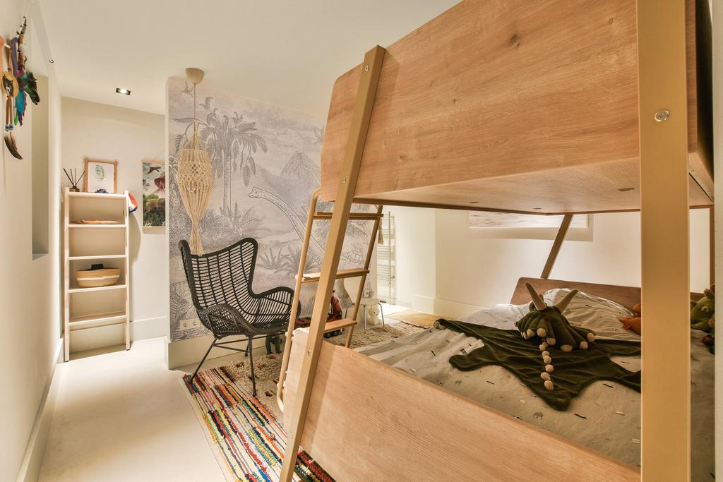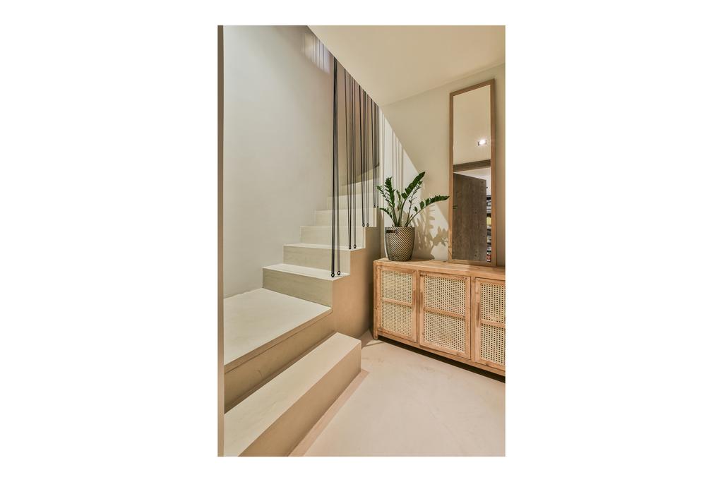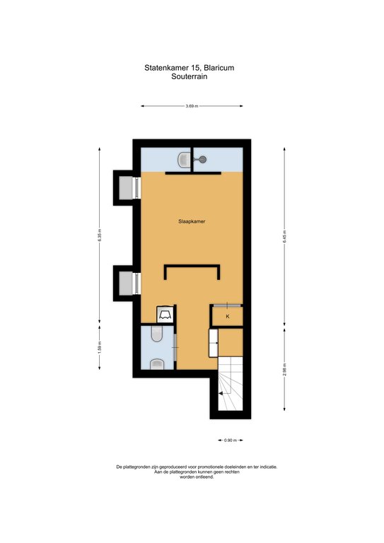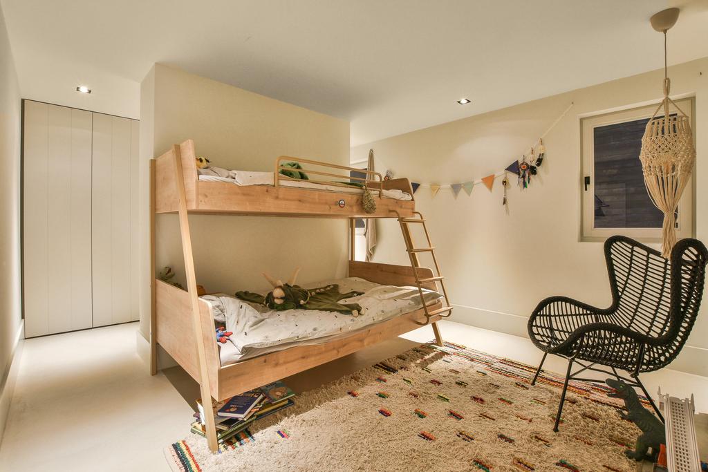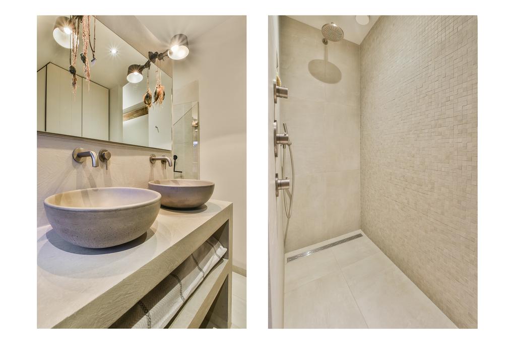 Souterrain: bij de verbouwing is ook het nieuwe deel geheel onderkelderd. Het souterrain is voorzien van een hal met inbouwkasten, separate toilet met fontein en een fraaie (kinder)slaapkamer met Tri-bunk (stapelbed met twijfelaar beneden en een eenspersoonsbed boven), daglichttoetreding en badkamer voorzien van inloopdouche en wastafel. Het gehele souterrain is eveneens voorzien van beton ciré/mortex vloeren met vloerverwarming.