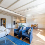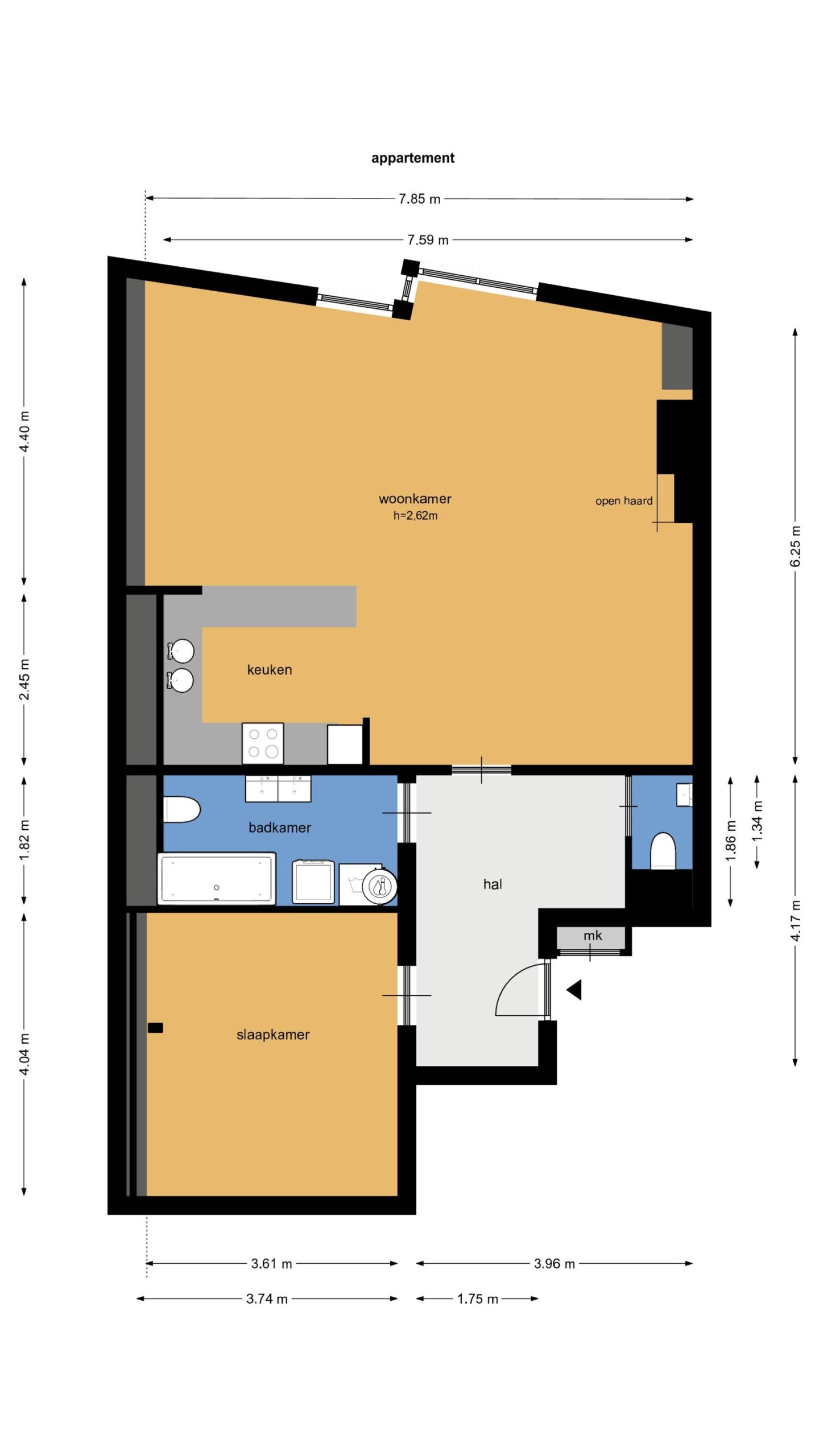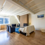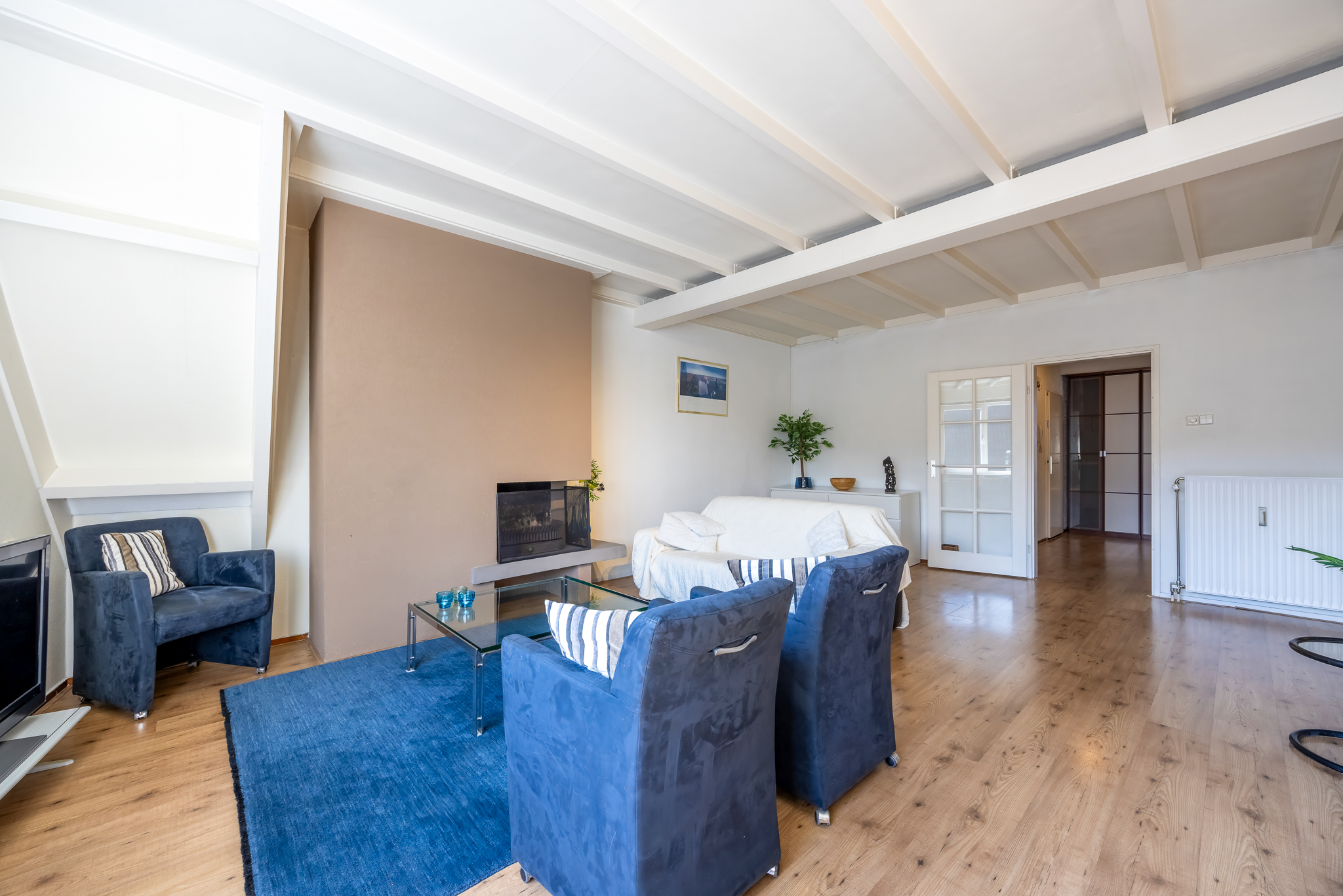 De woonkamer staat in open verbinding met de keuken en het eetgedeelte. De ruimte is goed in te delen en biedt daarnaast de mogelijkheid om een tweede slaapkamer te realiseren. De open haard bevindt zich in de zithoek.