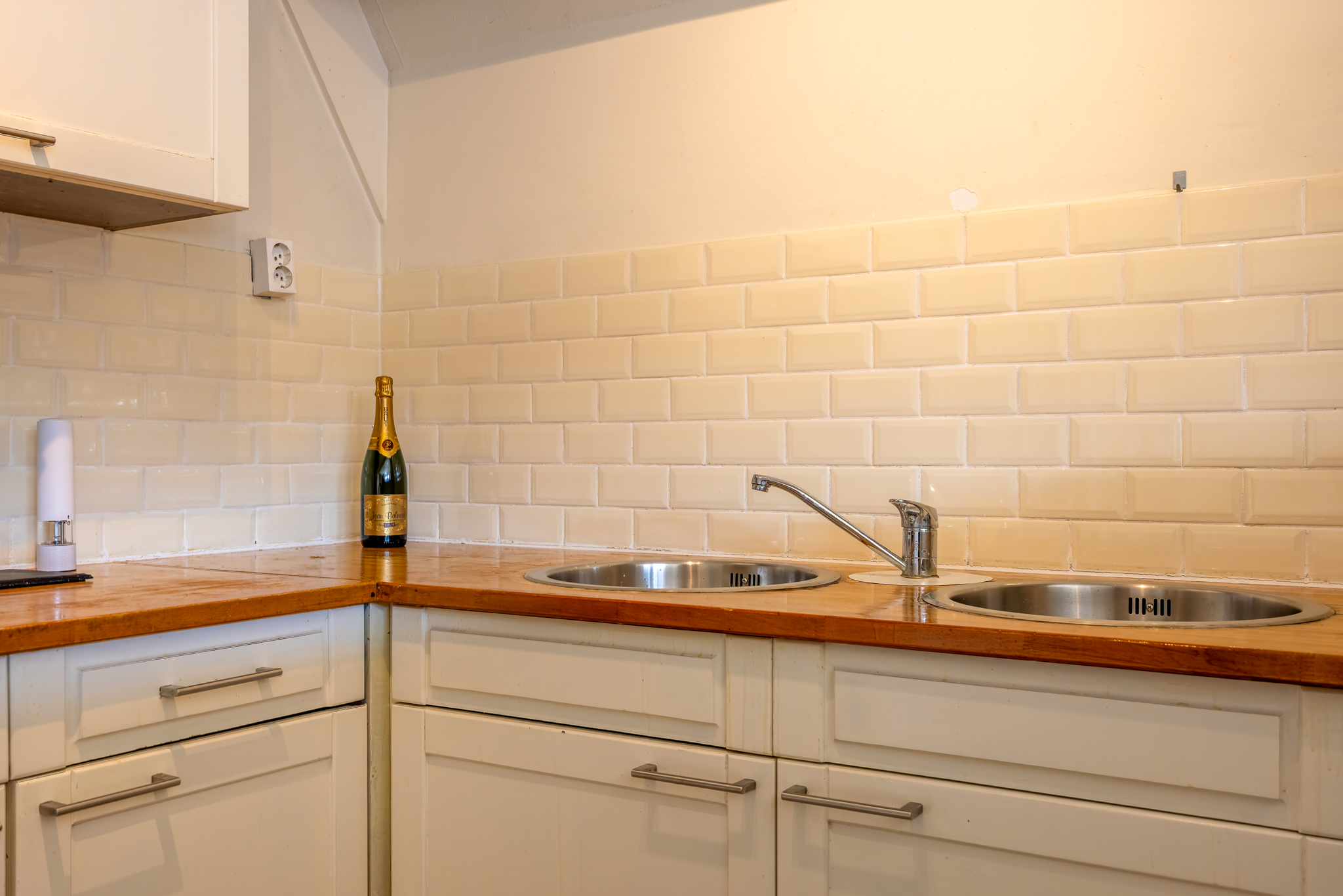 De hal geeft toegang tot alle vertrekken. De woonkamer is ruim opgezet en biedt voldoende ruimte voor een zit- en eetgedeelte. Toilet met fontein. De keuken is functioneel ingericht en staat in directe verbinding met de leefruimte.