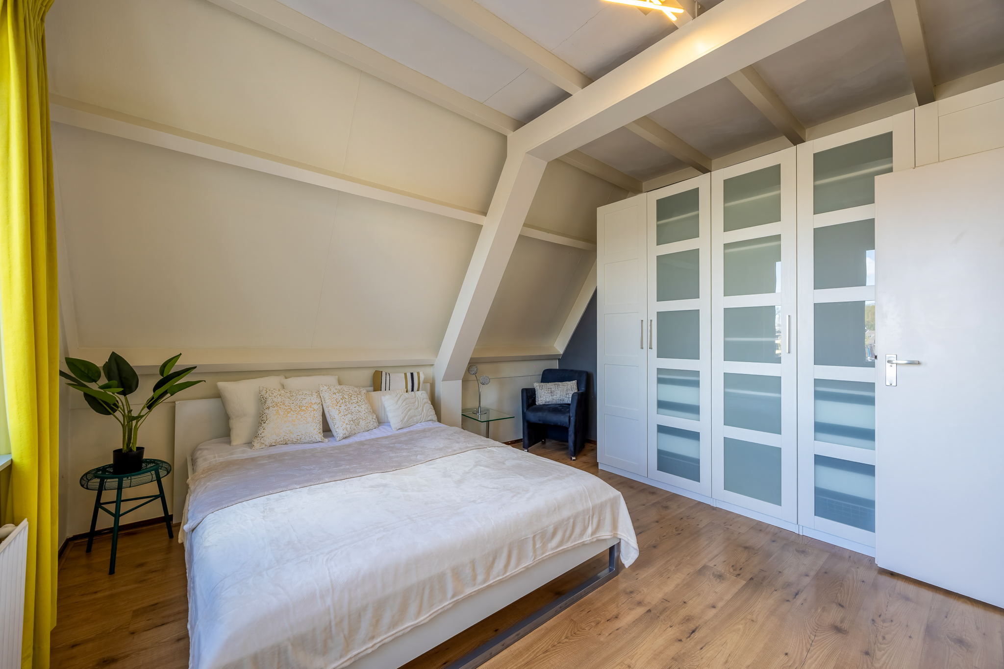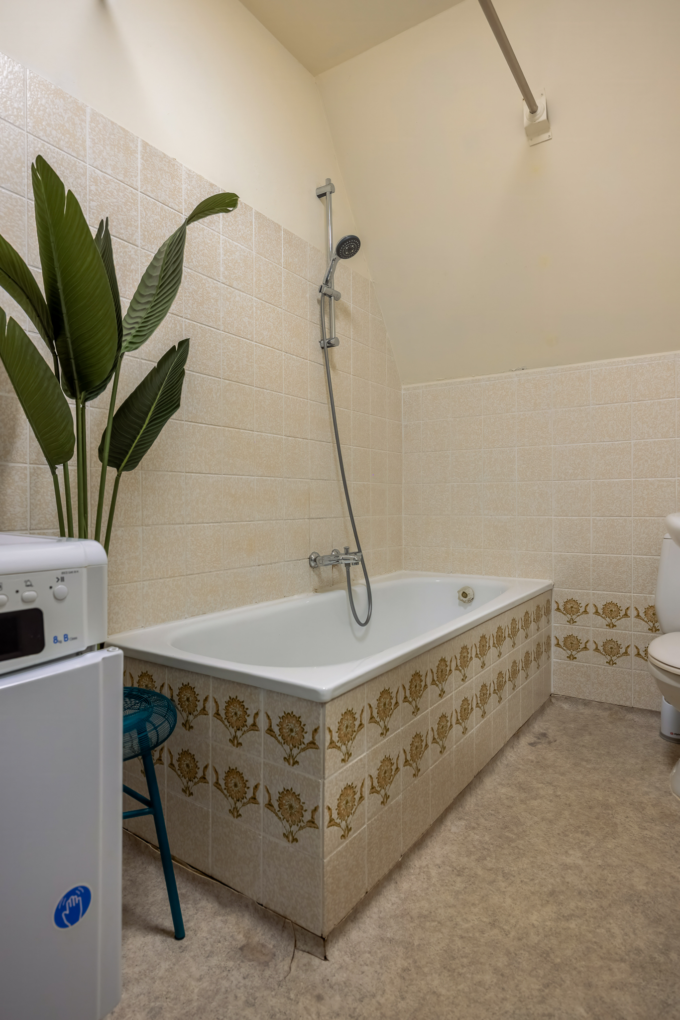 De slaapkamer is van goed formaat en rustig gelegen. De badkamer is voorzien van een ligbad, dubbele wastafel, tweede toilet en wasmachineaansluiting.