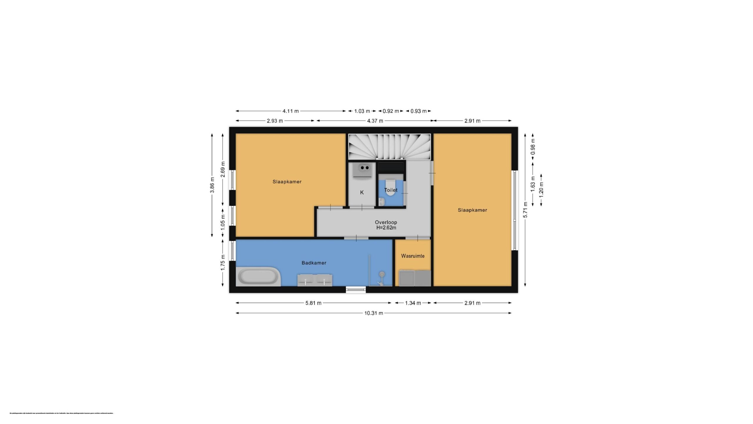 Op deze verdieping bevinden zich twee ruime slaapkamers met veel natuurlijk licht. De moderne badkamer is luxe uitgevoerd met een inloopdouche, ligbad, dubbele wastafel met meubel, vloerverwarming en hoogwaardige afwerking. Vanuit de hal zijn ook het separate toilet, een bergkast met technische installaties en een aparte kast met aansluitingen voor wasmachine en droger bereikbaar.