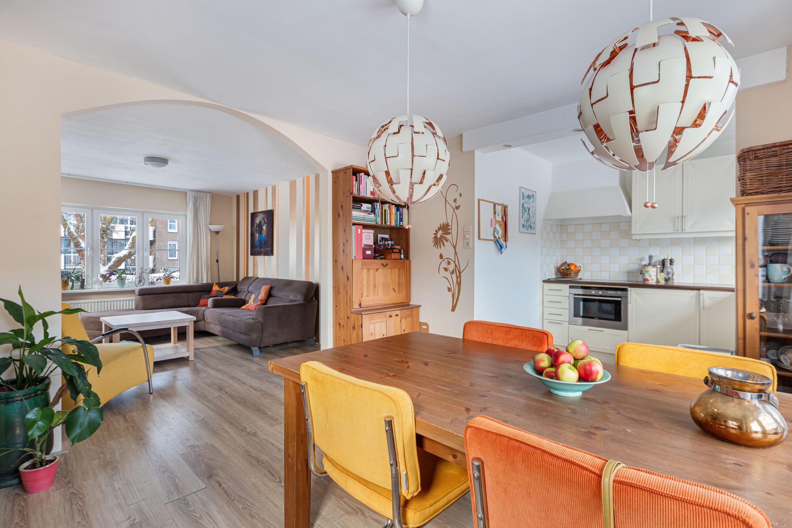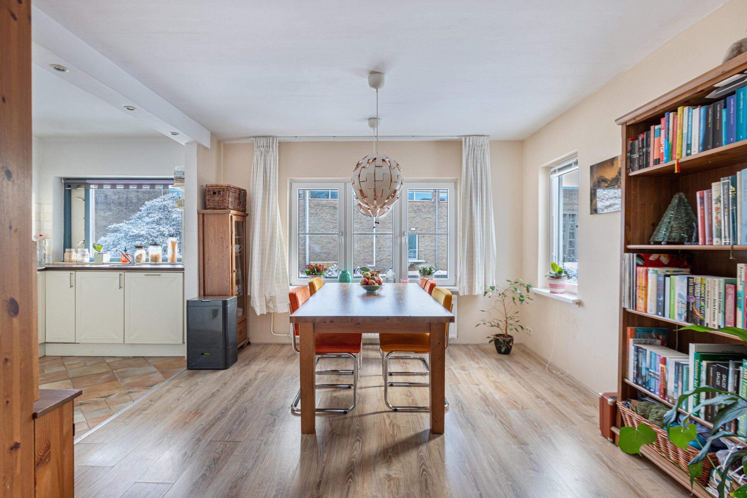 Dankzij de hoekligging geniet de woning van een prettige hoeveelheid daglicht. Aan de achterzijde bevindt zich de eethoek met aansluitend de open keuken, wat zorgt voor een fijne, open leefruimte. Deze etage is voorzien van nieuwe kunststof kozijnen met HR-glas, wat bijdraagt aan comfort en isolatie.