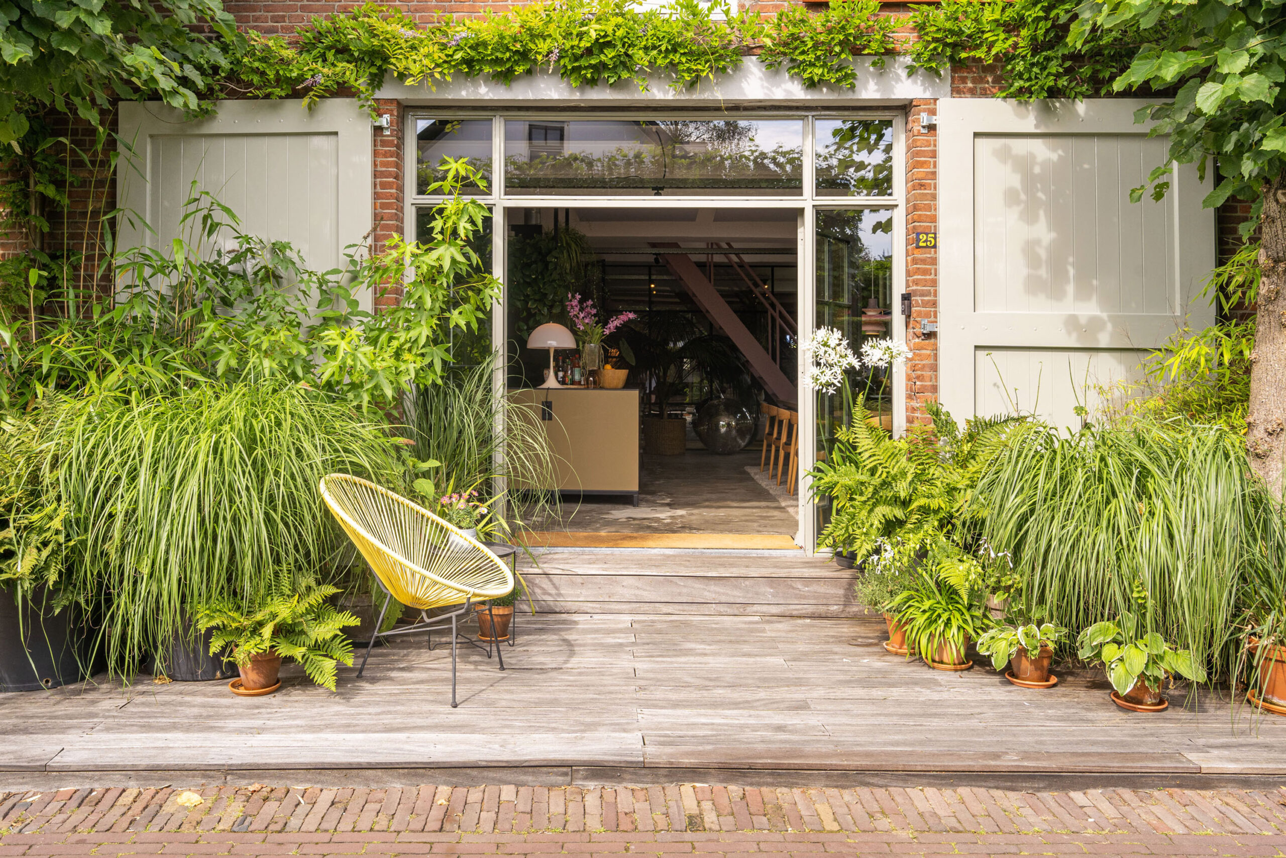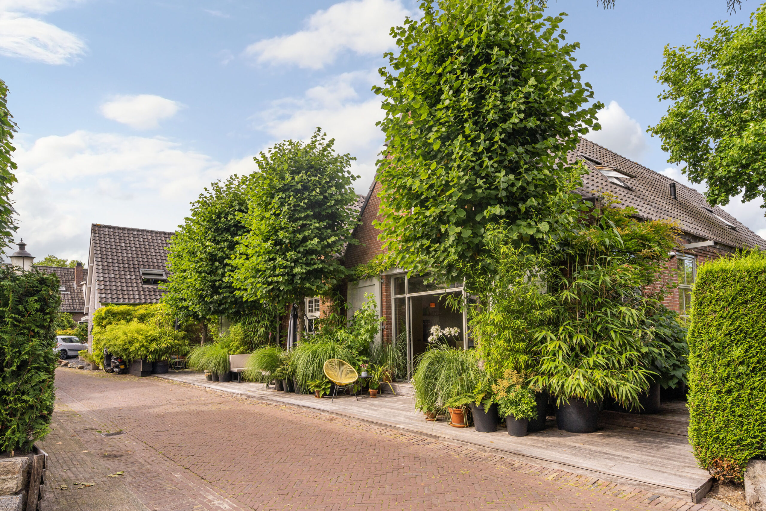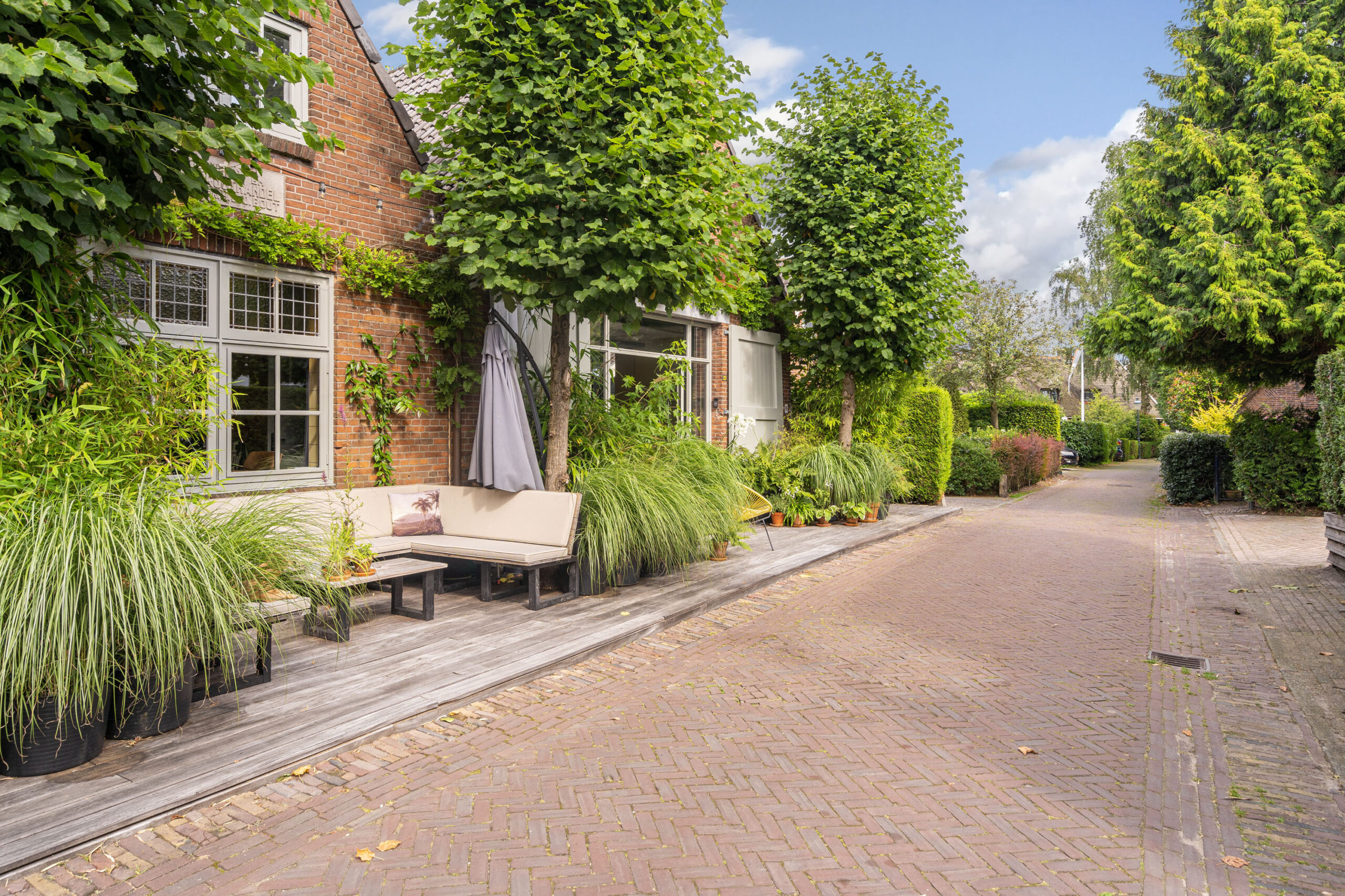 Trek naar buiten en u ontdekt de sfeervolle hardhouten terrassen rondom het huis met meerdere zit mogelijkheden, waar u heerlijk afgesloten kan zitten in een oase van planten. Of met vrienden gezellig kunt borrelen.