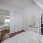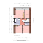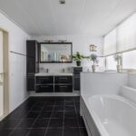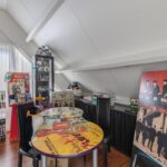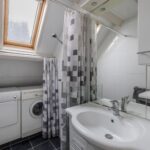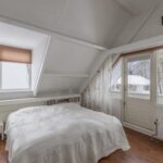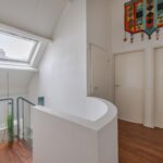 Ruimtelijke overloop met fraai zicht op de entree benedenverdieping. Royale hoofdslaapkamer aan de voorzijde met vaste kasten en directe toegang tot de badkamer voorzien van vloerverwarming, dubbel wastafelmeubel, ligbad, toilet en douche. Aan de voorzijde bevindt zich nog een slaap- of hobbykamer. Beide kamers aan de voorzijde hebben direct toegang tot het balkon over de gehele breedte van de woning. Aan de achterzijde zijn twee ruime slaapkamers gelegen, waarvan één met toegang (middels een vlizotrap) tot de royale bergvliering (stahoogte) met twee hang/legkasten. De tweede badkamer is uitgerust met een douche, wastafel en aansluitingen voor wasmachine en droger.