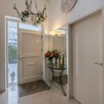Entree, ruime hal met garderobe en vrij hangend toilet met fonteintje, entree naar de aparte werkkamer aan de voorzijde van de woning; ideaal voor thuiswerken.