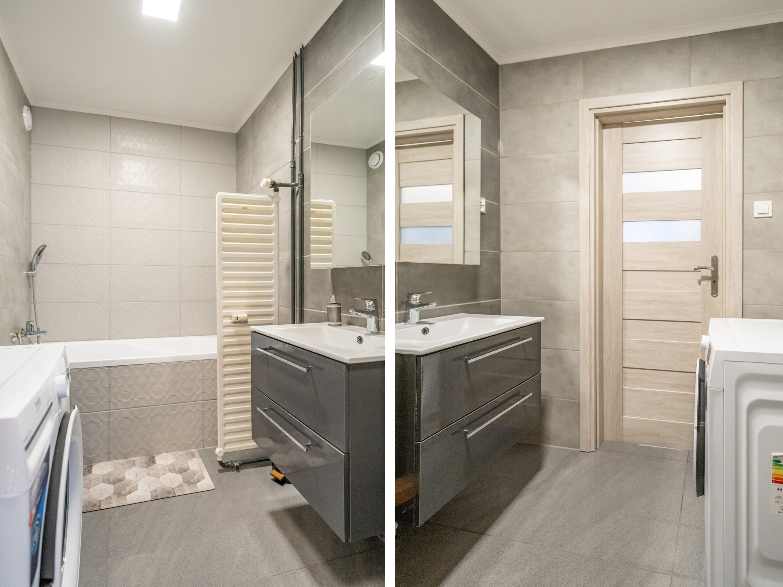 Entree/hal met vaste kasten. Keuken voorzien van een 4-pits gaskooktoestel, oven en vaatwasser. Ruime woon-/eetkamer met toegang tot het balkon. Twee ruime slaapkamers, beide met vaste kasten. Badkamer uitgerust met een douche/ligbad, wastafel en aansluitingen voor wasmachine en droger.