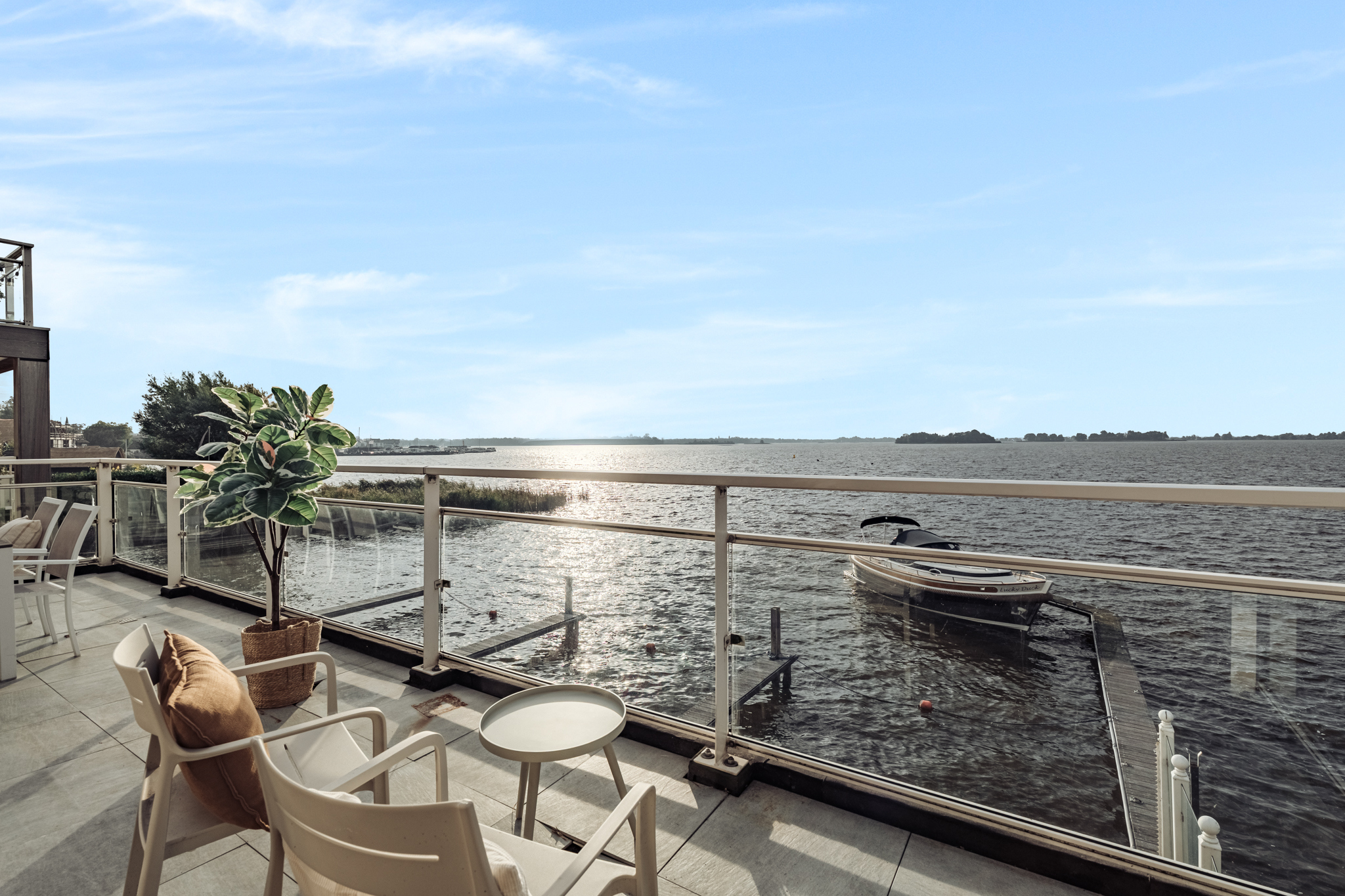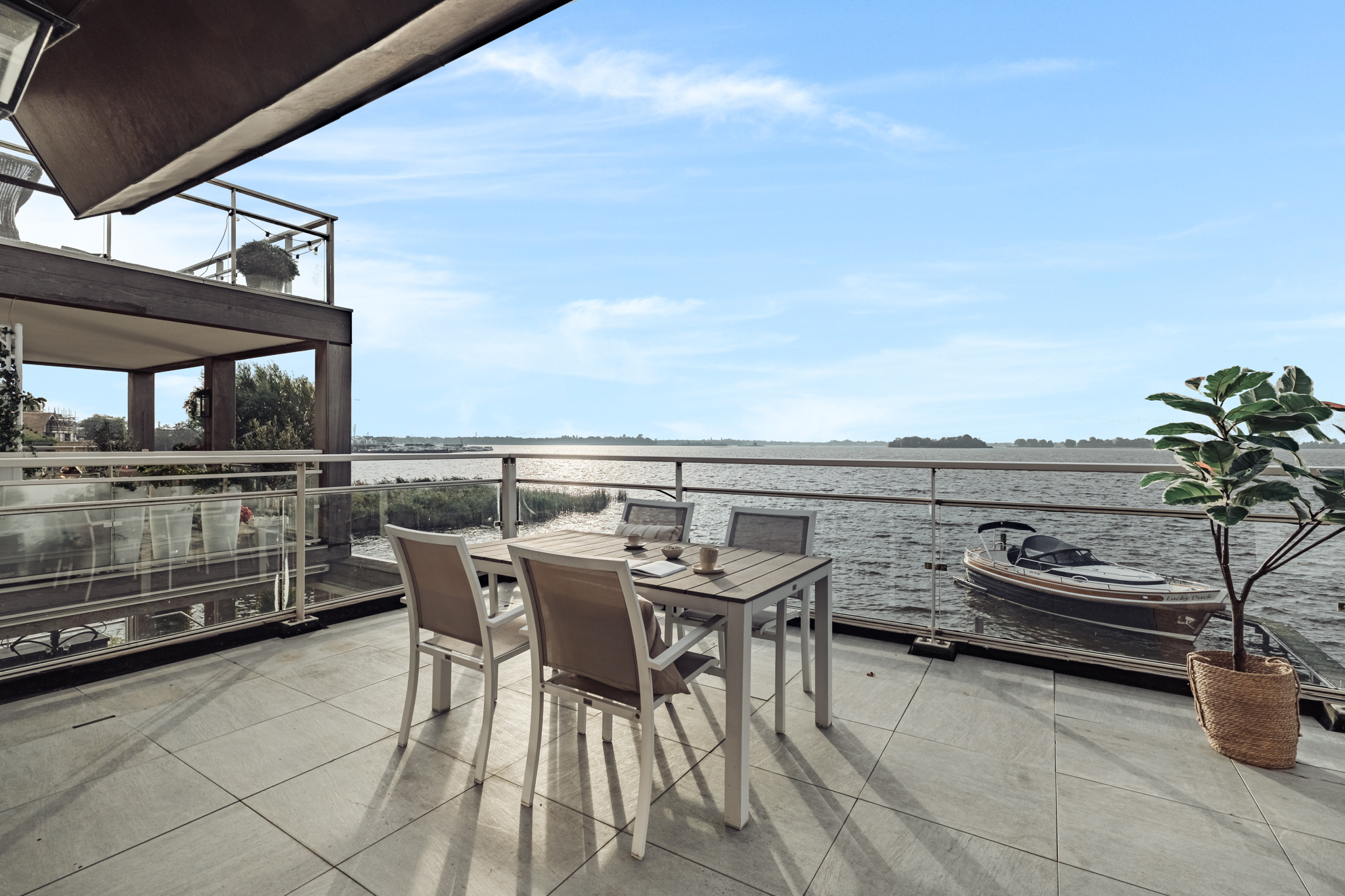 • Zonnig terras met waanzinnig uitzicht over het water