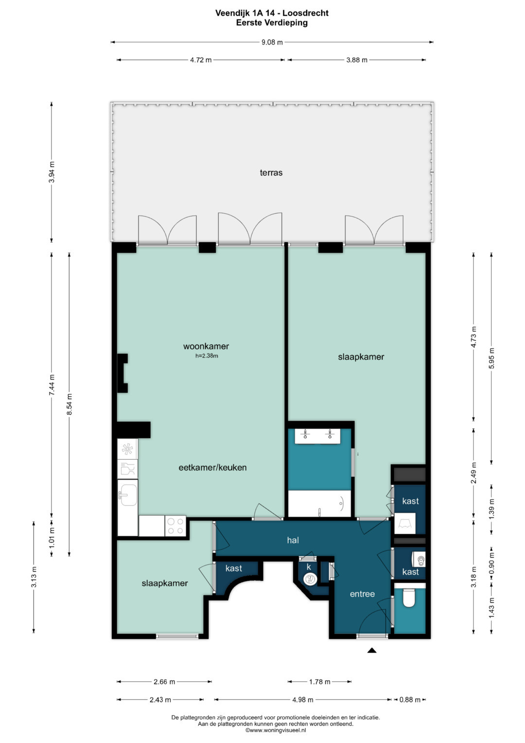 De indeling van dit appartement is als volgt;