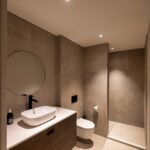 Daarnaast zijn er twee extra slaapkamers (3 en 4), elk met een prachtig uitzicht op de tuin. Deze kamers delen een zorgvuldig afgewerkte badkamer (3) met douche, toilet en wastafel, uitgevoerd in dezelfde serene stijl.