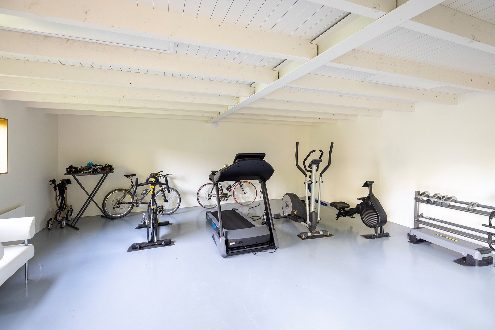 In de tuin bevindt zich een ruime, stijlvol afgewerkte gym, die desgewenst als gastenverblijf kan worden ingericht.