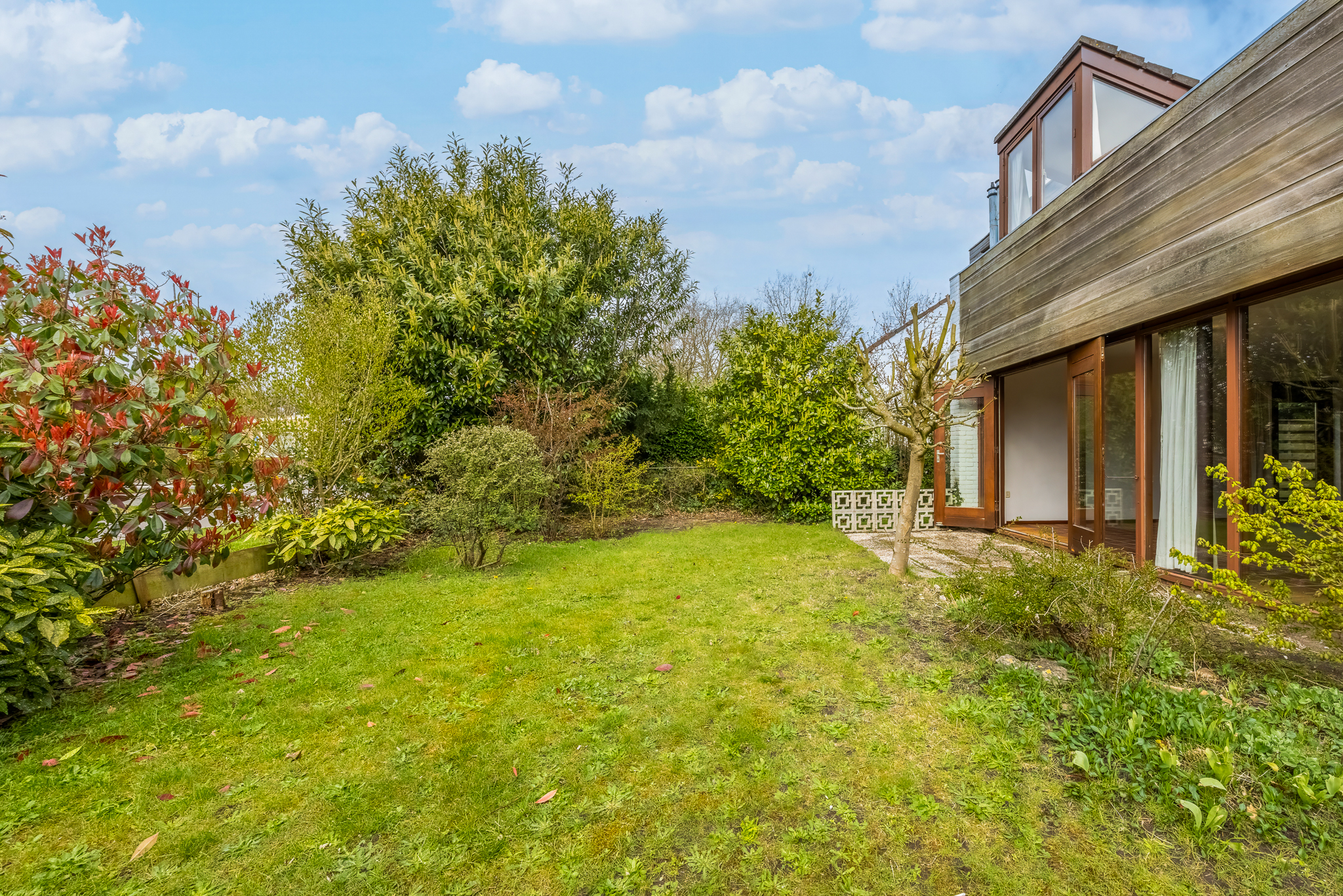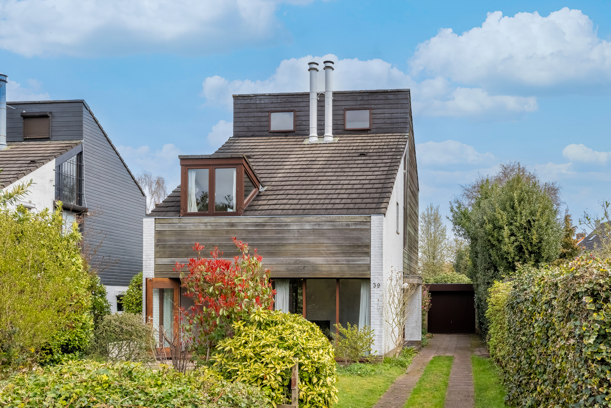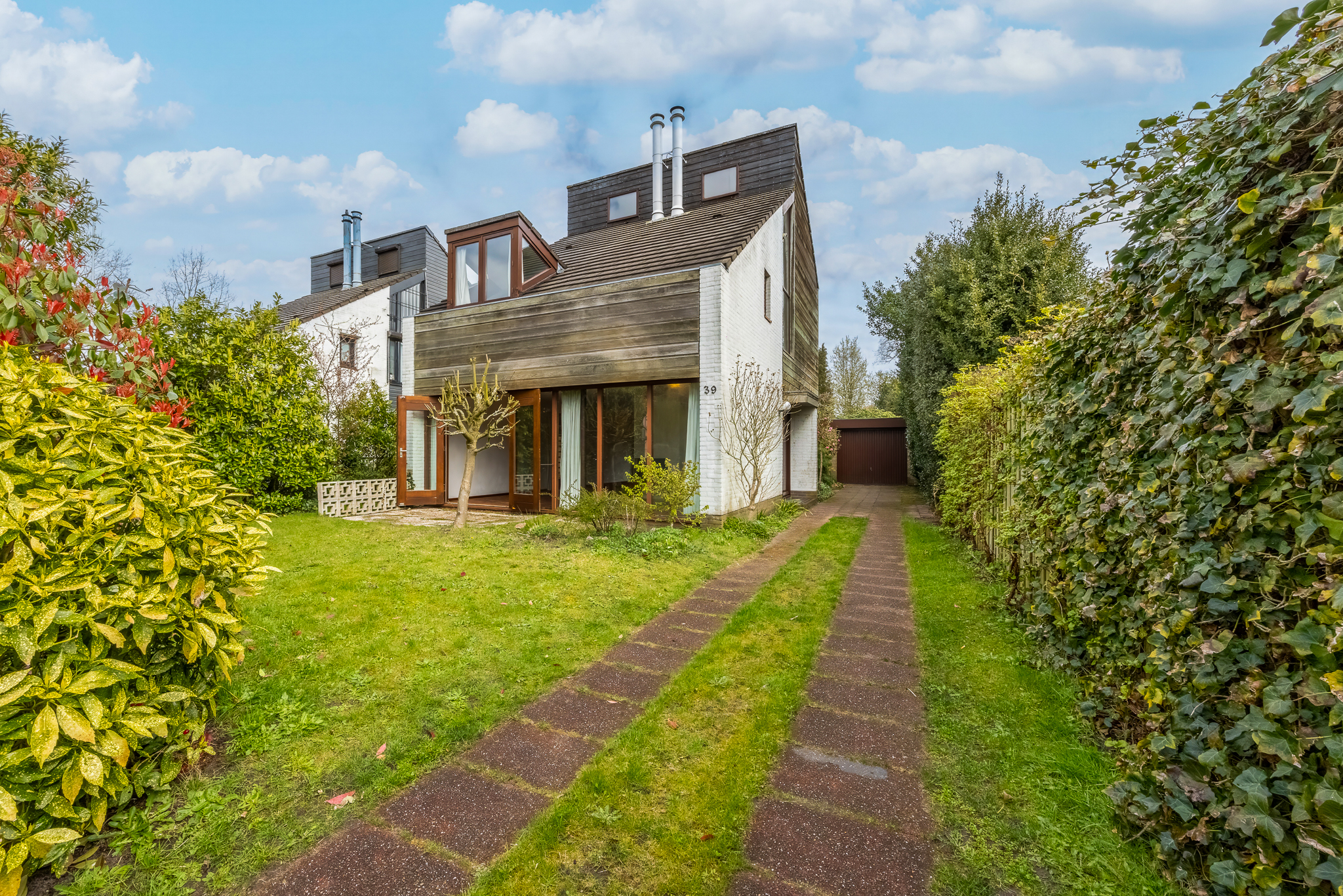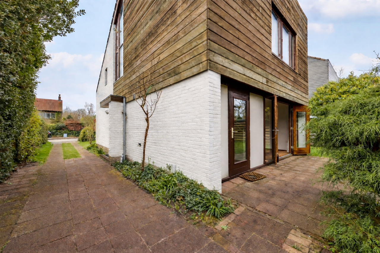 De woning heeft een unieke en verrassende architectuur aan de buitenkant en van binnen is het heel ruim, licht en zeer praktisch ingericht. Rondom de woning ligt een ruime tuin.