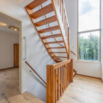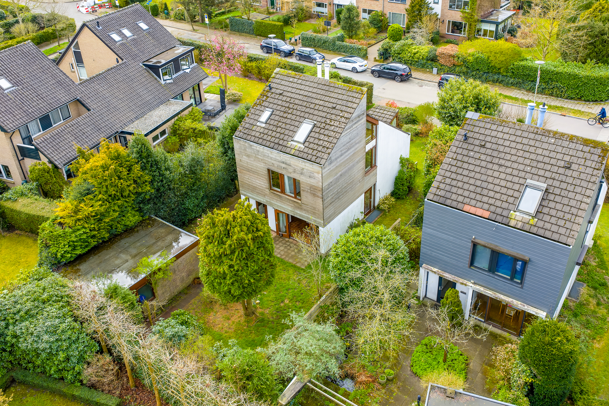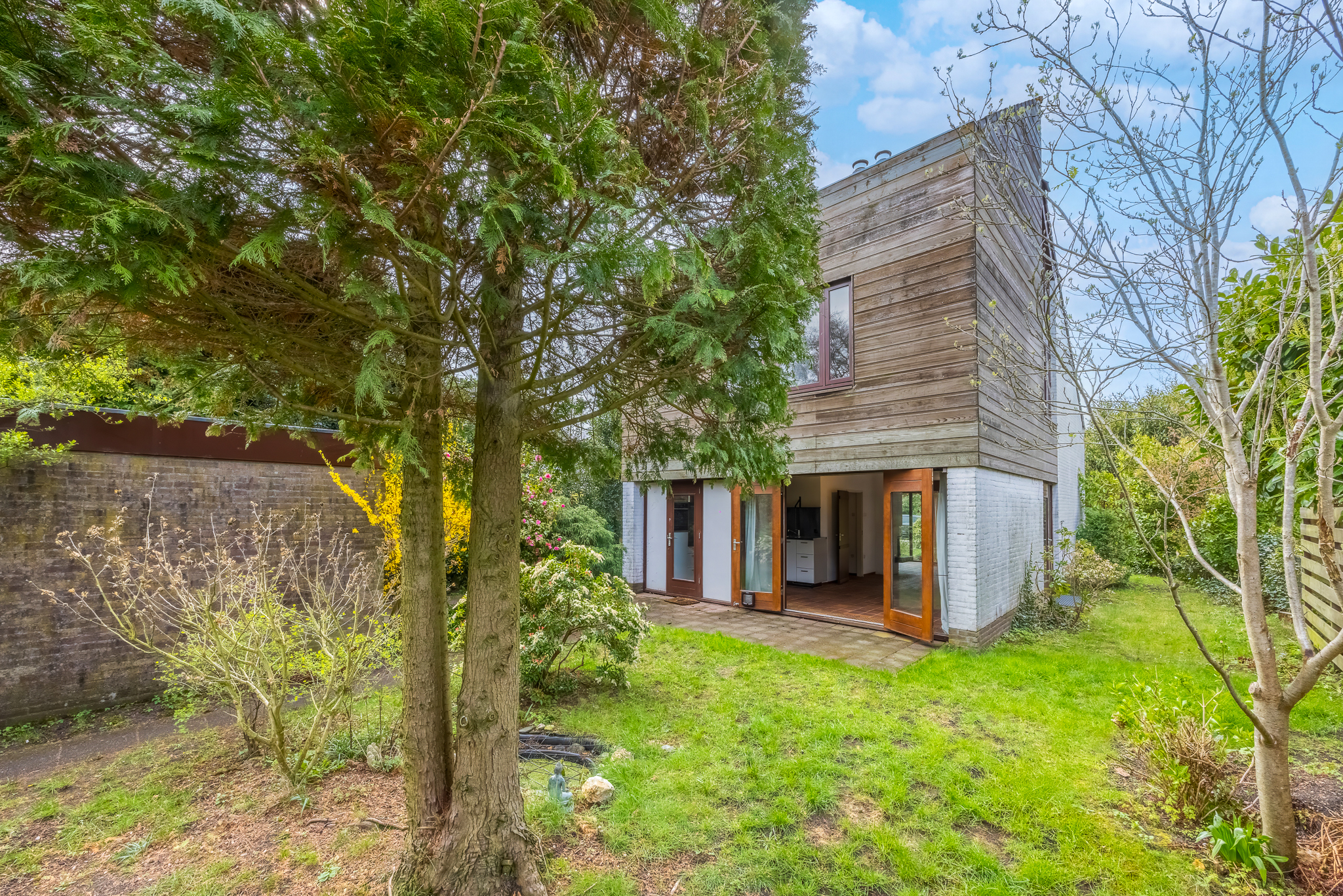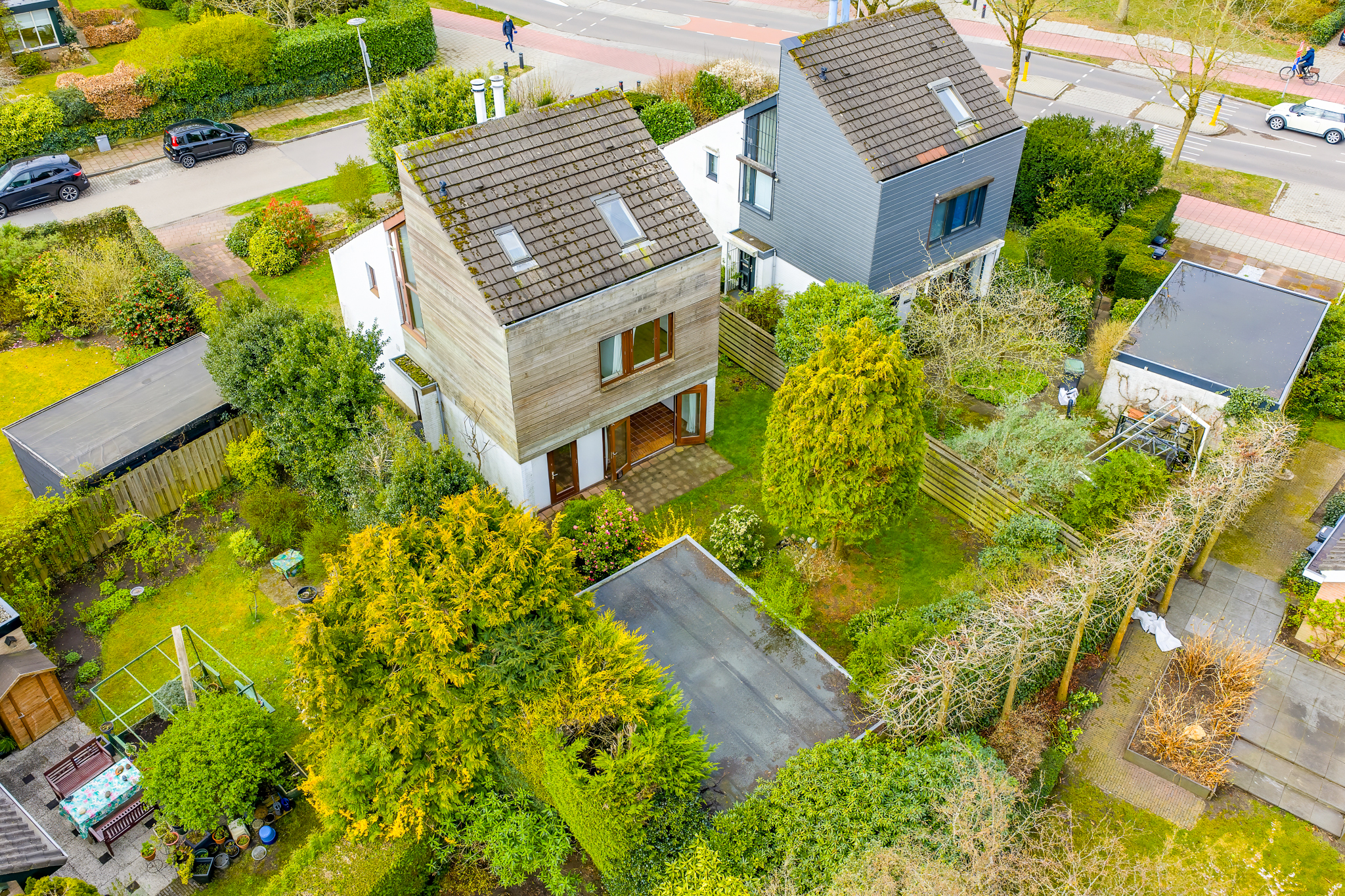 De woning heeft een unieke en verrassende architectuur aan de buitenkant en van binnen is het heel ruim, licht en zeer praktisch ingericht. Rondom de woning ligt een ruime tuin.