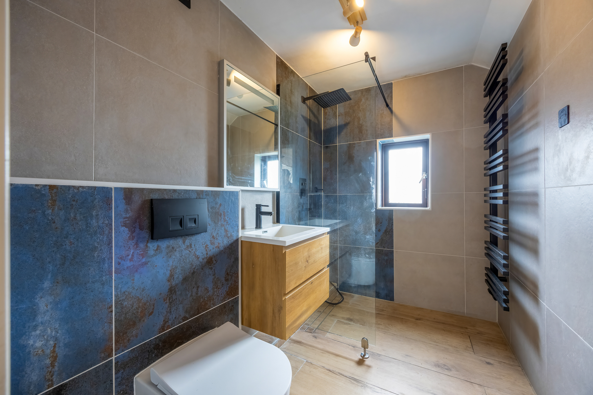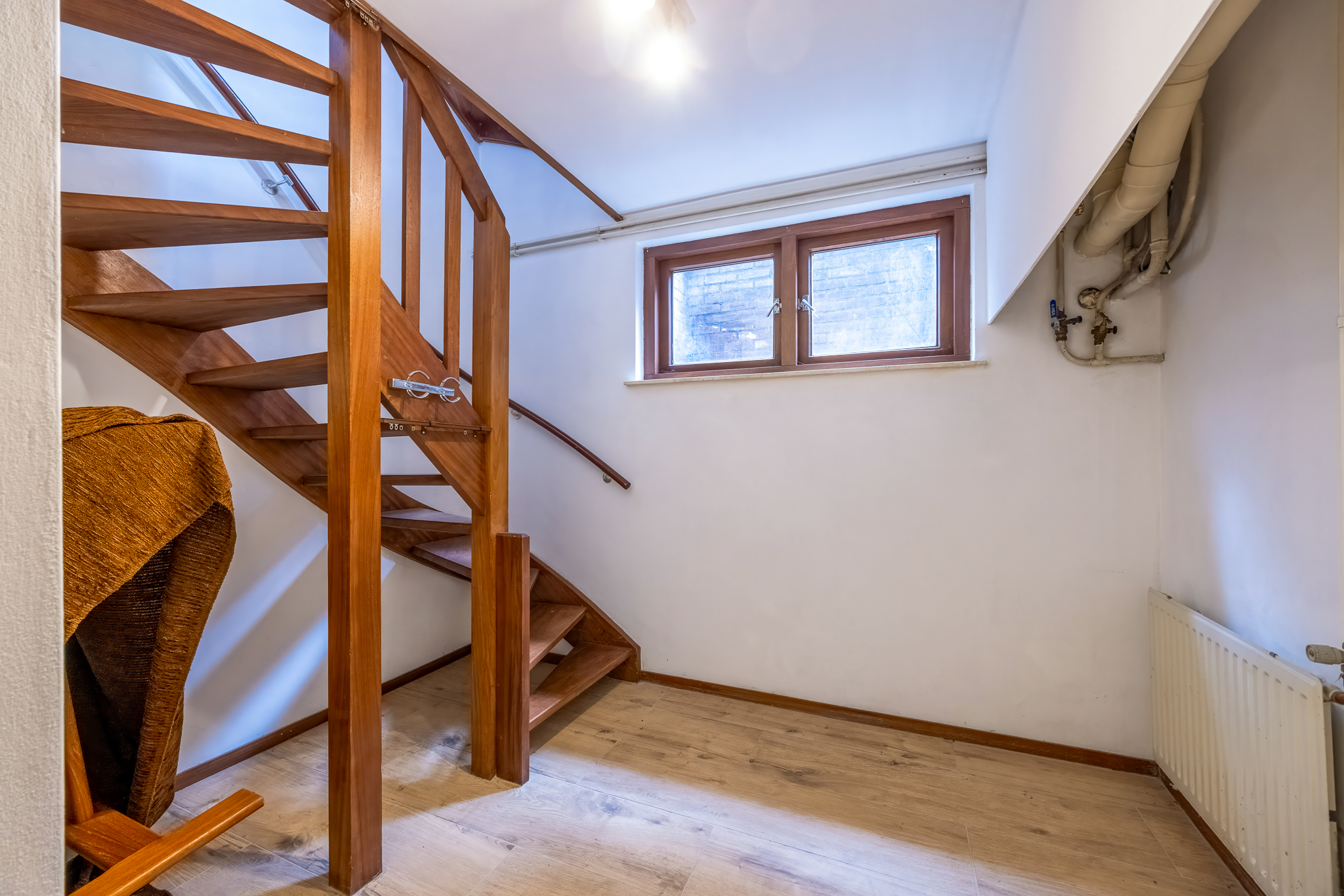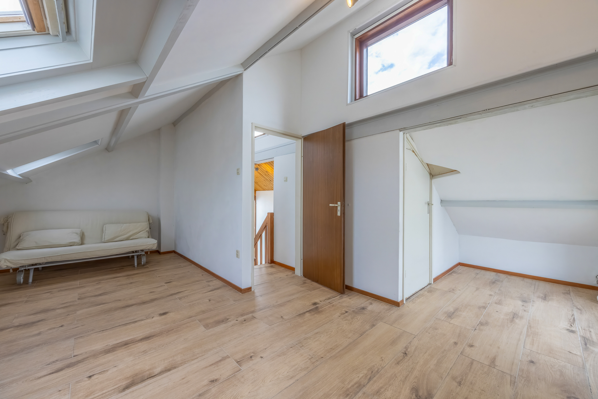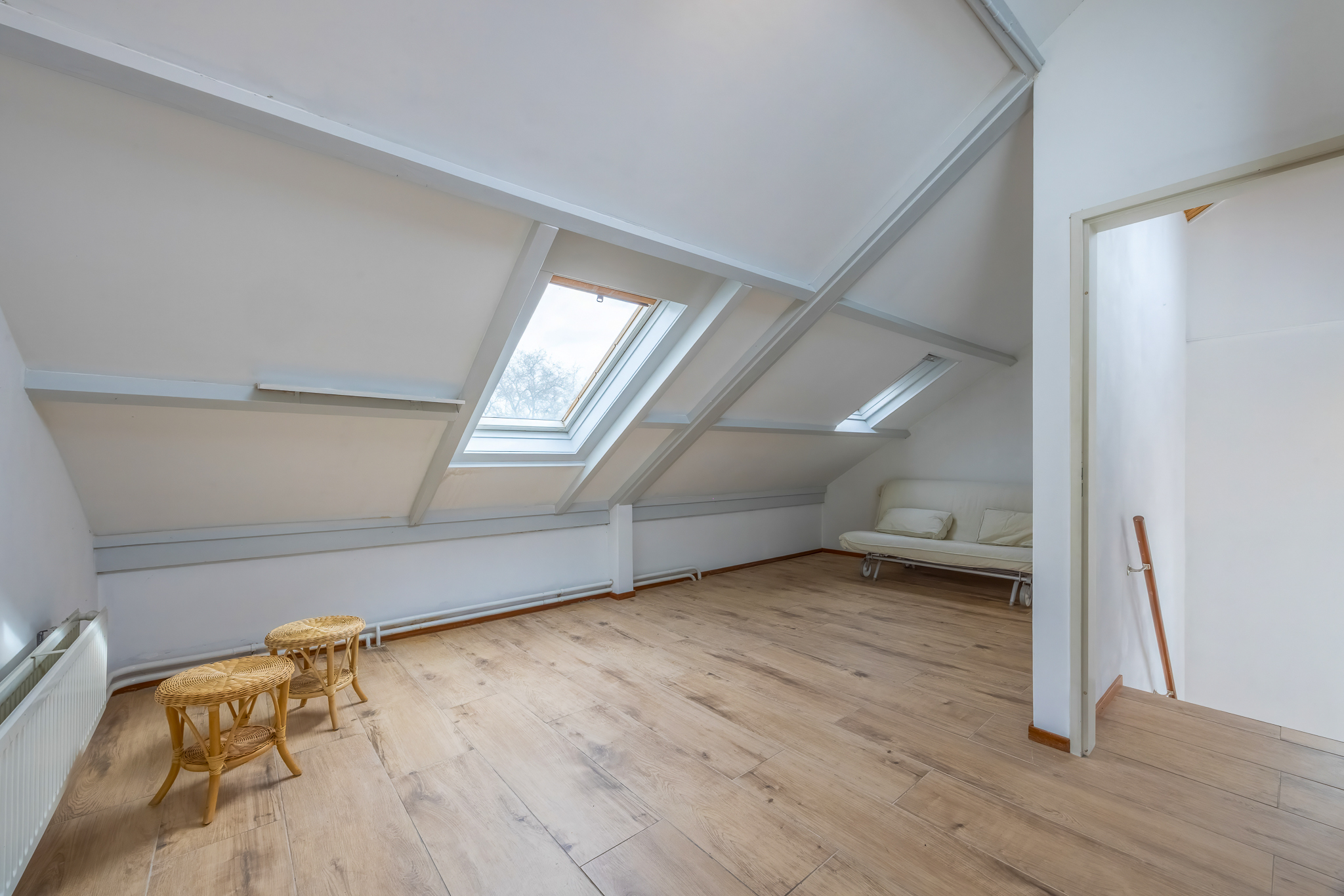 Royale zolderdieping met kamer. Berging met opstelling cv-ketel (Nefit).