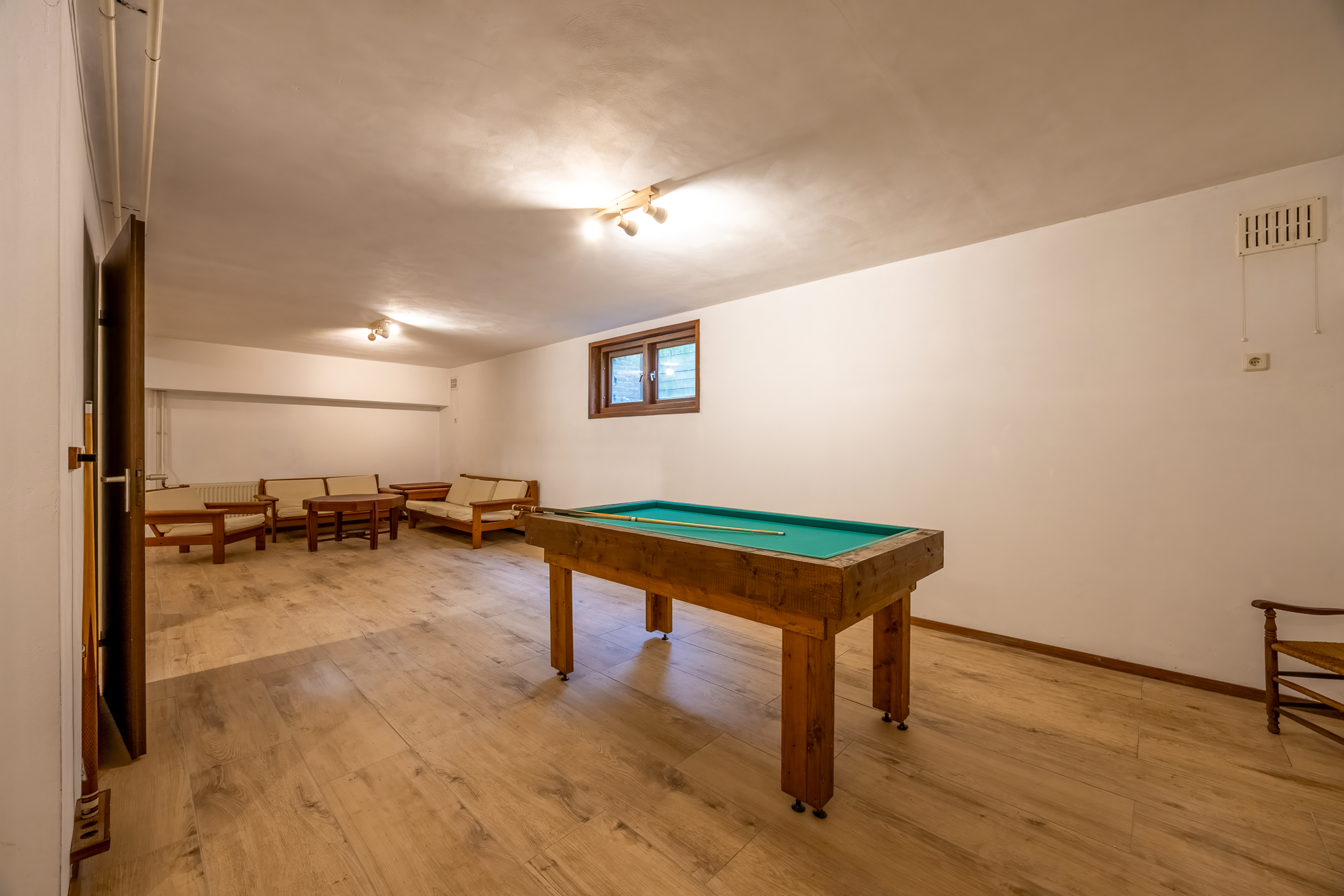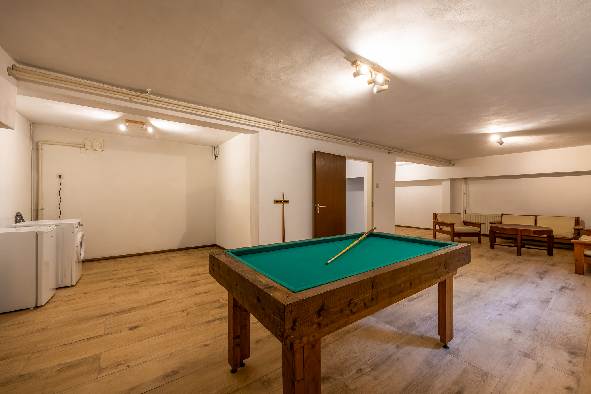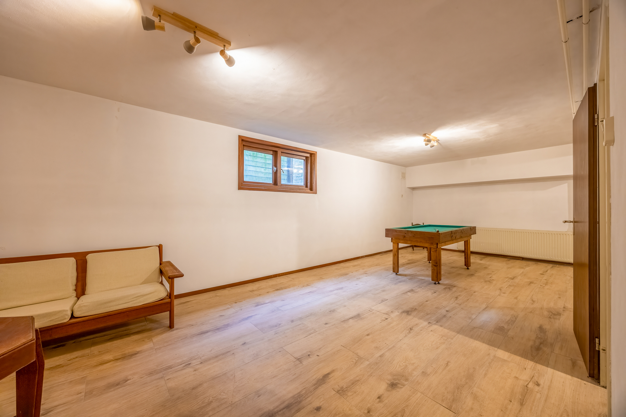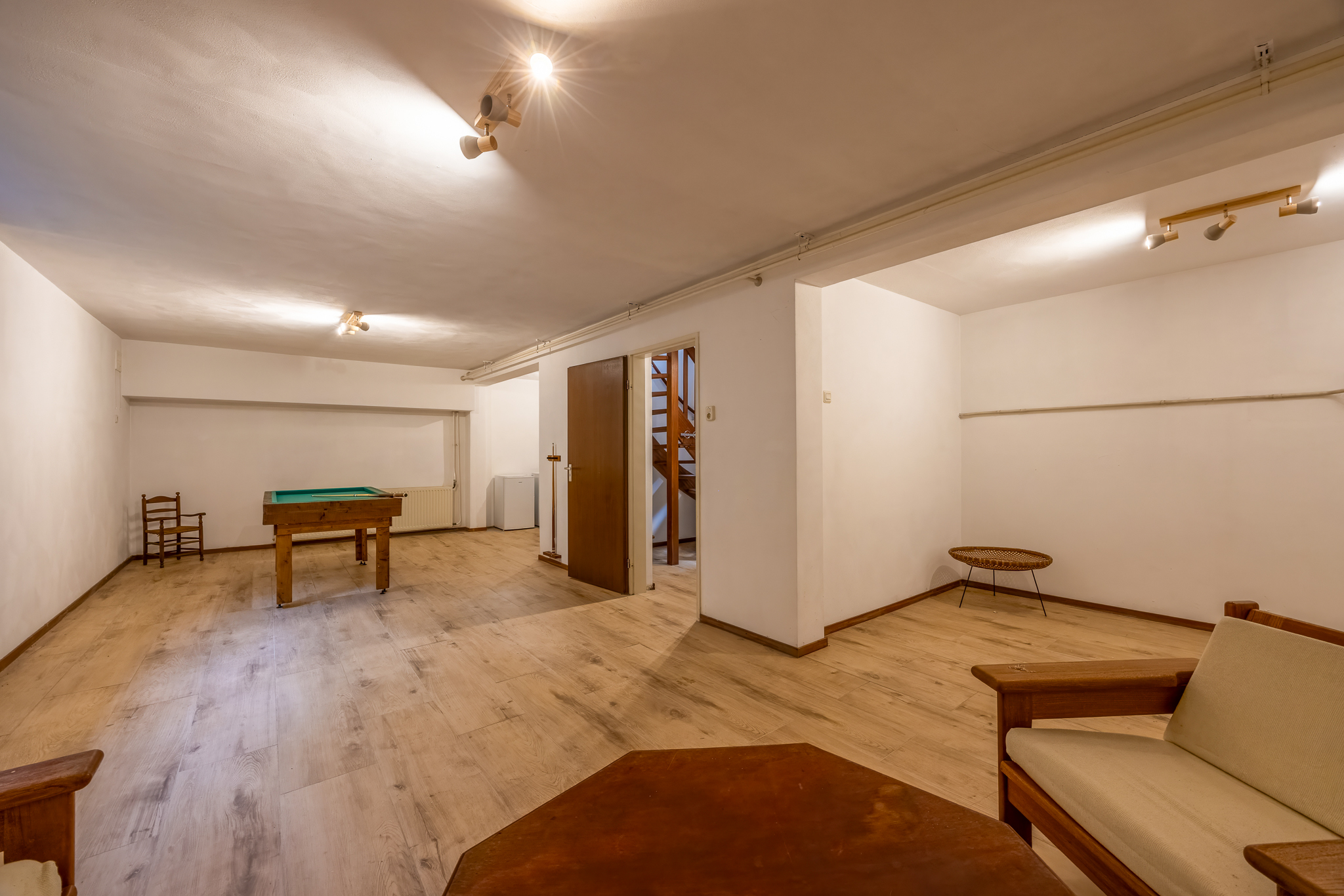 Souterrain: hal, ruime multifunctionele ruimte met daglichttoetreding, leuk om te gebruiken als entertainmentruimte, kantoor, logeerruimte et cetera. Hier bevindt zich ook een wasruimte.