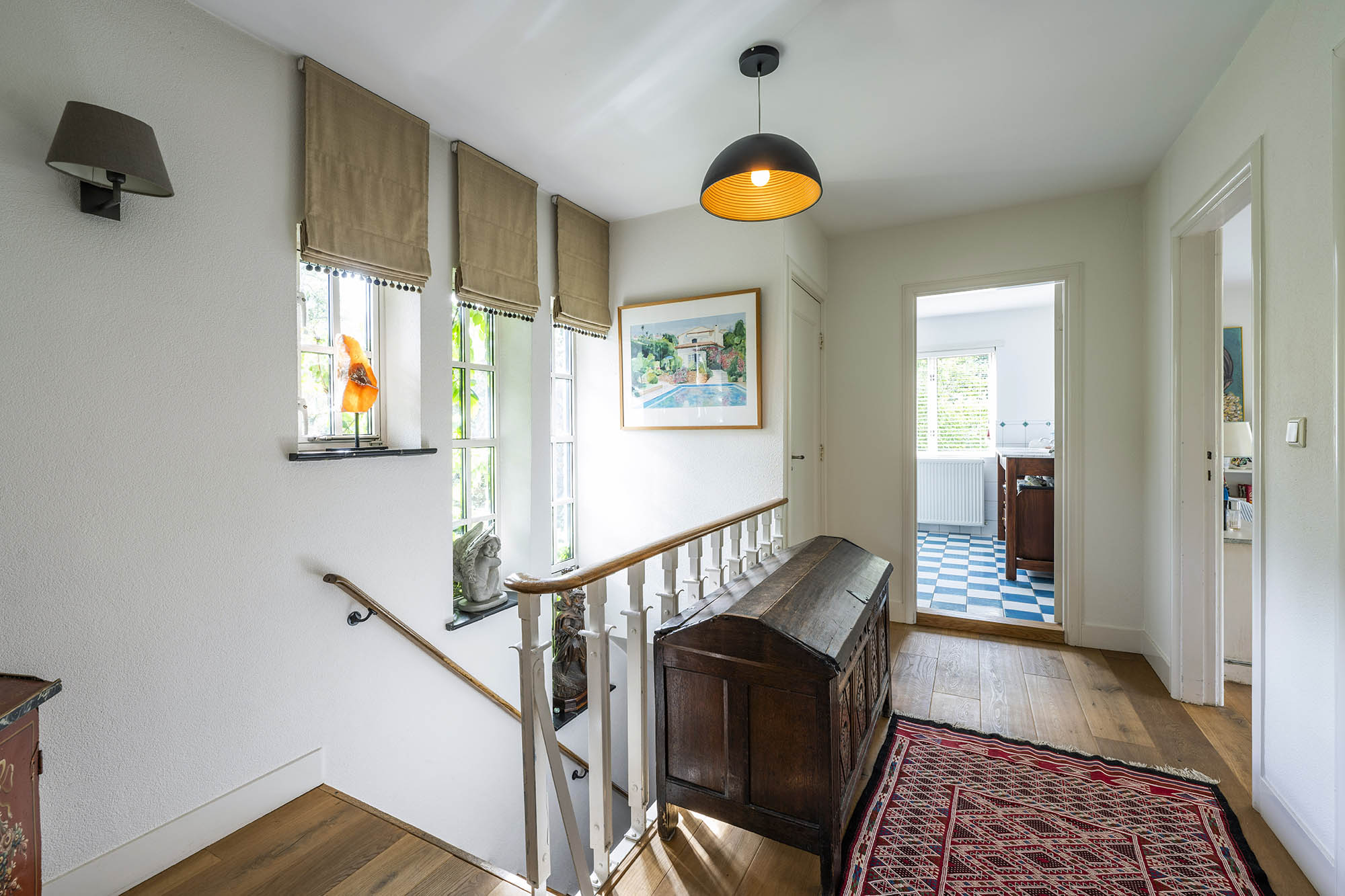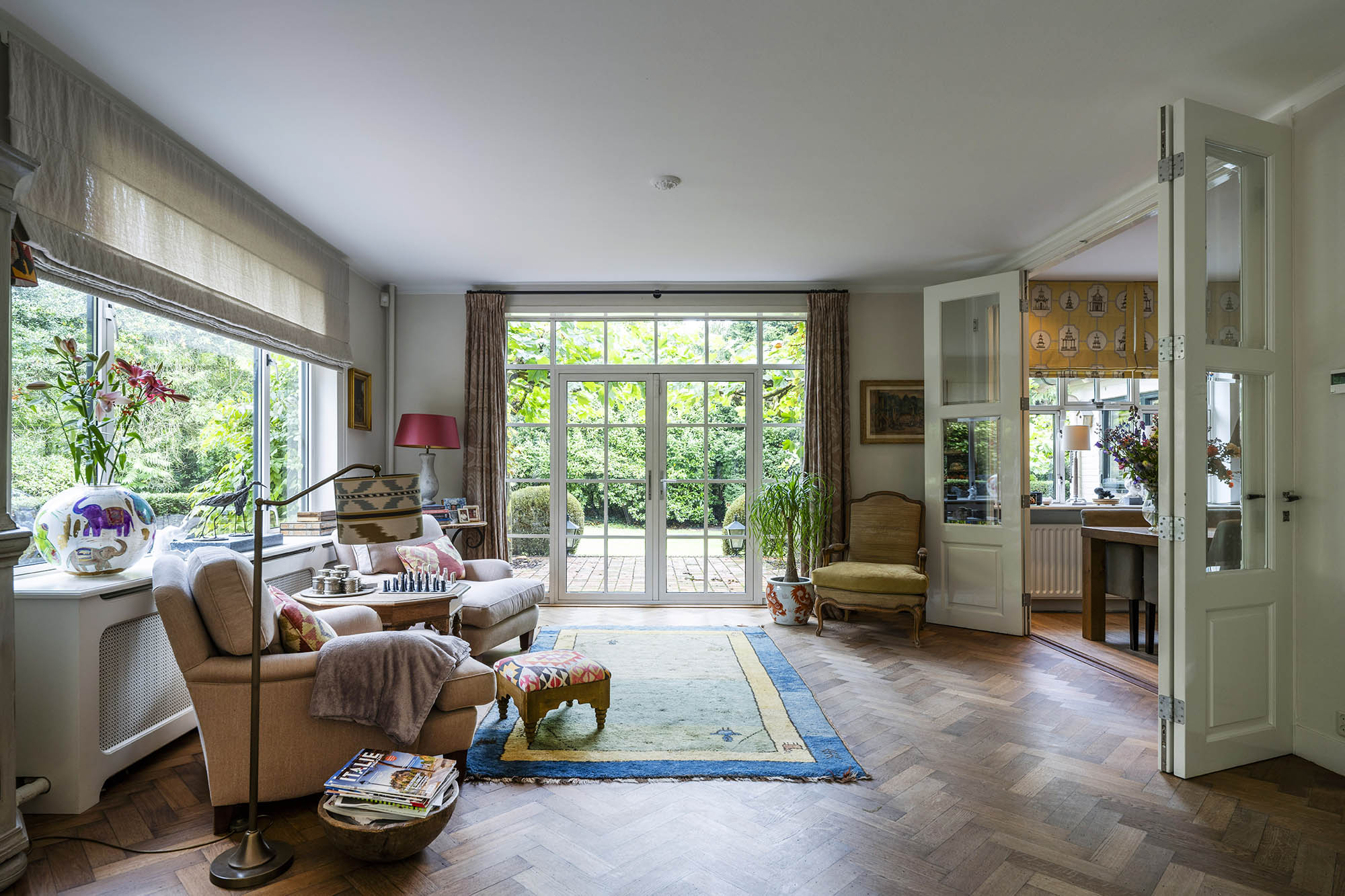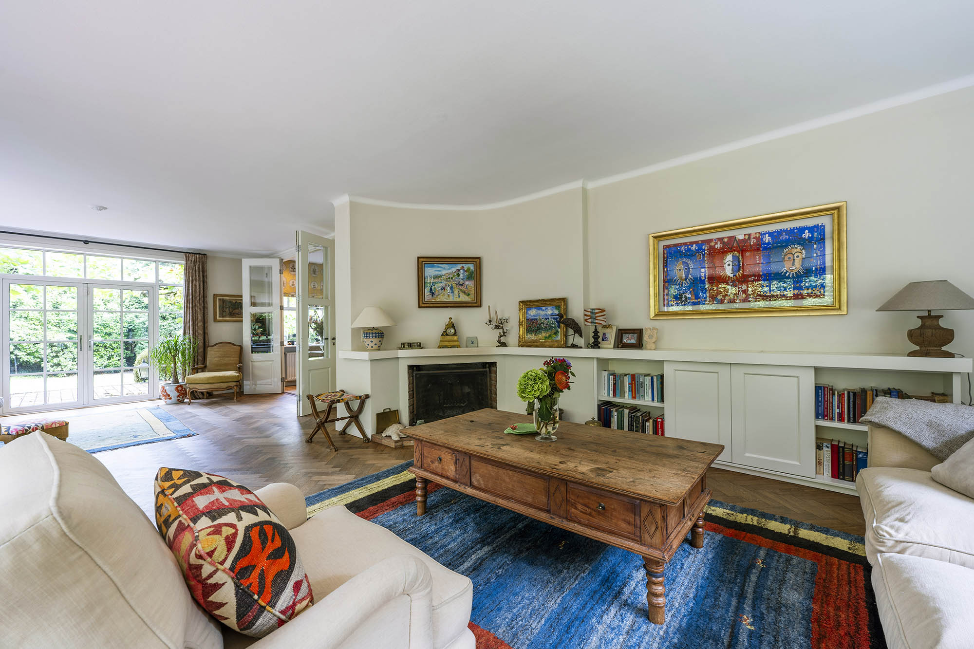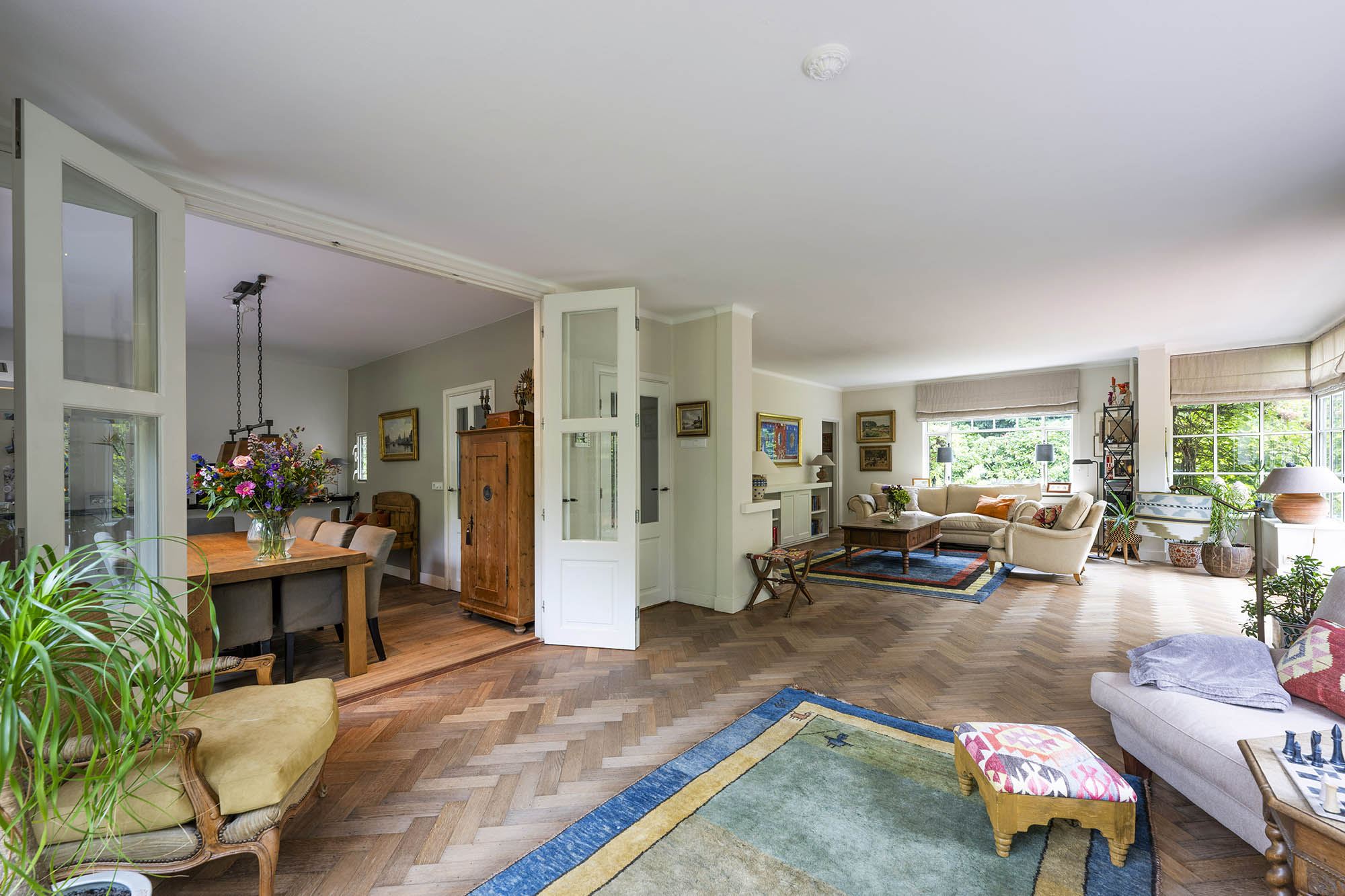 Via de entree komt u in de ruime hal met trapopgang, garderobe en gastentoilet. Vanuit hier heeft u toegang tot de verschillende leefruimtes. De royale woonkamer met een hoogte van 2,74 meter is licht en sfeervol en biedt een prachtig uitzicht op de tuin. De kamer is voorzien van een prachtige houten visgraten vloer en heeft met openslaande deuren direct toegang geeft tot het zonnige terras – ideaal voor lange zomeravonden. Aansluitend bevindt…