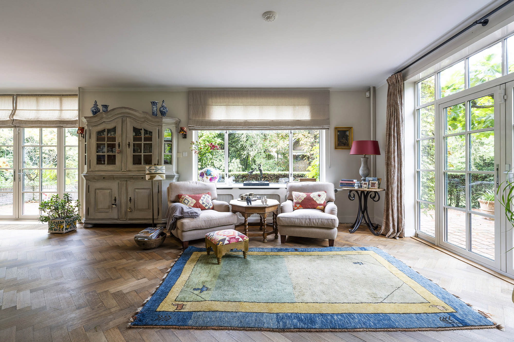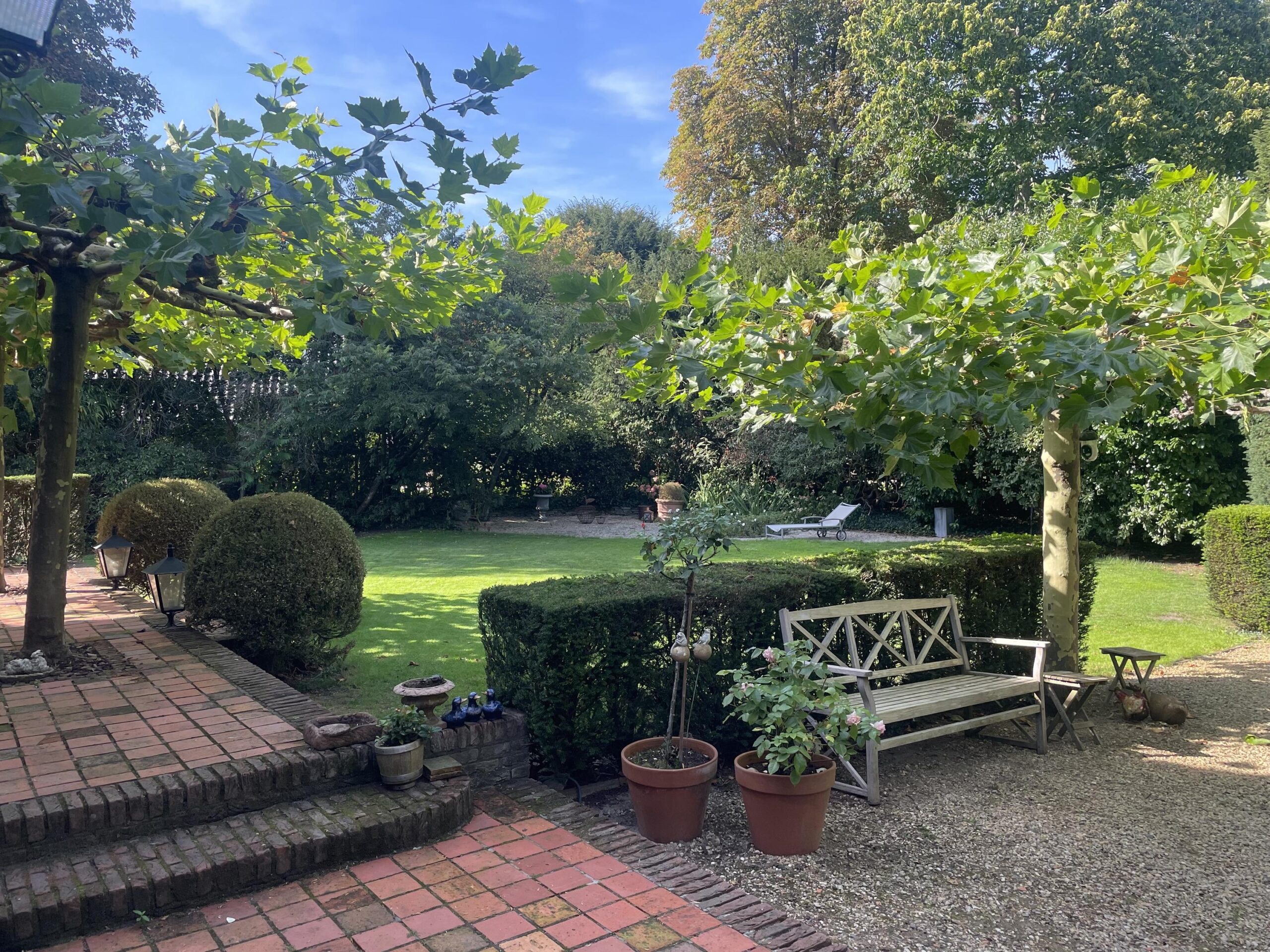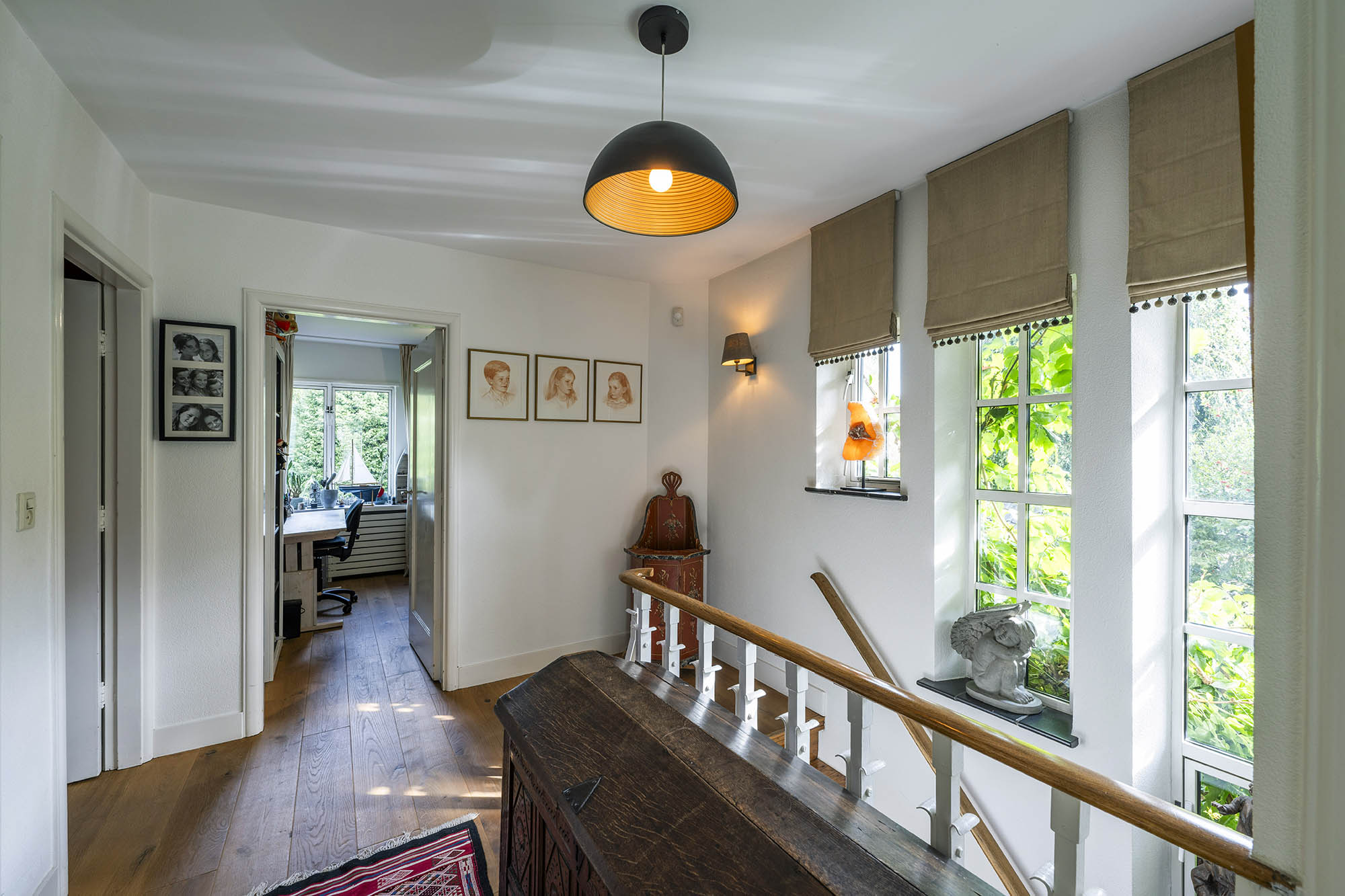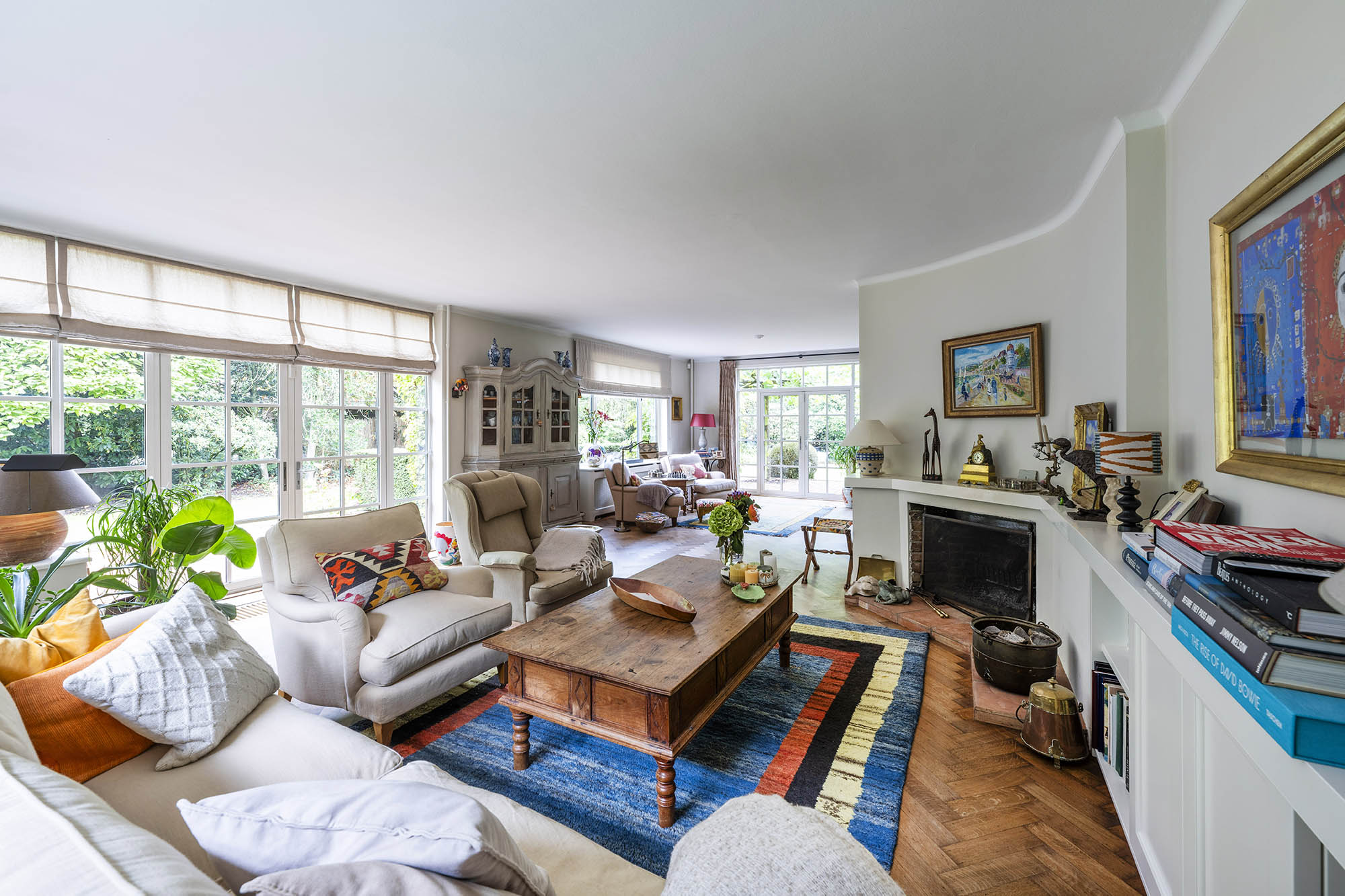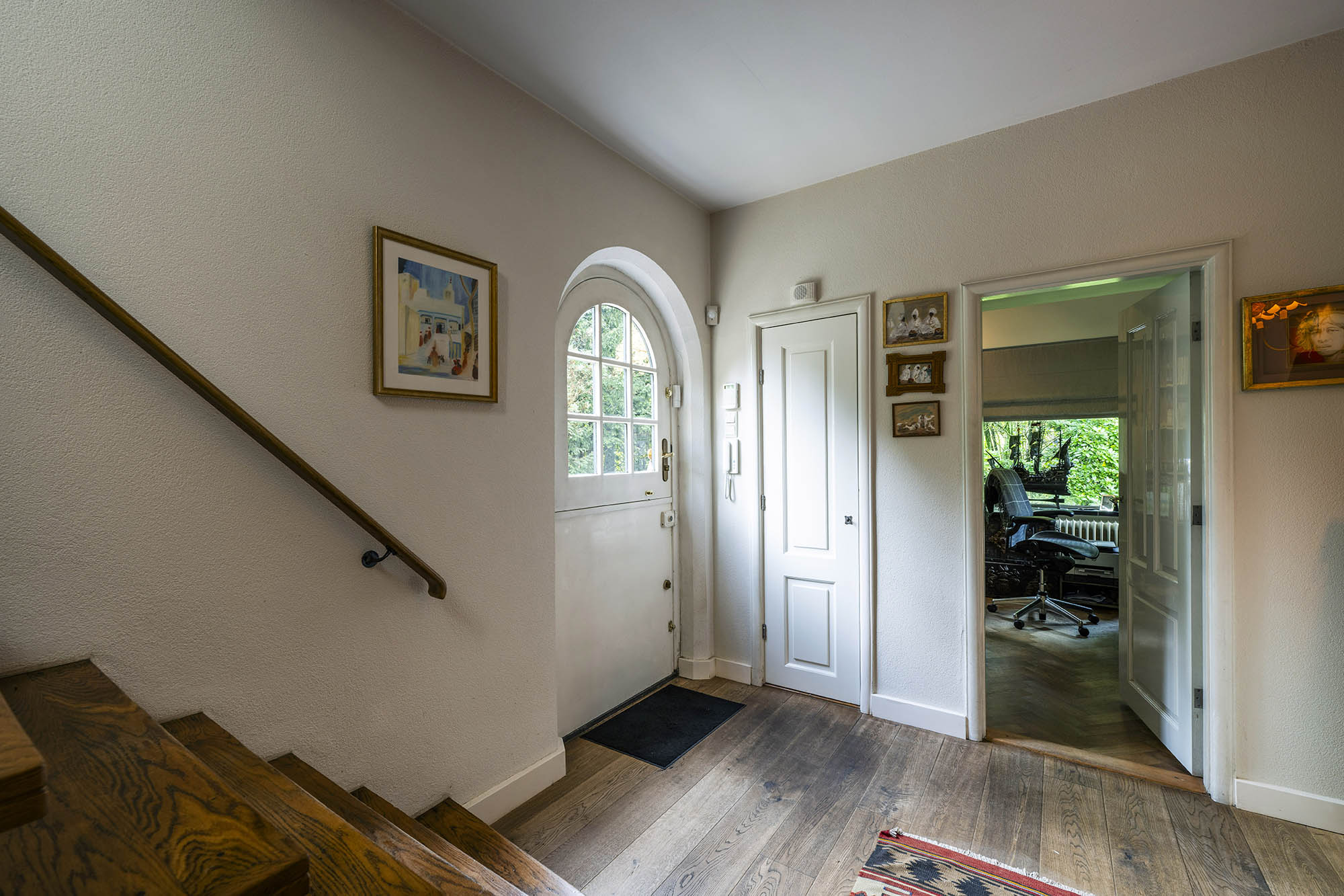 Via de entree komt u in de ruime hal met trapopgang, garderobe en gastentoilet. Vanuit hier heeft u toegang tot de verschillende leefruimtes. De royale woonkamer met een hoogte van 2,74 meter is licht en sfeervol en biedt een prachtig uitzicht op de tuin. De kamer is voorzien van een prachtige houten visgraten vloer en heeft met openslaande deuren direct toegang geeft tot het zonnige terras – ideaal voor lange zomeravonden. Aansluitend bevindt…