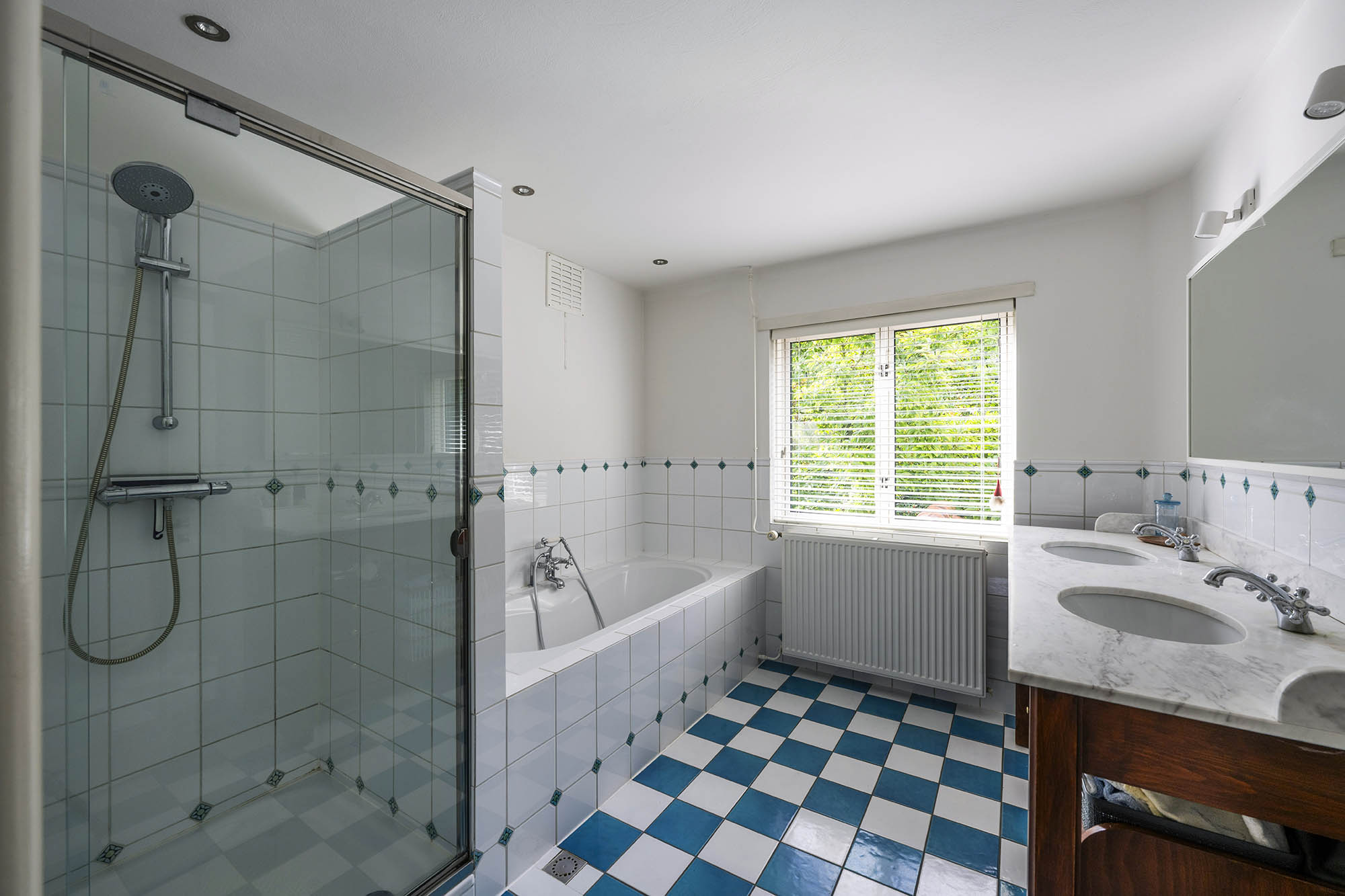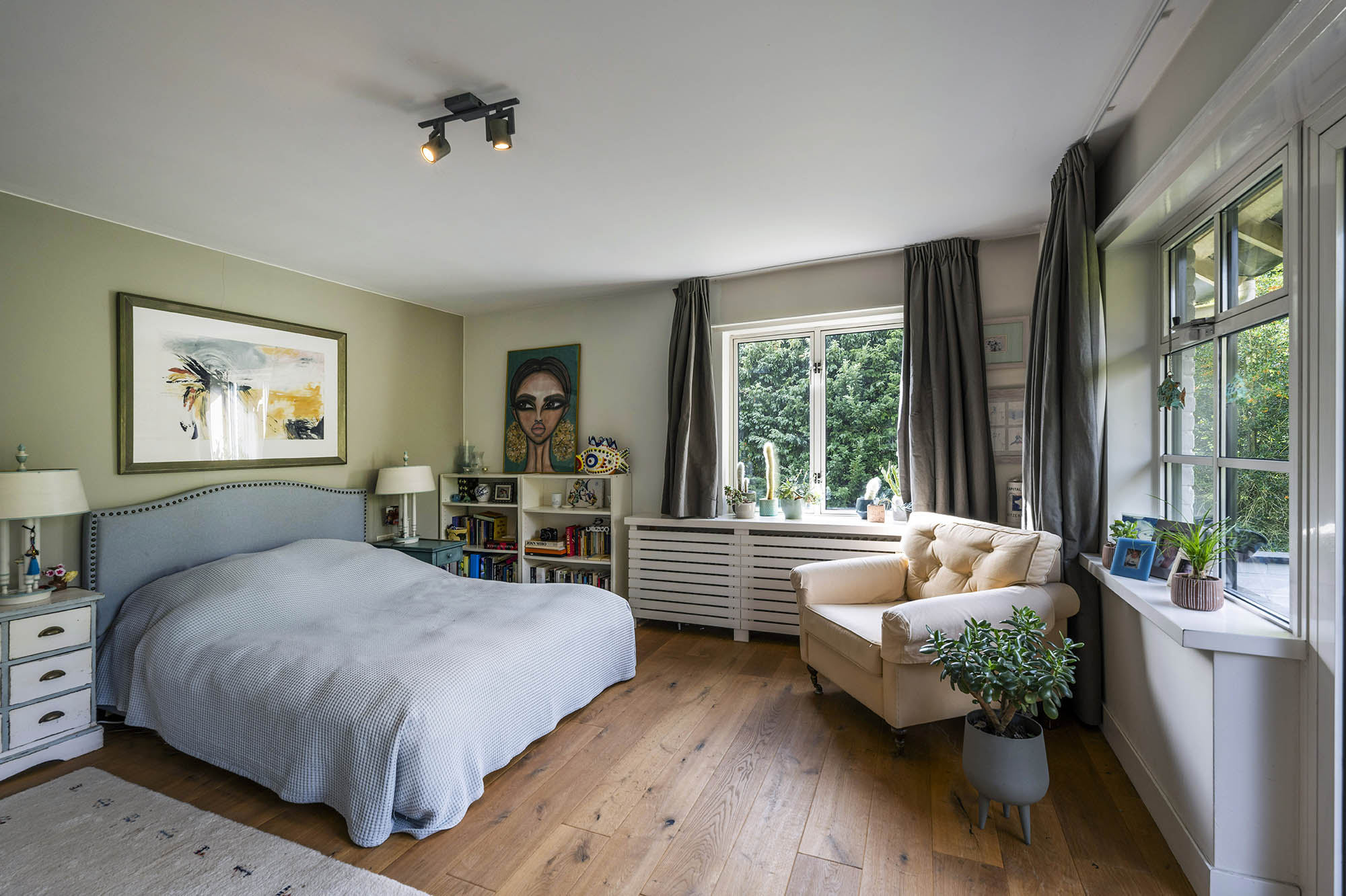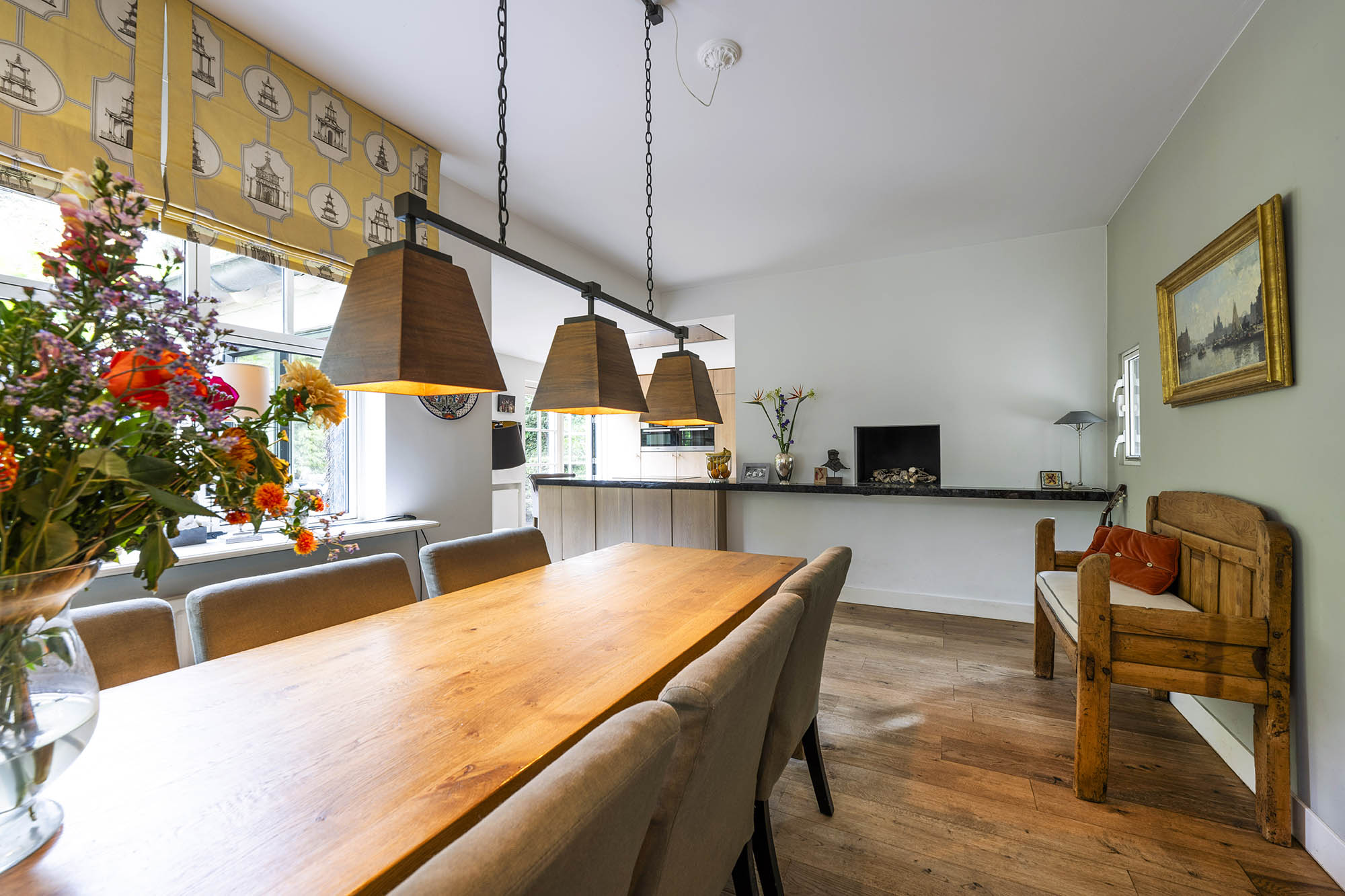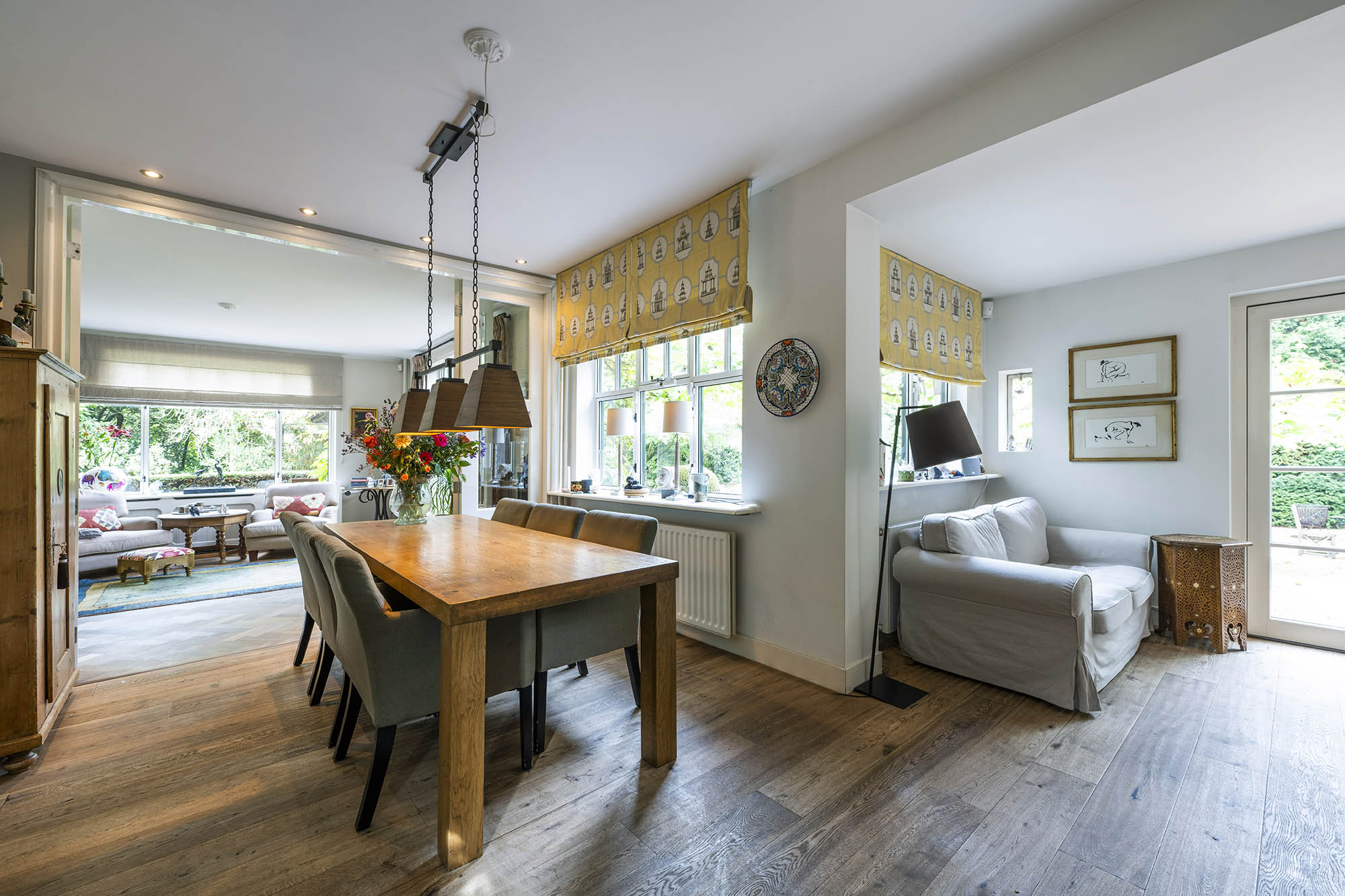Via de entree komt u in de ruime hal met trapopgang, garderobe en gastentoilet. Vanuit hier heeft u toegang tot de verschillende leefruimtes. De royale woonkamer met een hoogte van 2,74 meter is licht en sfeervol en biedt een prachtig uitzicht op de tuin. De kamer is voorzien van een prachtige houten visgraten vloer en heeft met openslaande deuren direct toegang geeft tot het zonnige terras – ideaal voor lange zomeravonden. Aansluitend bevindt…